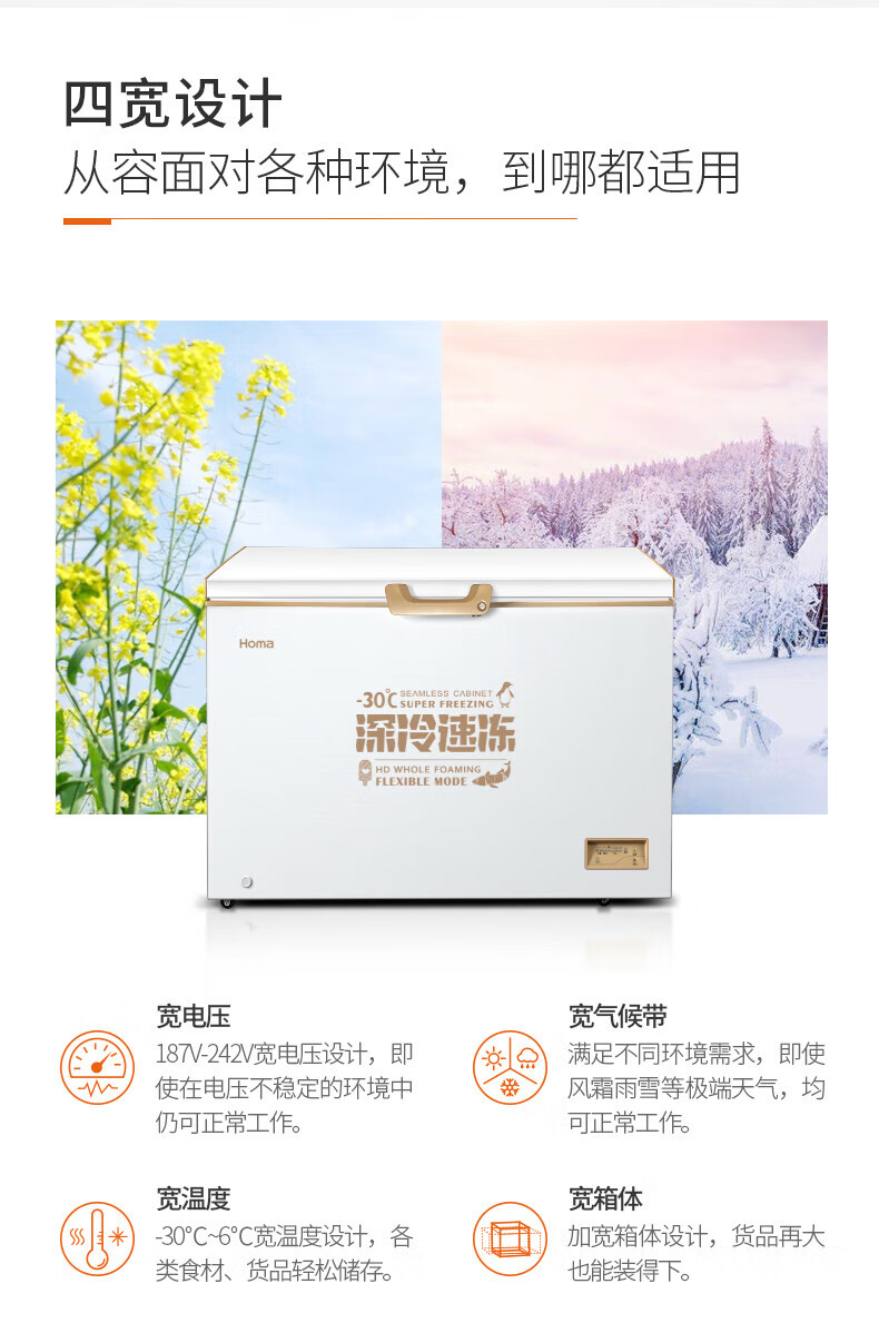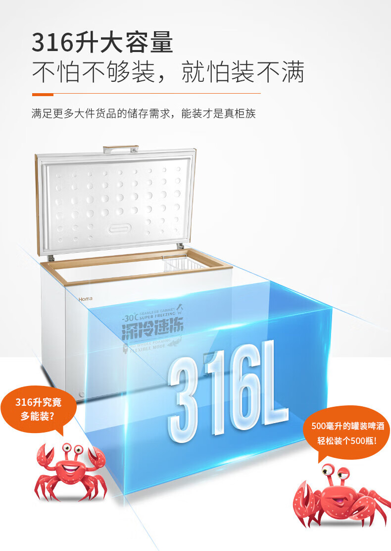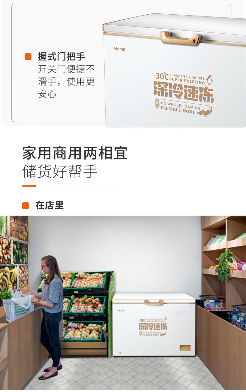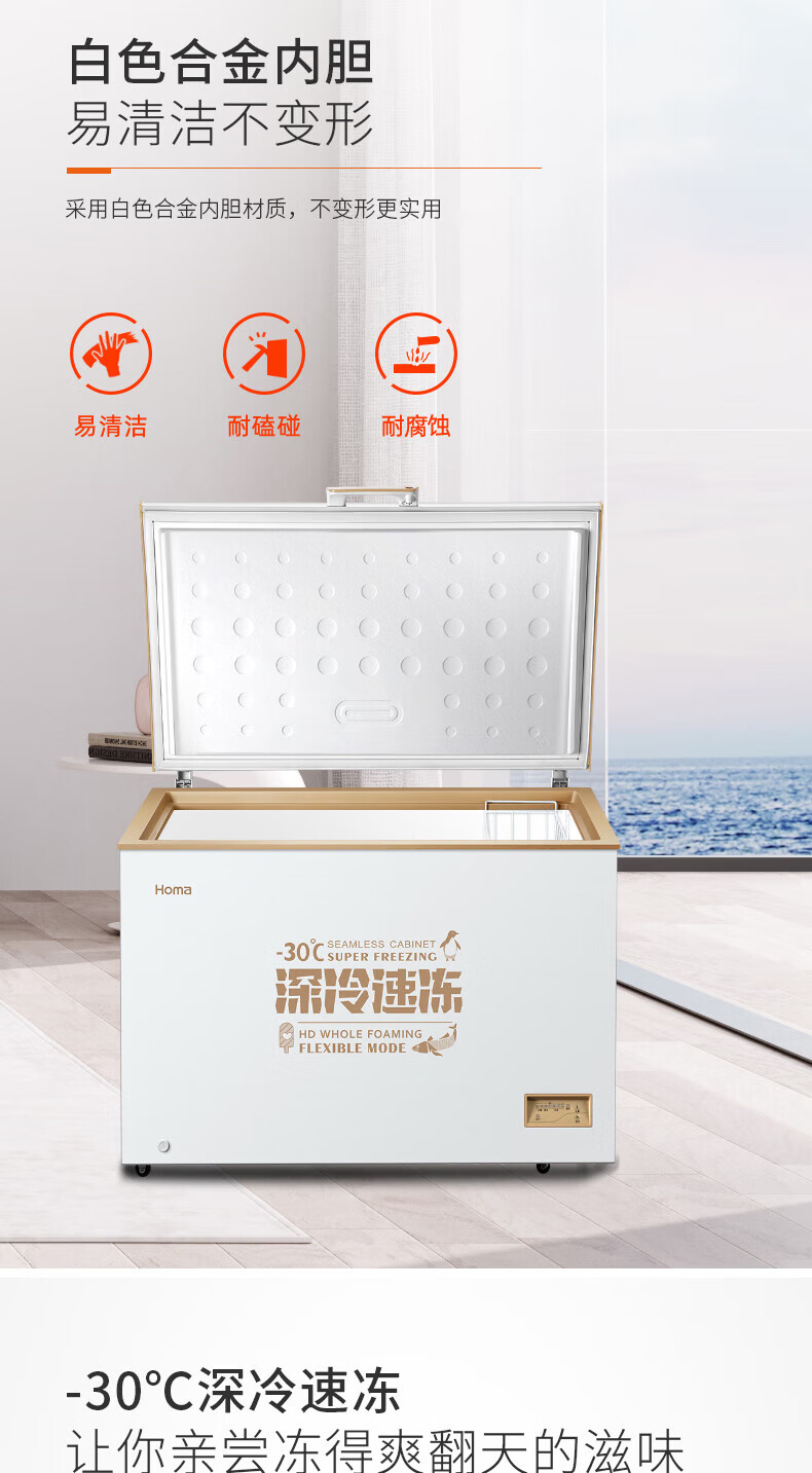 Homa 316L ultra-low temperature -30 degrees deep cooling quick freezing horizontal top opening freezer commercial household ultra-energy-saving power-saving refrigerator deep cold brown 316L ultra-low temperature-30 deep cooling quick freezing 1120MM*755MM*850MM