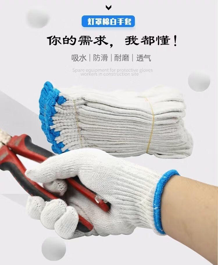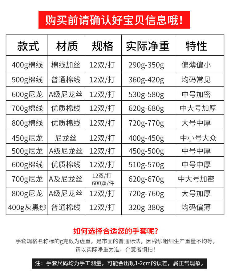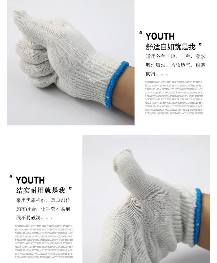 100 pairs of gloves, labor protection and wear-resistant wholesale, disposable protective men's and women's construction site thickened gloves, multiple specifications, 400G ordinary cotton thread, 24 pairs, 48 pieces