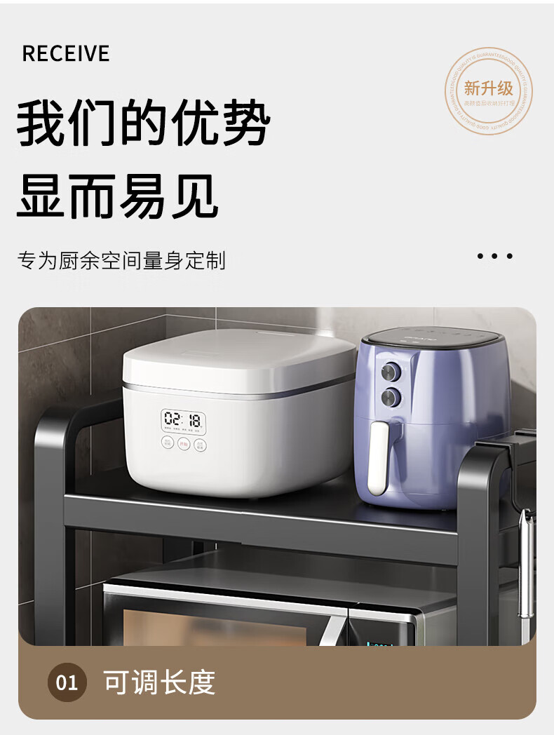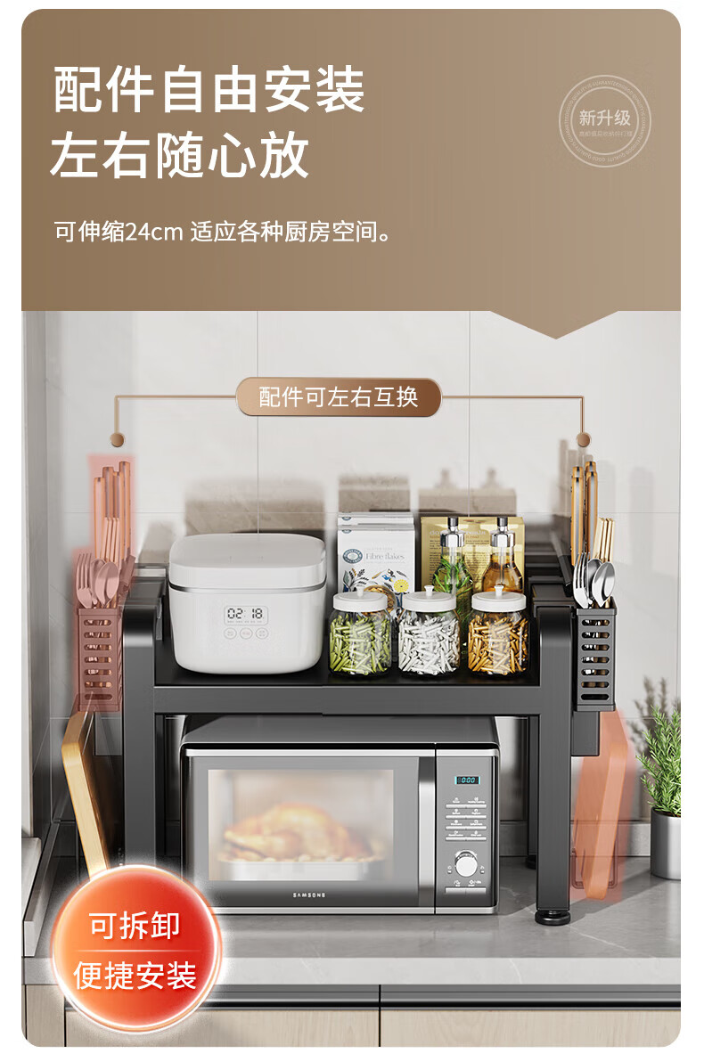 Nifeng kitchen storage rack telescopic microwave oven rice cooker storage rack household multi-functional countertop appliance storage rack simple C-shaped fixed single rack