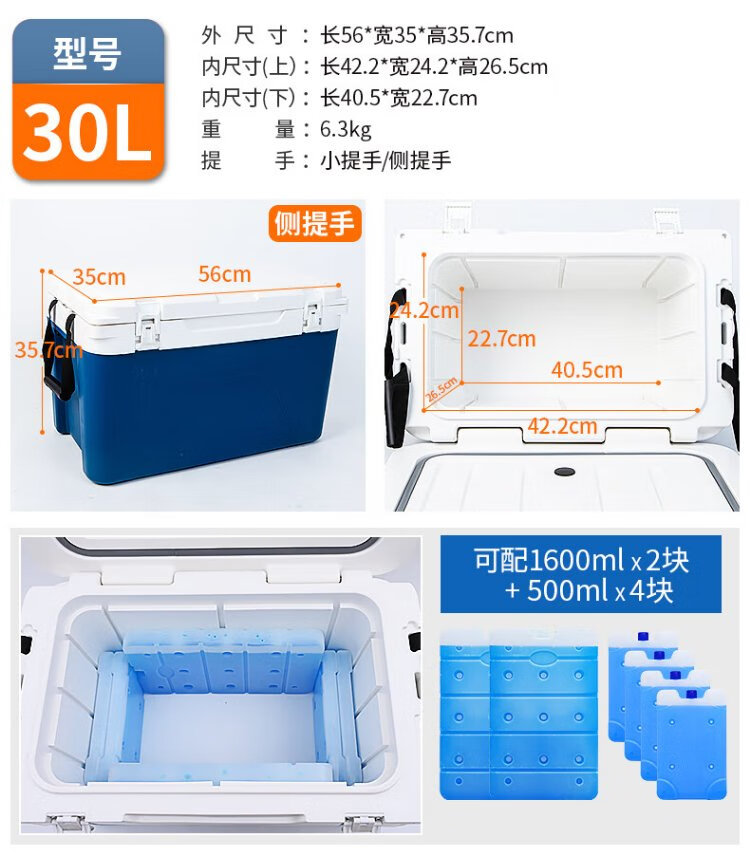 Jiruosen insulated box refrigerated outdoor camping fresh-keeping vehicle-mounted ice bucket commercial stall large-capacity medicine medical cold chain transportation 17L comes with convenient carrying strap + temperature display camping standard