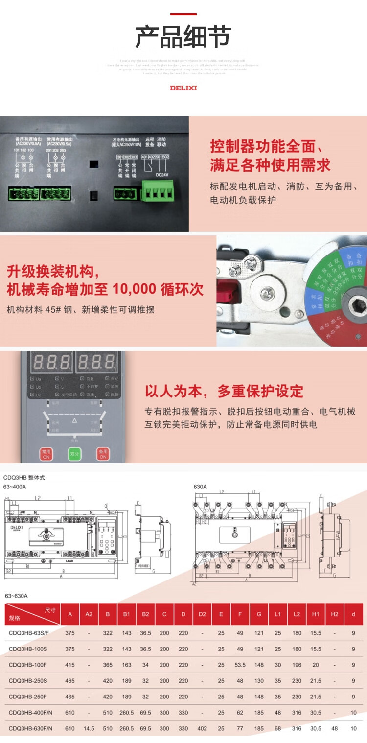 Delixi dual power automatic transfer switch CDQ3HB-250S/4P 160A 200A 250A 160A 4P 160A CDQ3HB-250S