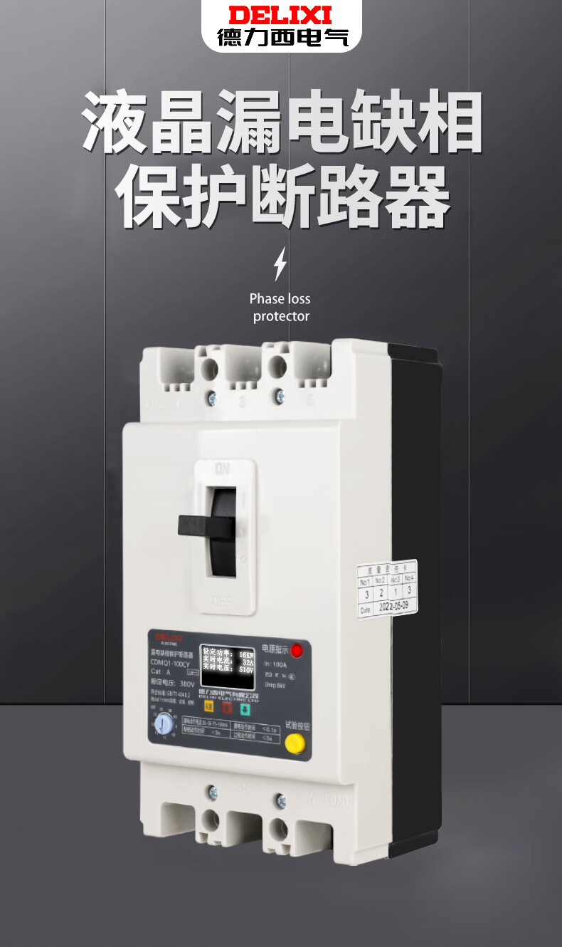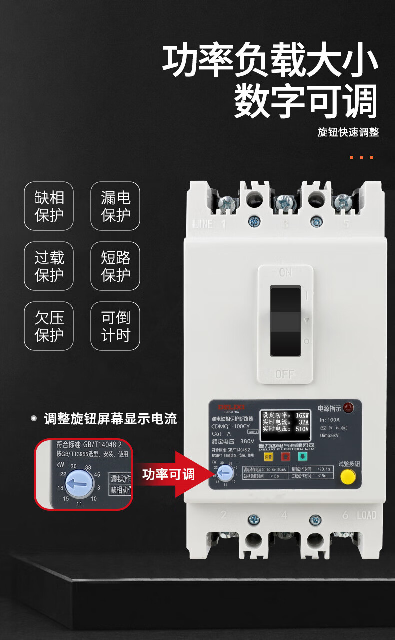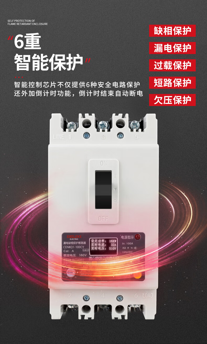 LCD three-phase phase loss protector 380v water pump overload switch 40A motor fan leakage circuit breaker 40A 3P