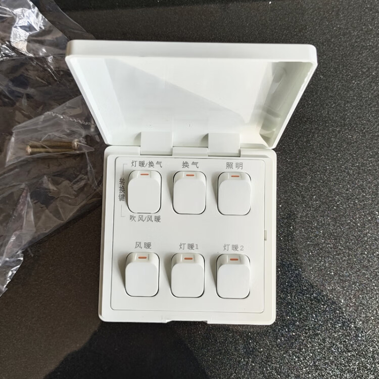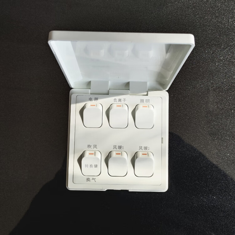 Bath heater six-way switch is suitable for all brands of air heating lamps and bathroom heaters. Universal six-way switch 520 six-way flip cover