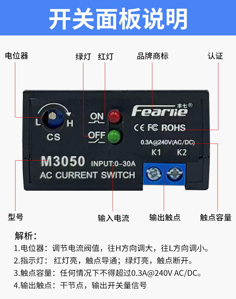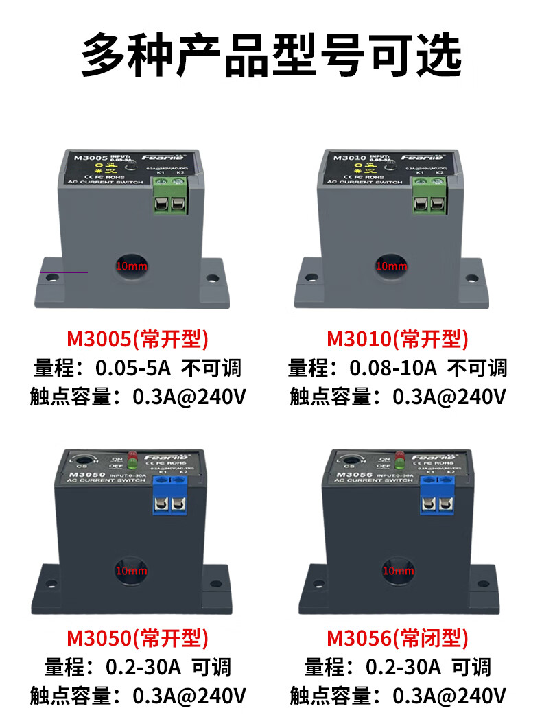 Current sensing switch relay alarm output sensor detection control current transformer switch M3005 normally open (0.05-5A non-adjustable)