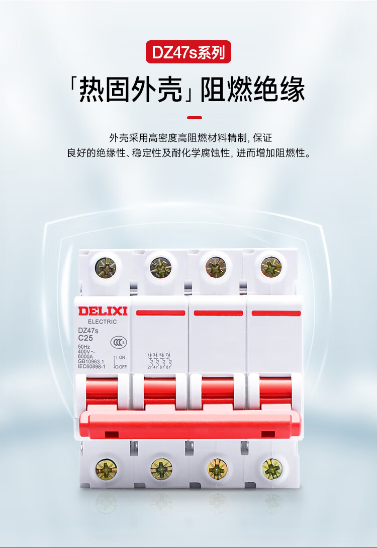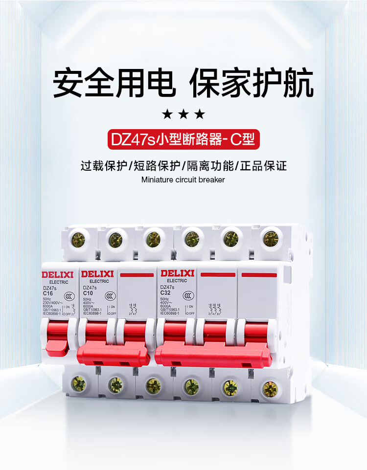 Delixi Electric DZ47s air switch DPN miniature circuit breaker 1P+N Type C 10A double in and double out overload 1P+N 25A