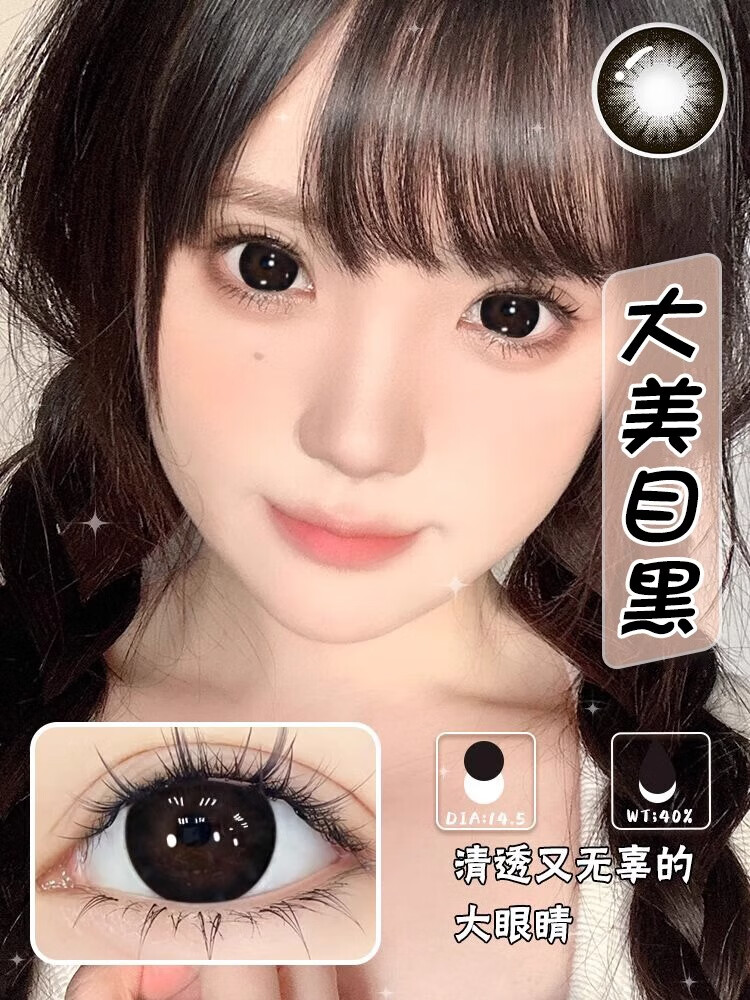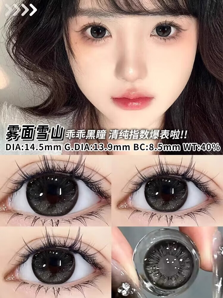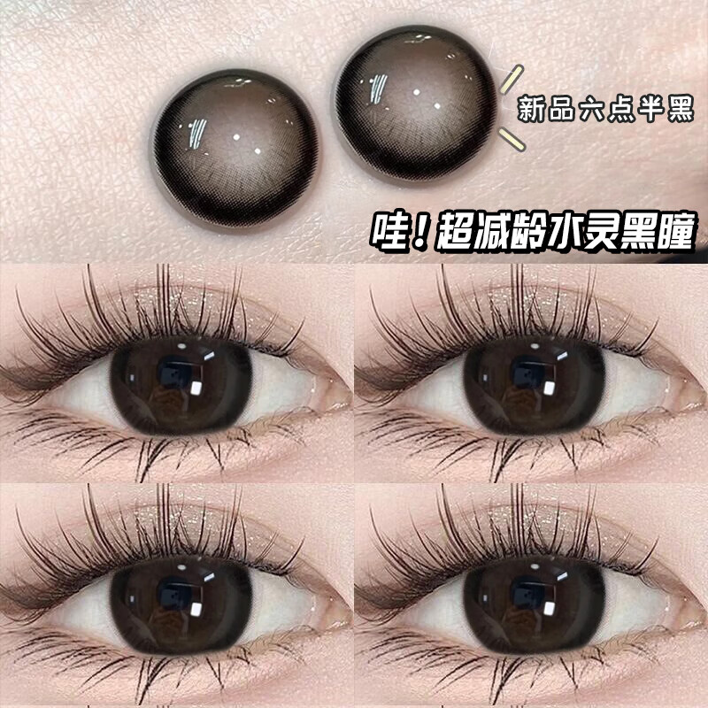 Hanyaeye Big Beauty Eye Black Color Contact Lens Annual Disposal 2024 New Black Size Diameter Natural Brown Contact Lens Color Matte Snow Mountain 14.5 0 Degree