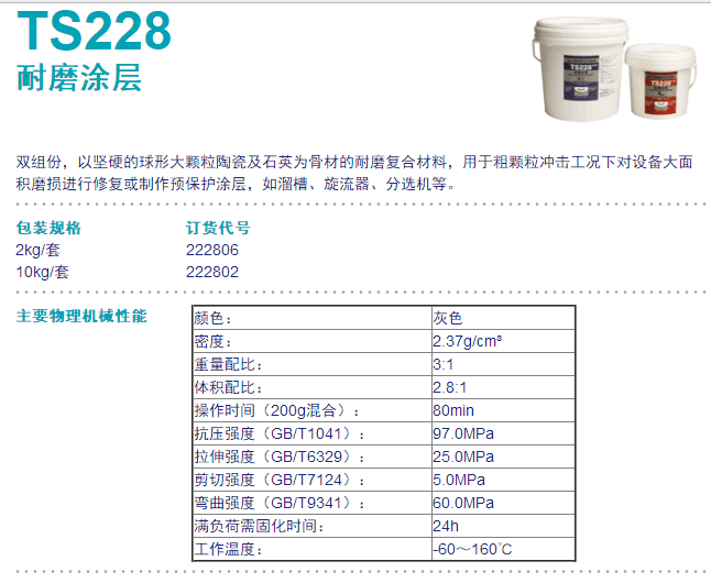 Kesaixin TS226 TS228 wear-resistant coating pipe protective agent silicon carbide repair agent ceramic particles gray 226/2kg