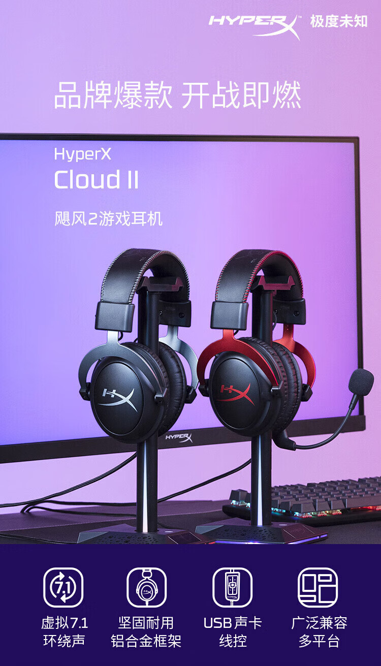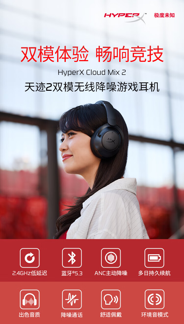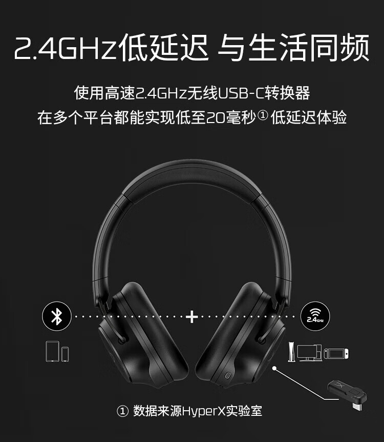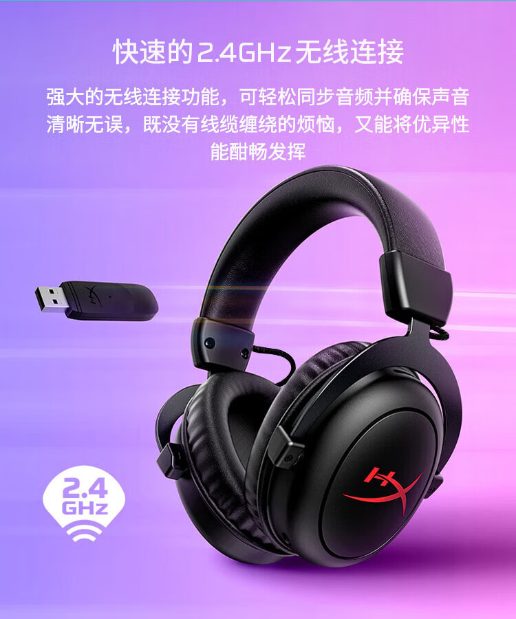 Extremely unknown (HYPERX) Hurricane 2/Hurricane 3 head-mounted wired gaming headset, original Kingston FPS chicken CSGO computer mobile phone Switch, PS5 e-sports headset passive noise reduction headset Hurricane 2 smart black丨2.4Ghz wireless USB connection