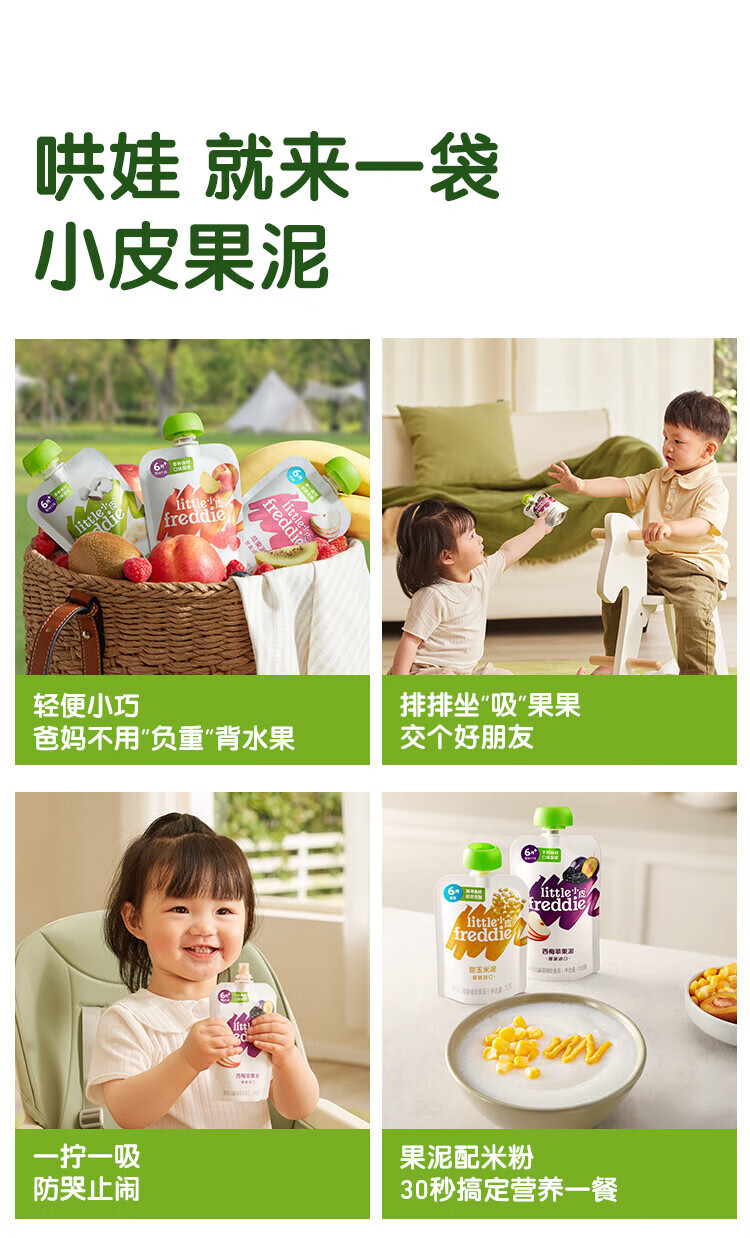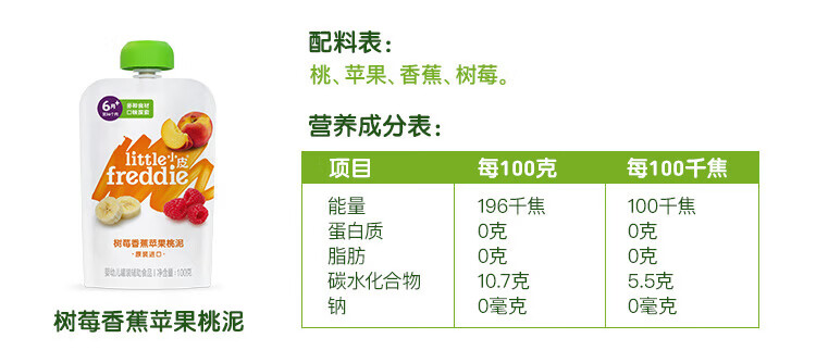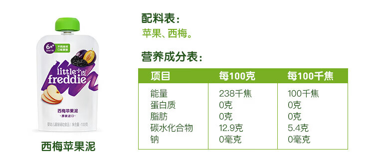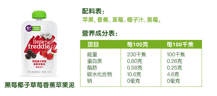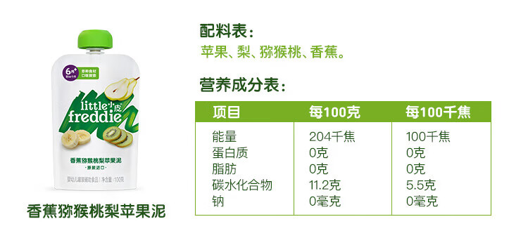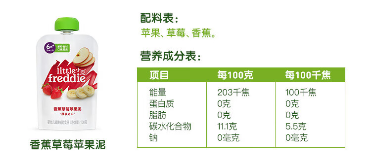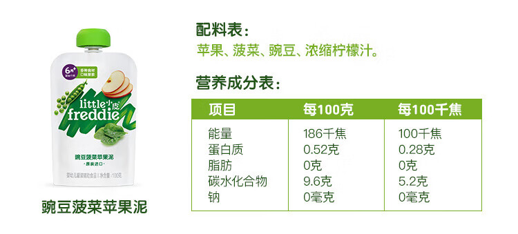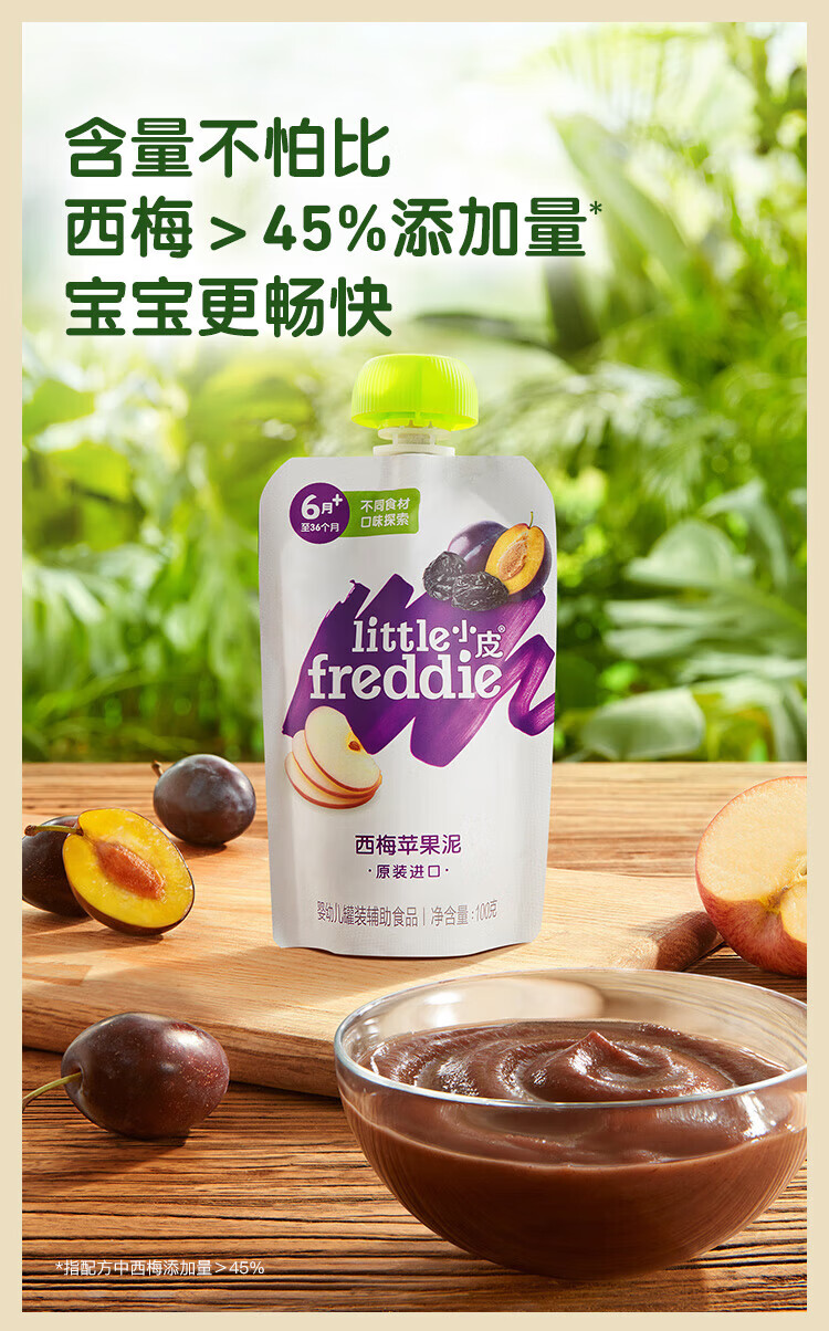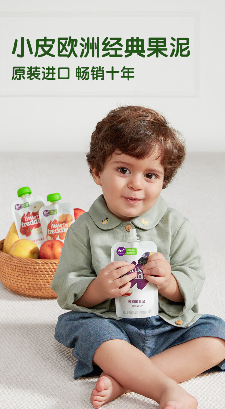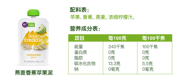 Little Freddie 0 added fruit puree baby food supplement baby fruit puree prune puree banana apple multi-flavor fruit puree full of vitamin C colorful fruit puree 100g*10 bags