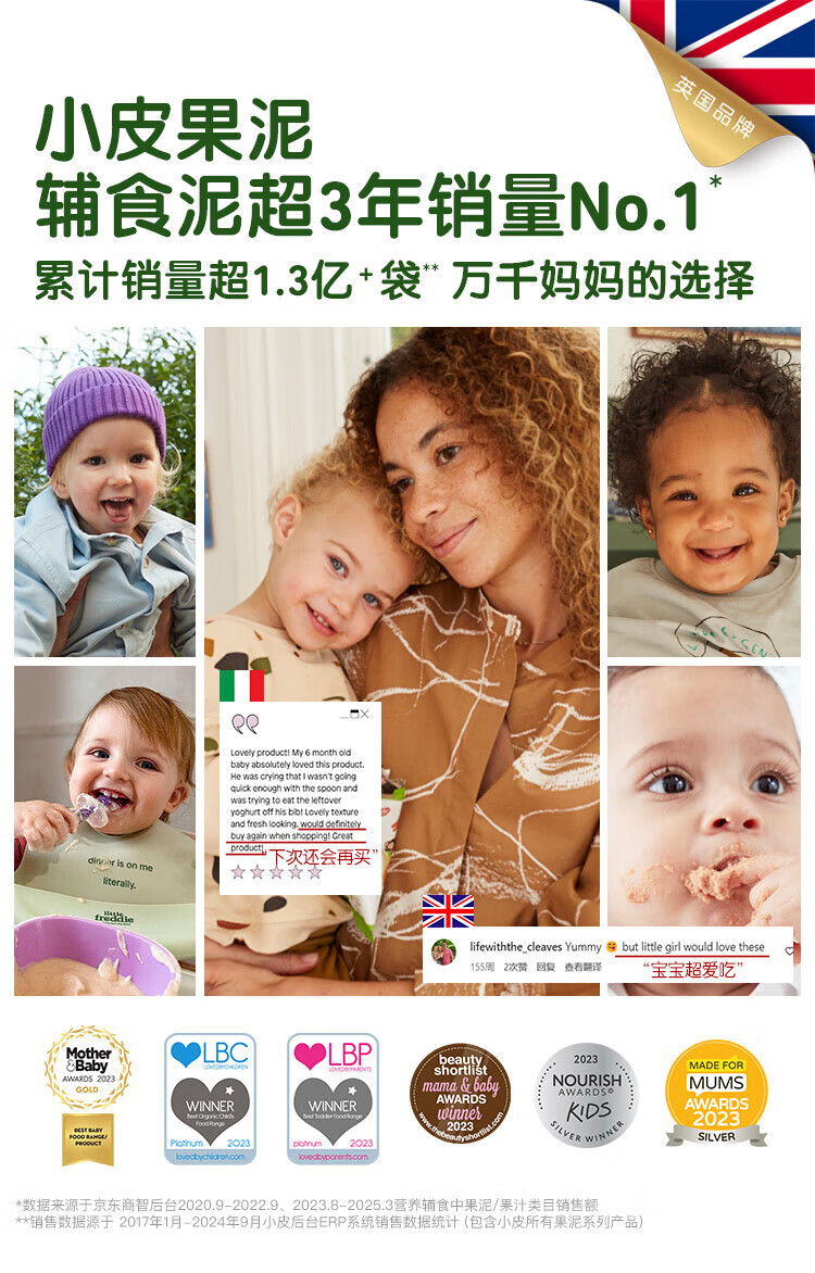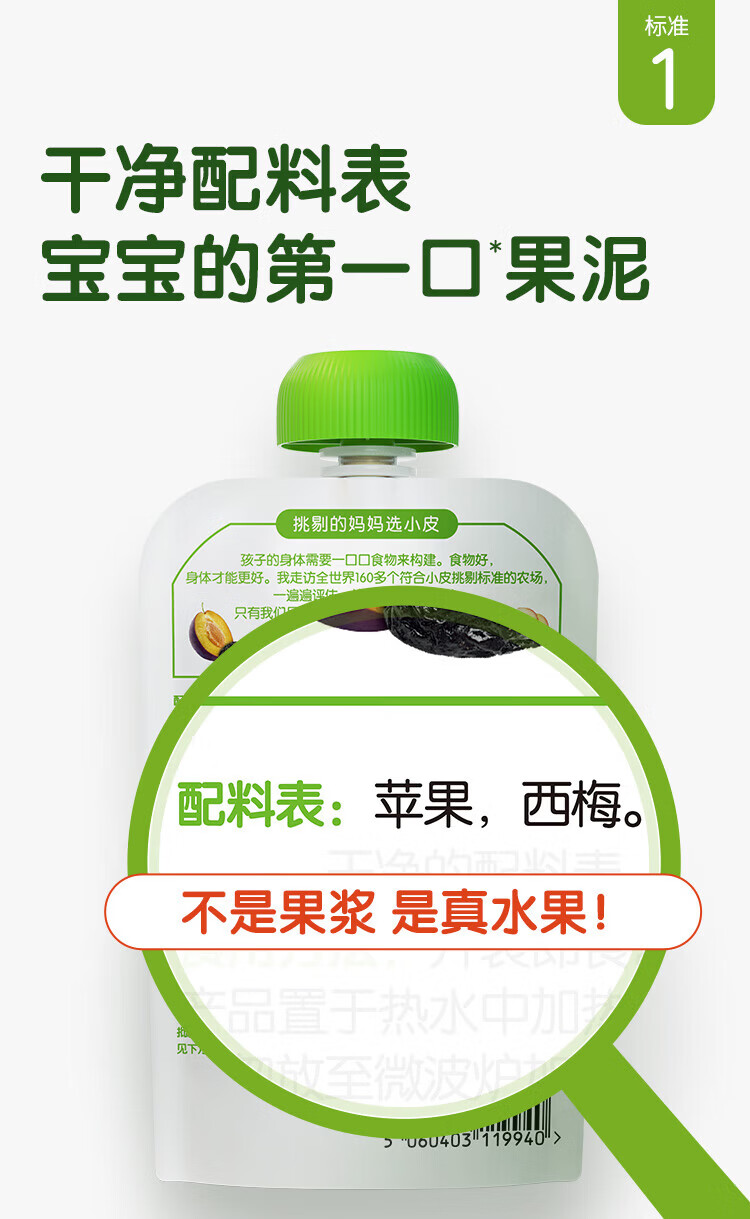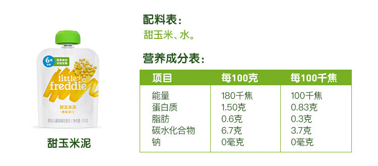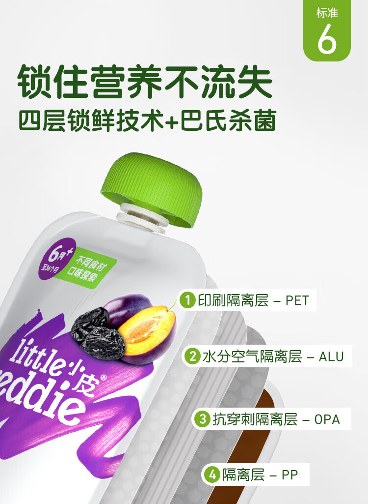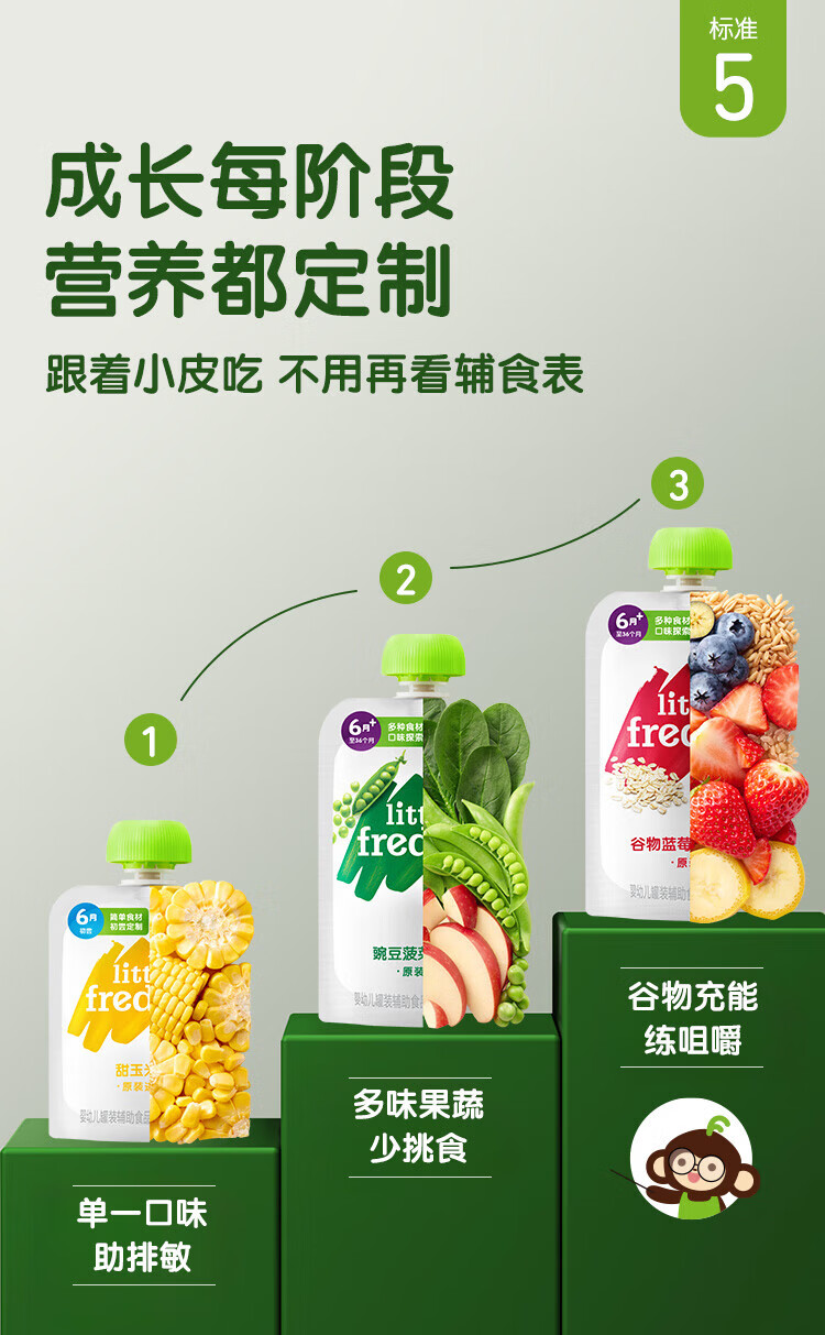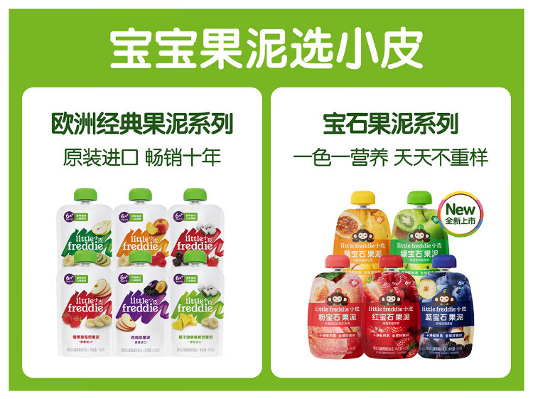 Little Freddie 0 added fruit puree baby food supplement baby fruit puree prune puree banana apple multi-flavor fruit puree full of vitamin C colorful fruit puree 100g*10 bags