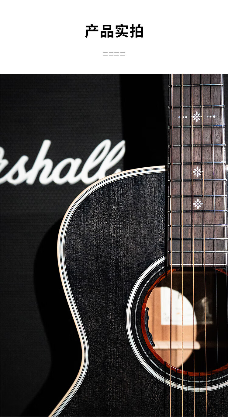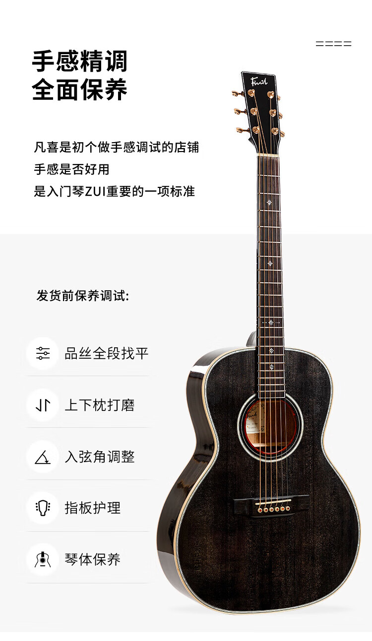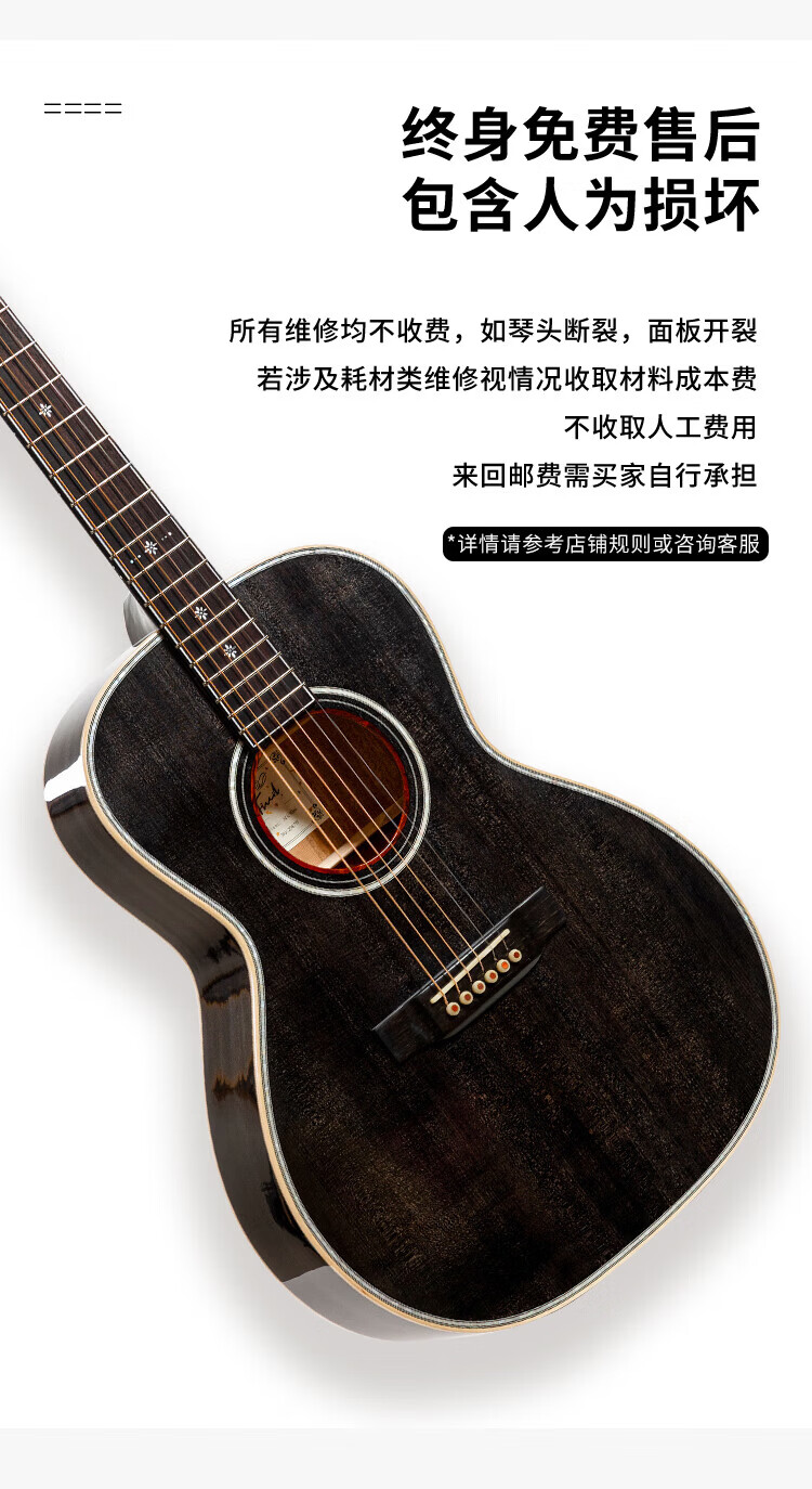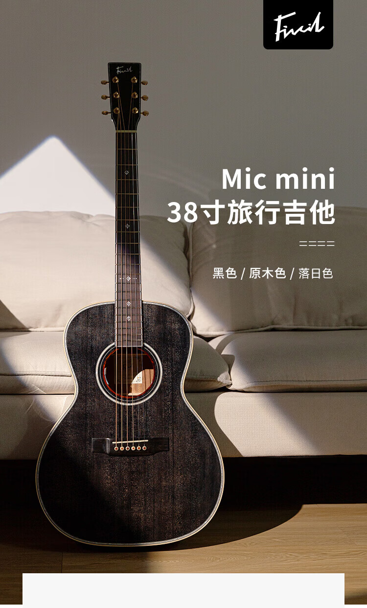 Fanxi singer's same style Uncle Wu's guitar Mic mini complete single beginner advanced performance folk acoustic guitar 38 inches gloss-black
