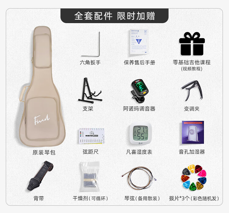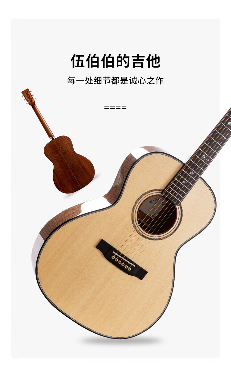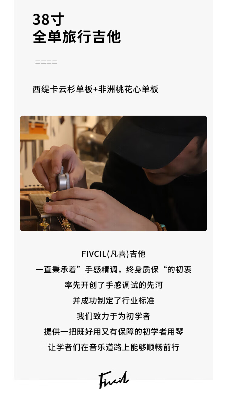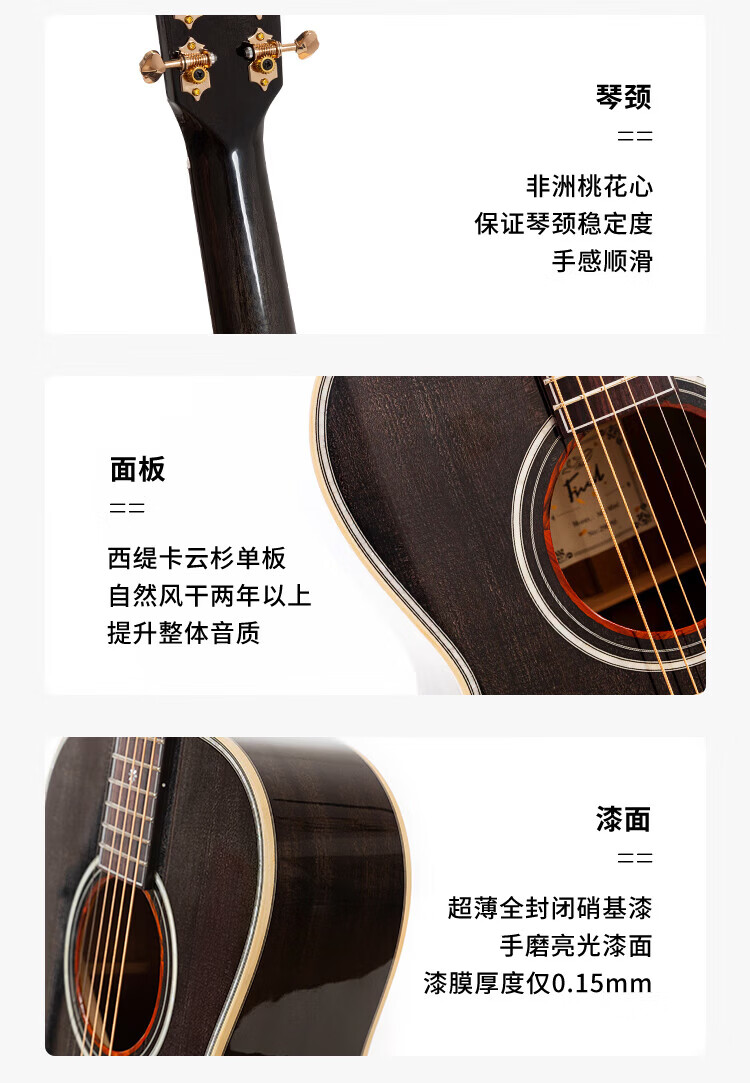 Fanxi singer's same style Uncle Wu's guitar Mic mini complete single beginner advanced performance folk acoustic guitar 38 inches gloss-black