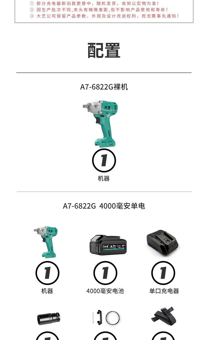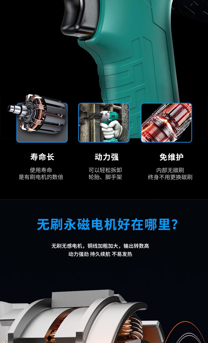 Dayi brushless electric wrench A7 series rechargeable impact wrench industrial grade lithium battery auto repair rack worker A7-E450 bare metal without battery charger
