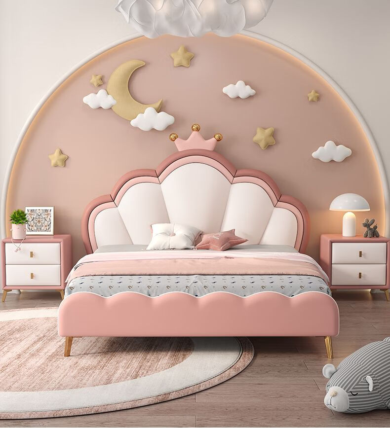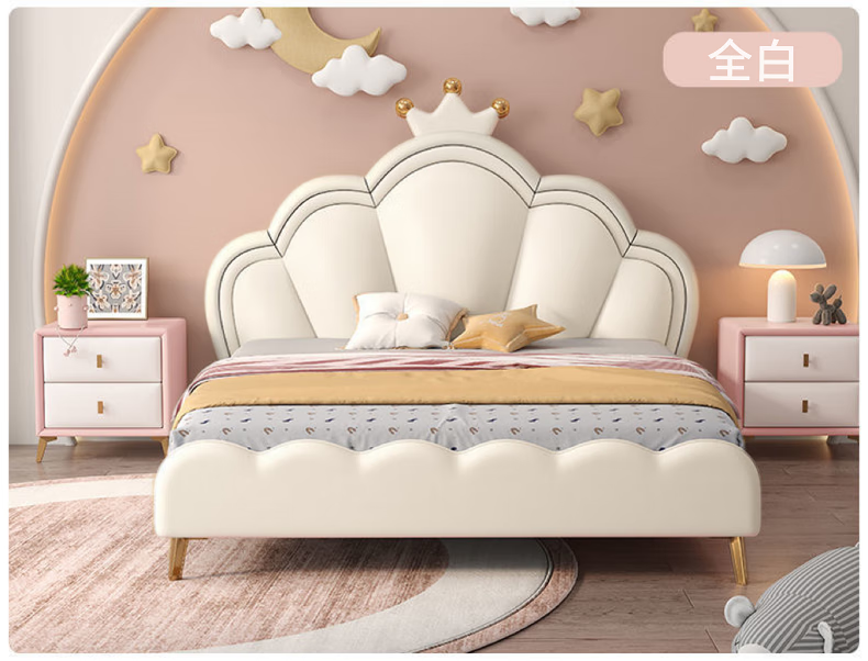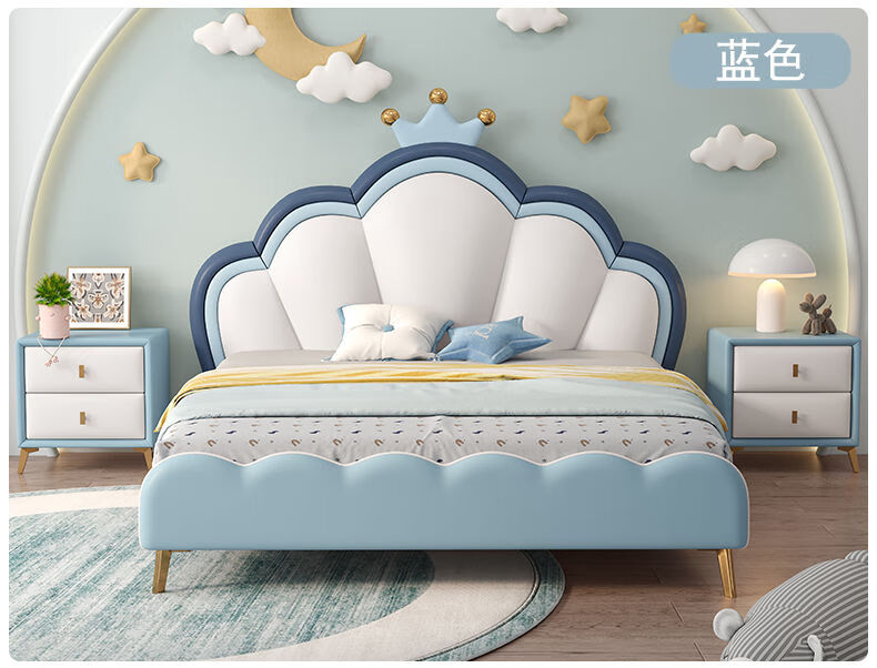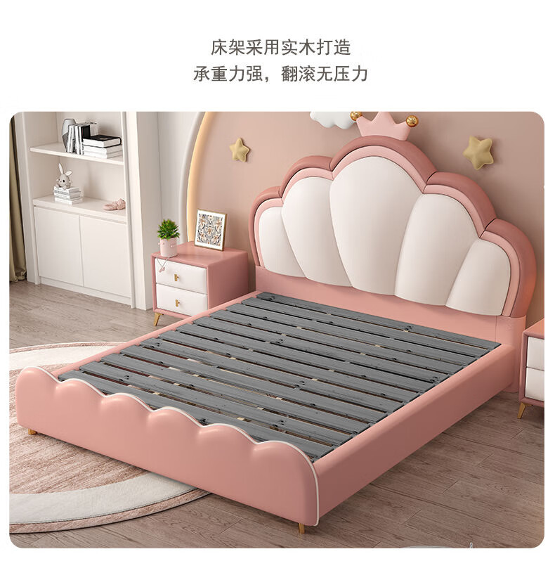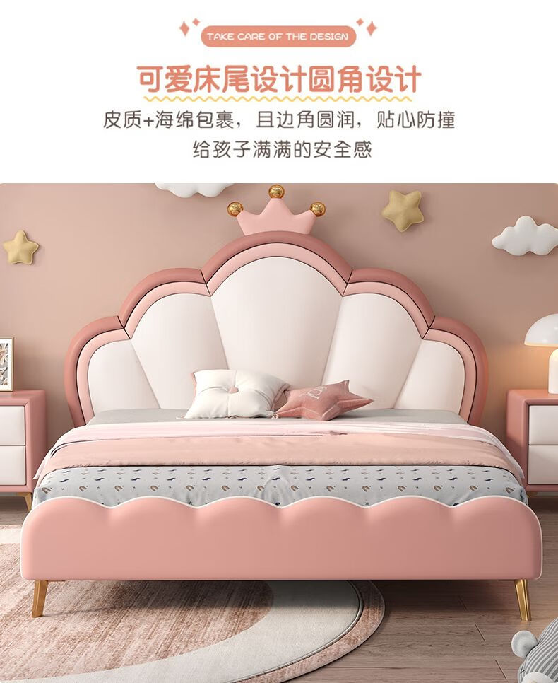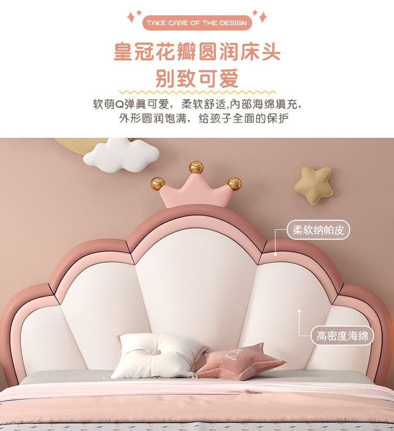 Children's bed modern simple princess bed girl's bedroom light luxury leather single bed ins internet celebrity girl bed 1.5m crown bed color note delivery to home 1.5m*2.0m frame structure