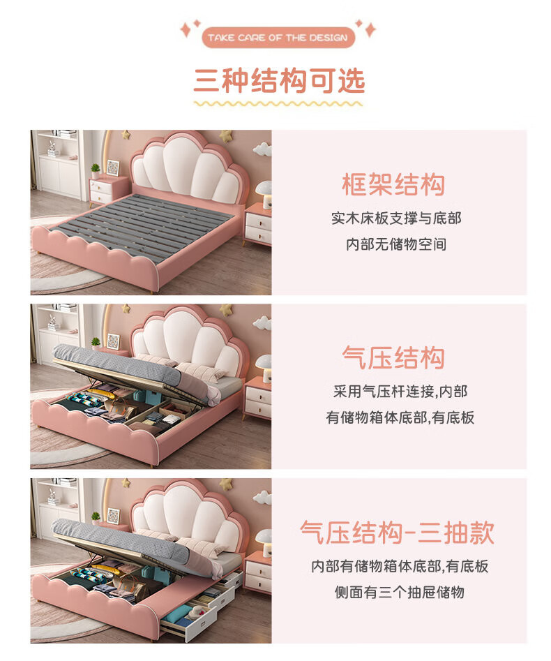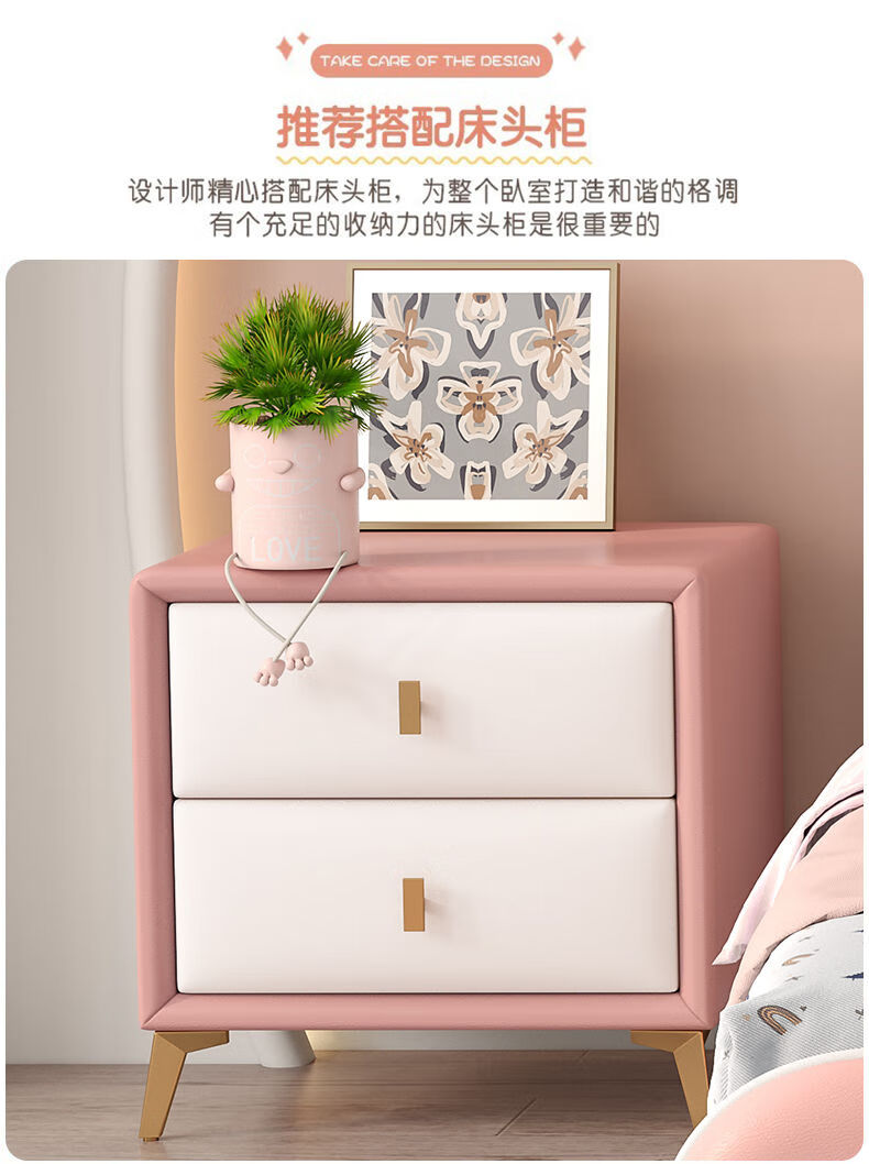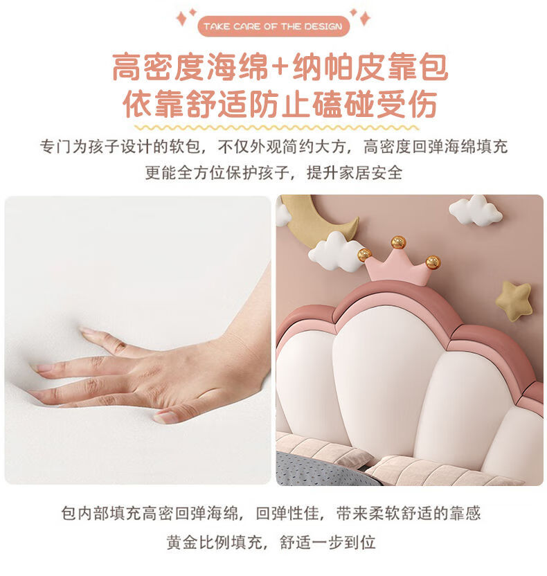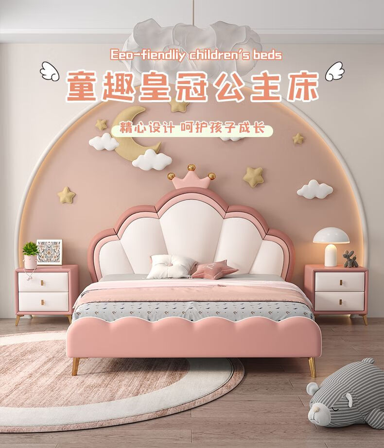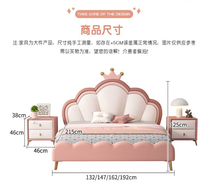 Children's bed modern simple princess bed girl's bedroom light luxury leather single bed ins internet celebrity girl bed 1.5m crown bed color note delivery to home 1.5m*2.0m frame structure
