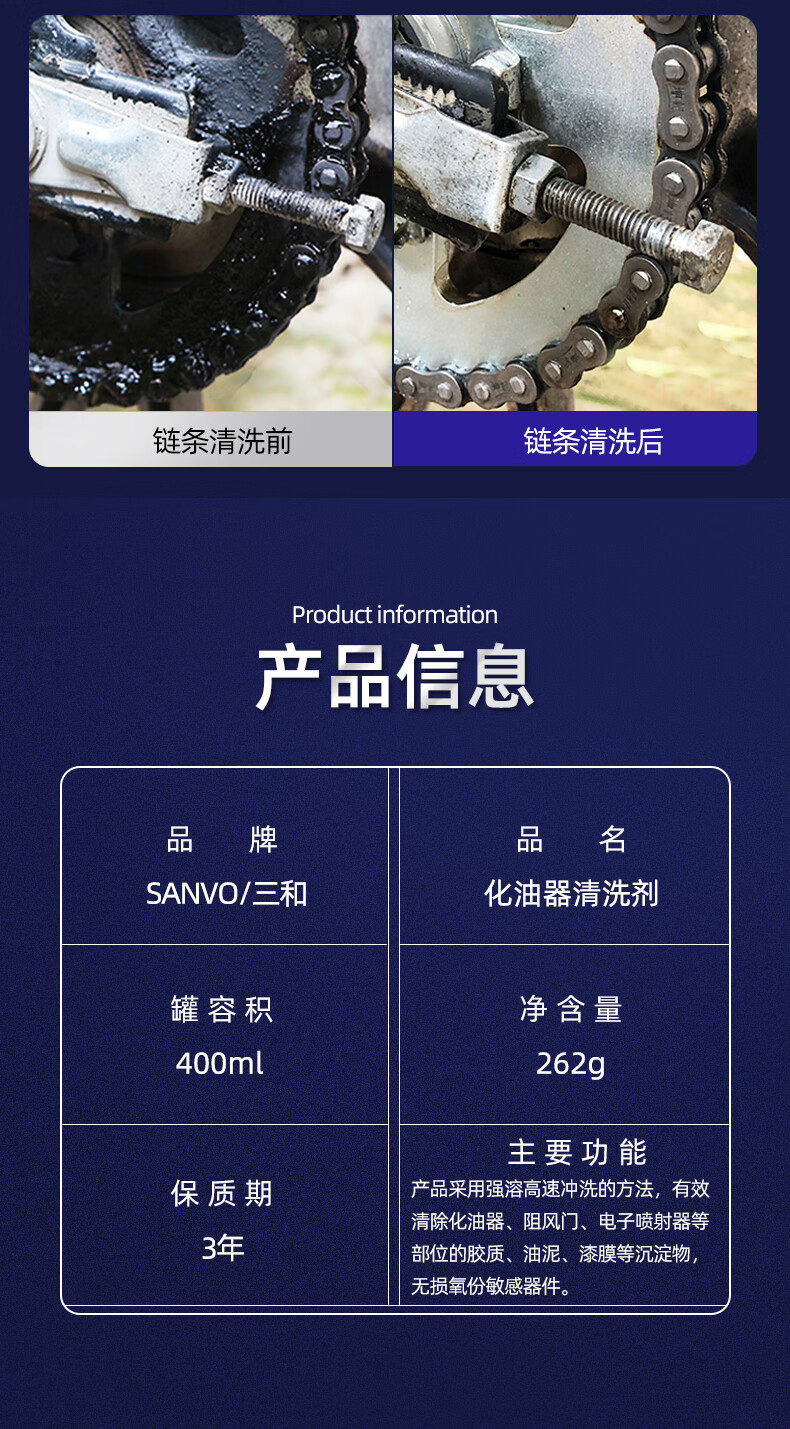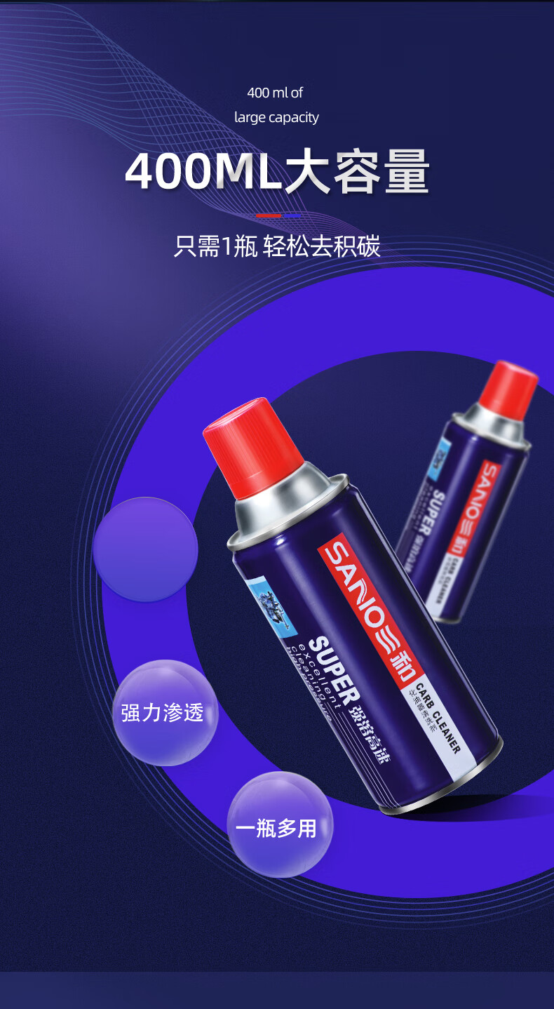 Sanhe carburetor cleaner, car carbon deposited oil line fuel injection nozzle carburetor, automotive parts cleaner, carburetor cleaner, 1 bottle