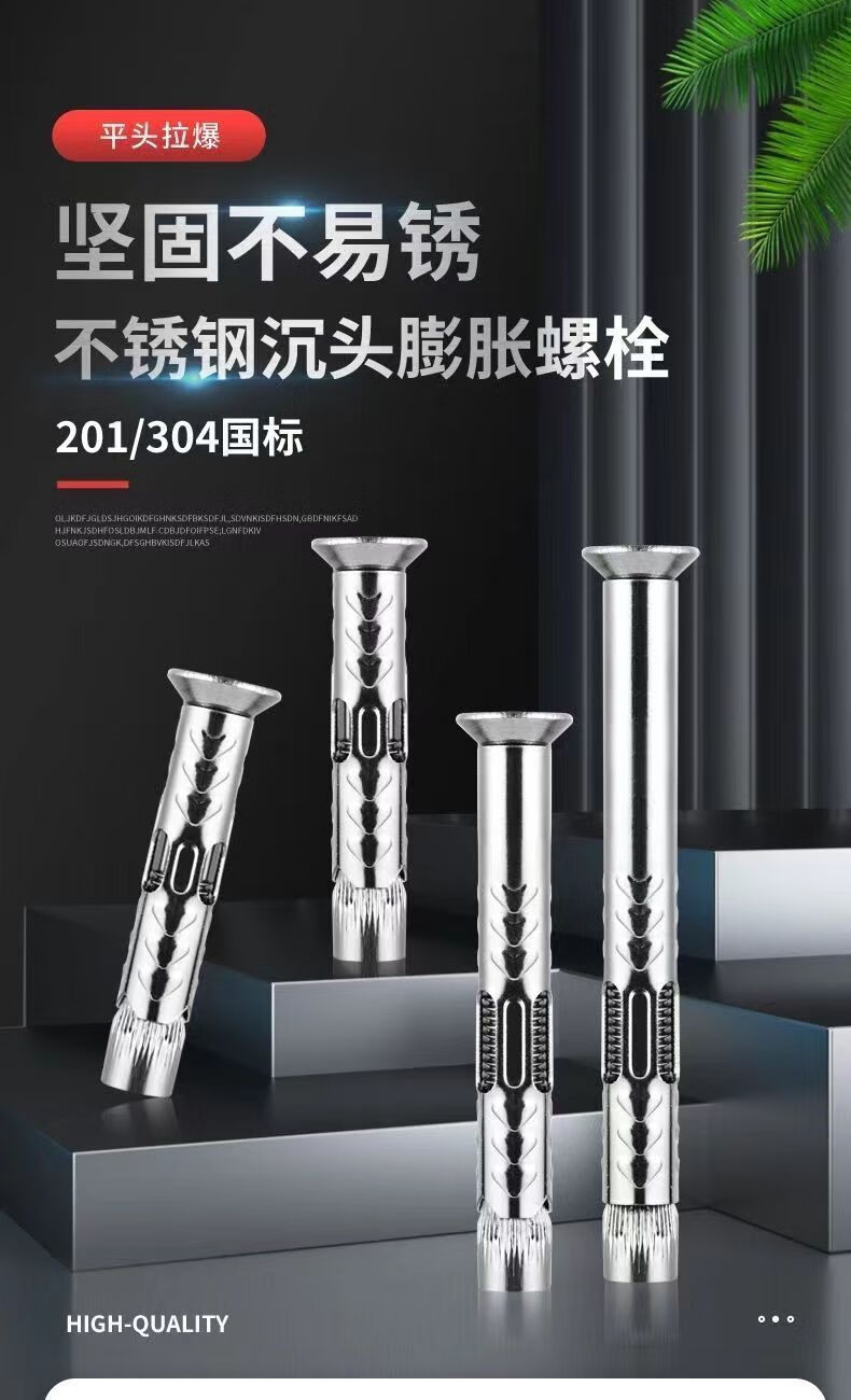 Vinoa 201 stainless steel cross countersunk head internal expansion screw 304 national standard flat head internal pull-out door and window expansion bolt M6M8 50 capsules M6x50mm actual length 47mm