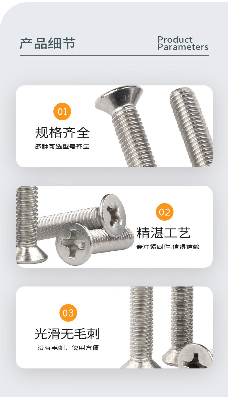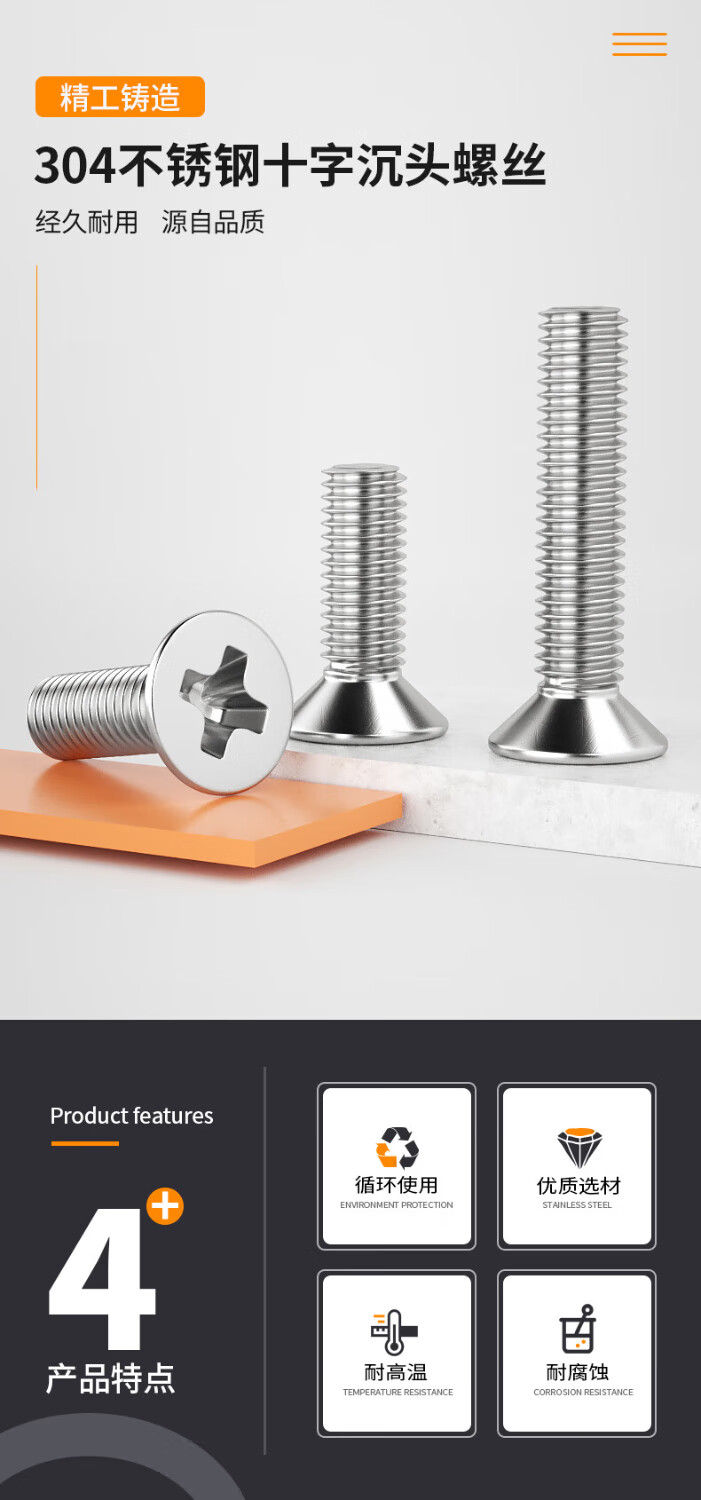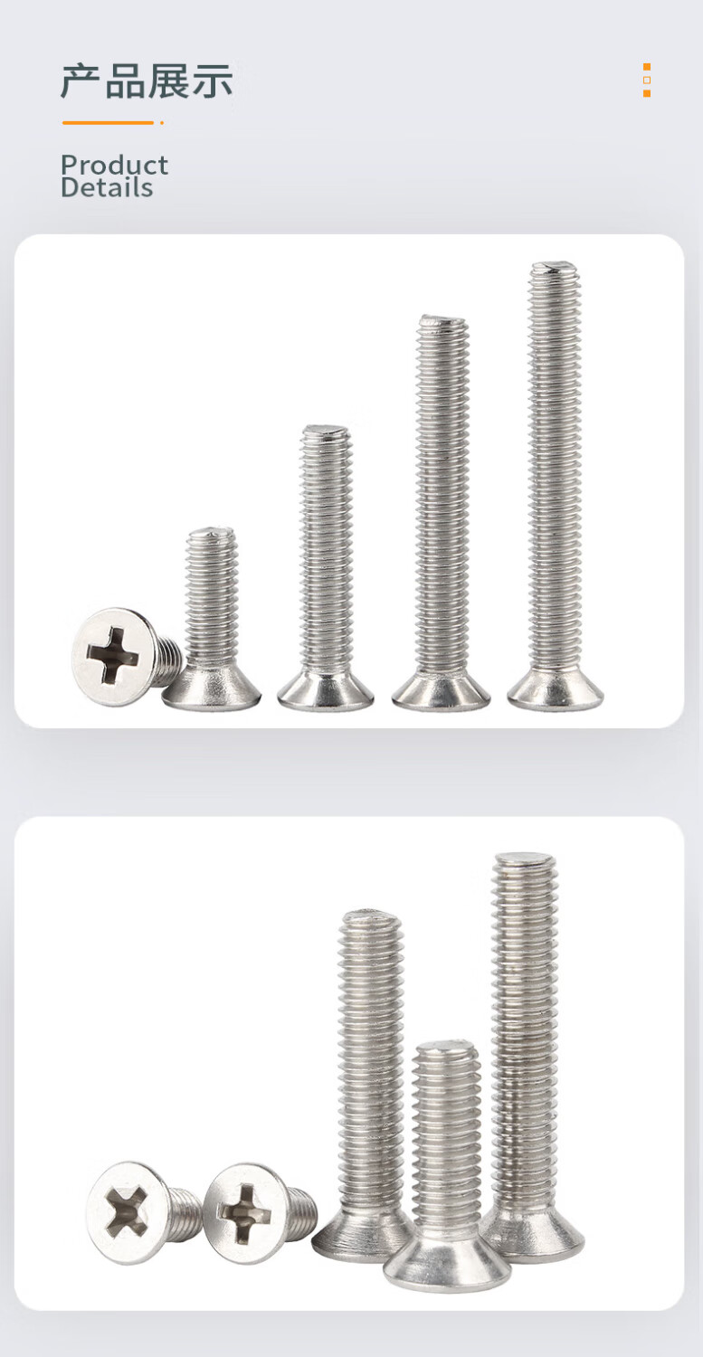 Creaby304 stainless steel cross flat head screw cross recessed countersunk head bolt national standard machine wire machine tooth screw machine screw M4x10 50 pieces