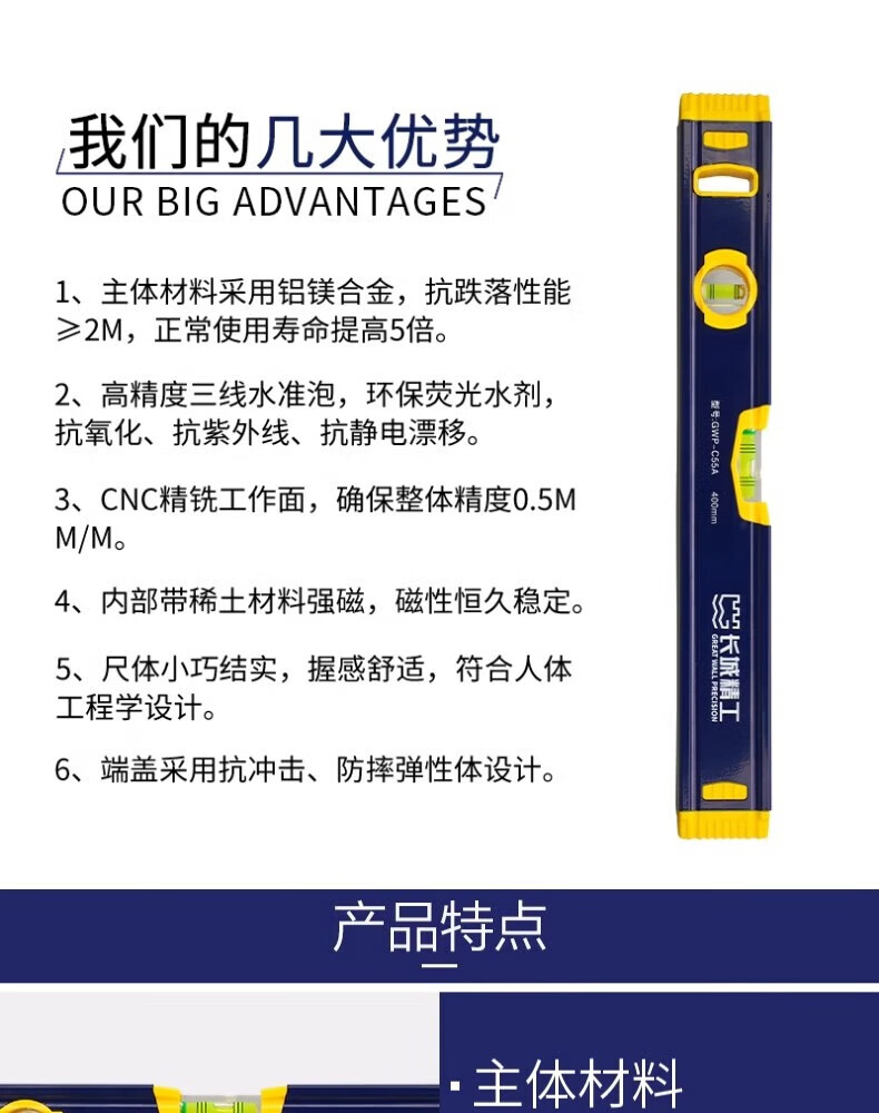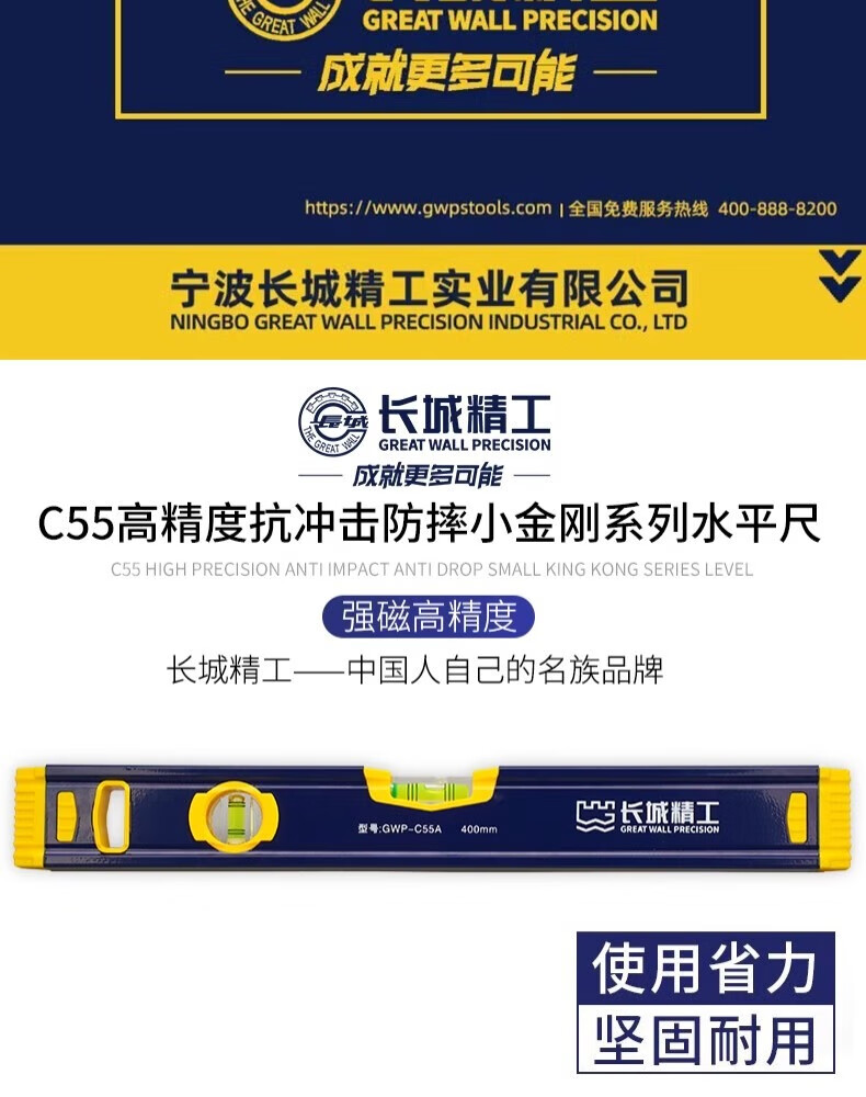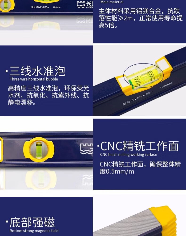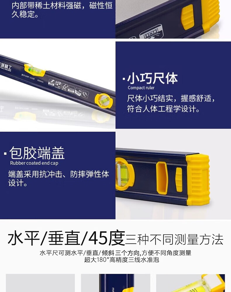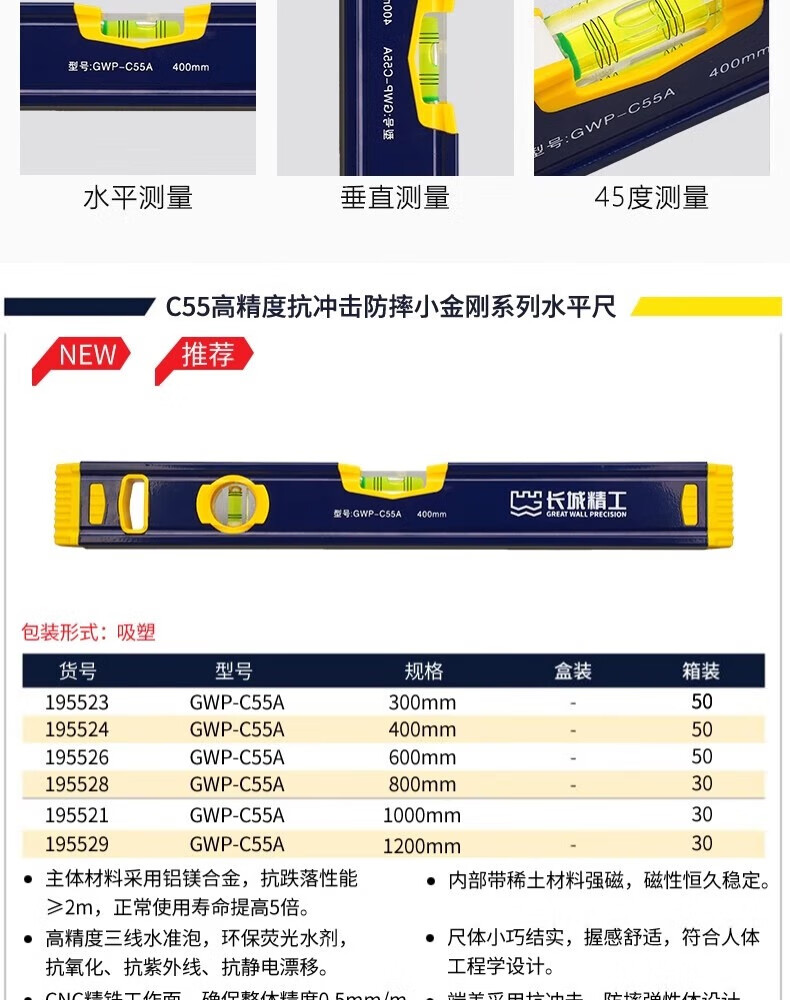 Great Wall Seiko high-precision level with strong magnetic industrial-grade leveling ruler magnetically thickened and hardened aluminum-magnesium alloy ruler 300mm/195523