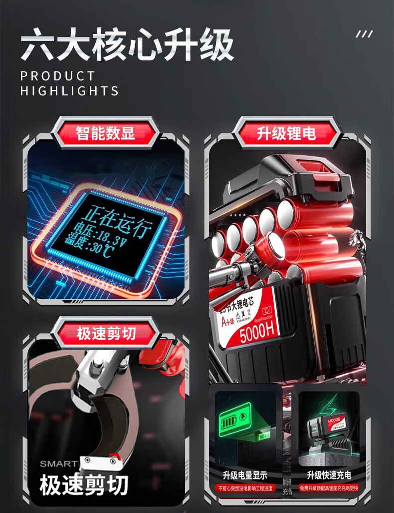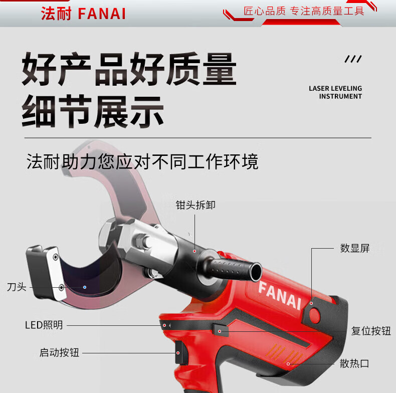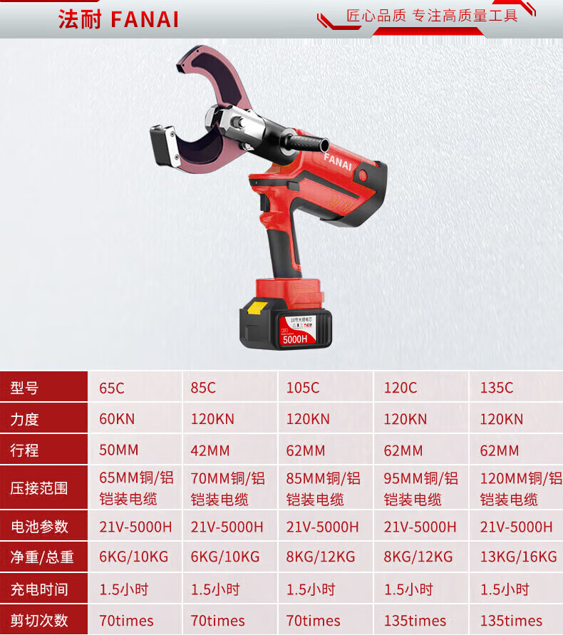 FANAI Electric Cable Cutter Hydraulic Cable Cutter Rechargeable Scissors Hydraulic Open Cable Cutter Electrician Cable Pliers Powerful Digital Display Type 135 Can Cut 125mm Dual Electricity and One Charge Set