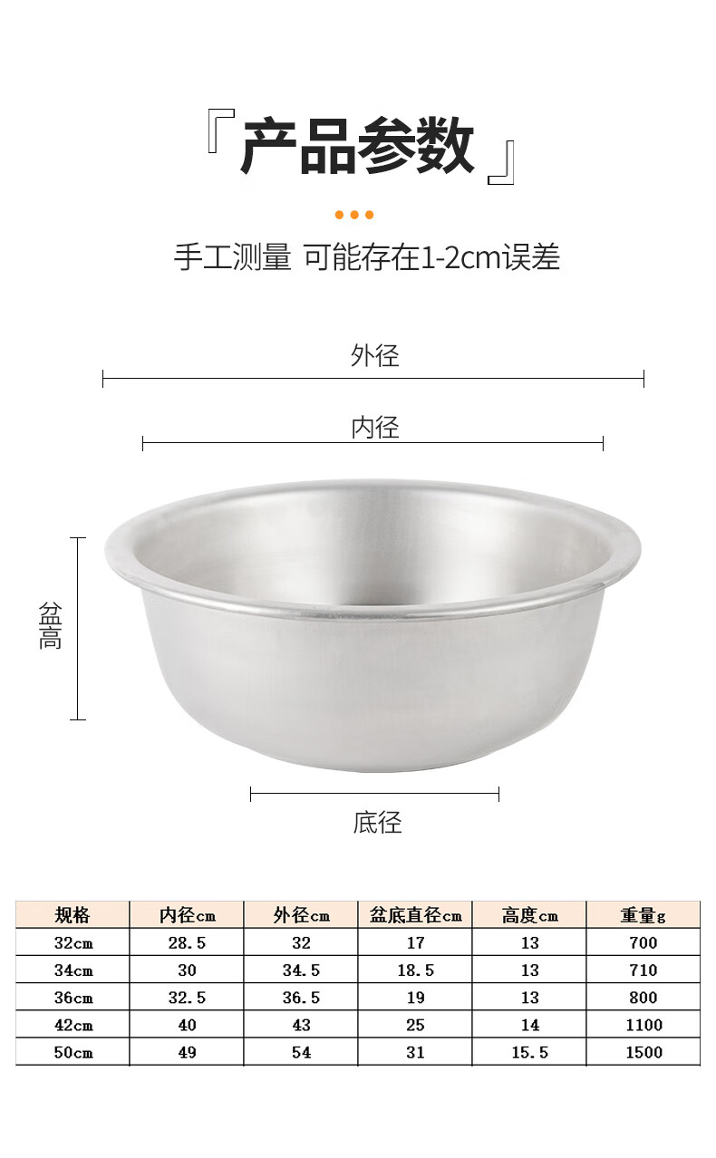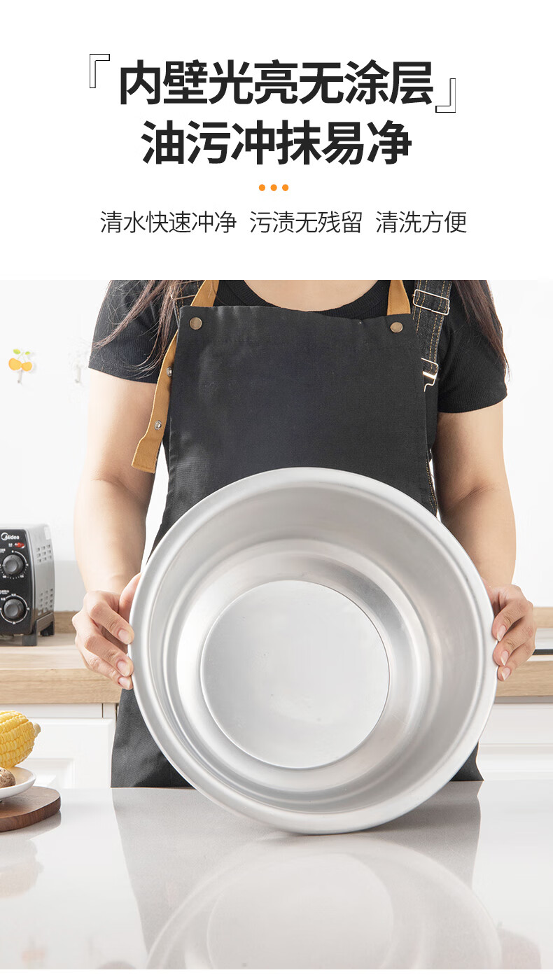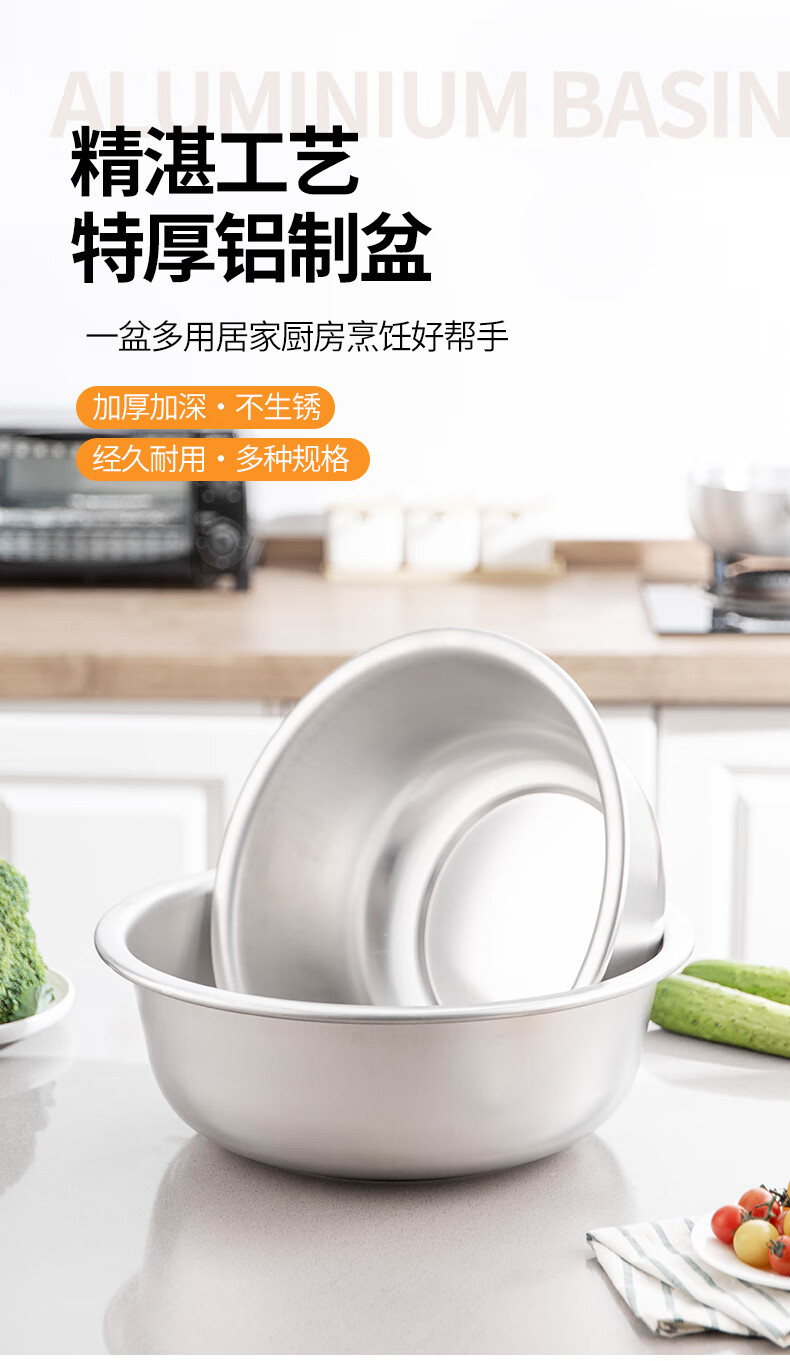 Oiyou aluminum basin old-fashioned thickened large household aluminum cake basin aluminum antimony basin aluminum basin flat bottom wash basin vegetable basin 45CM thickened aluminum basin