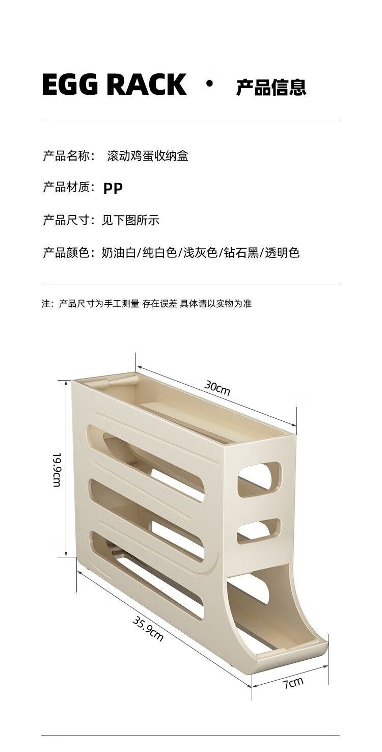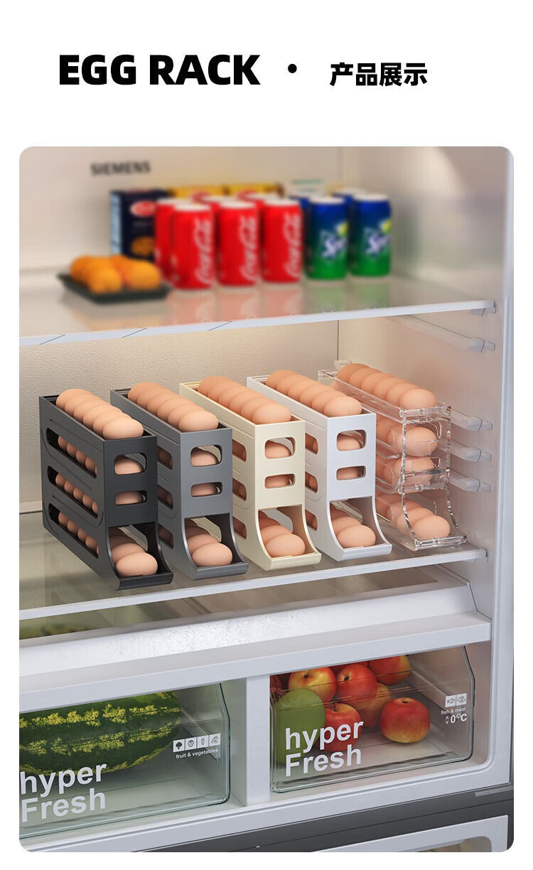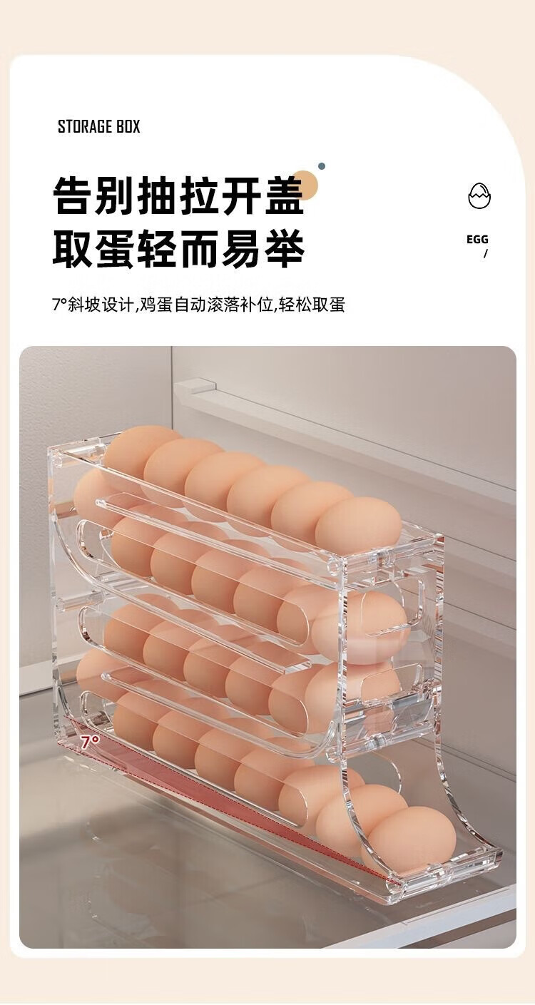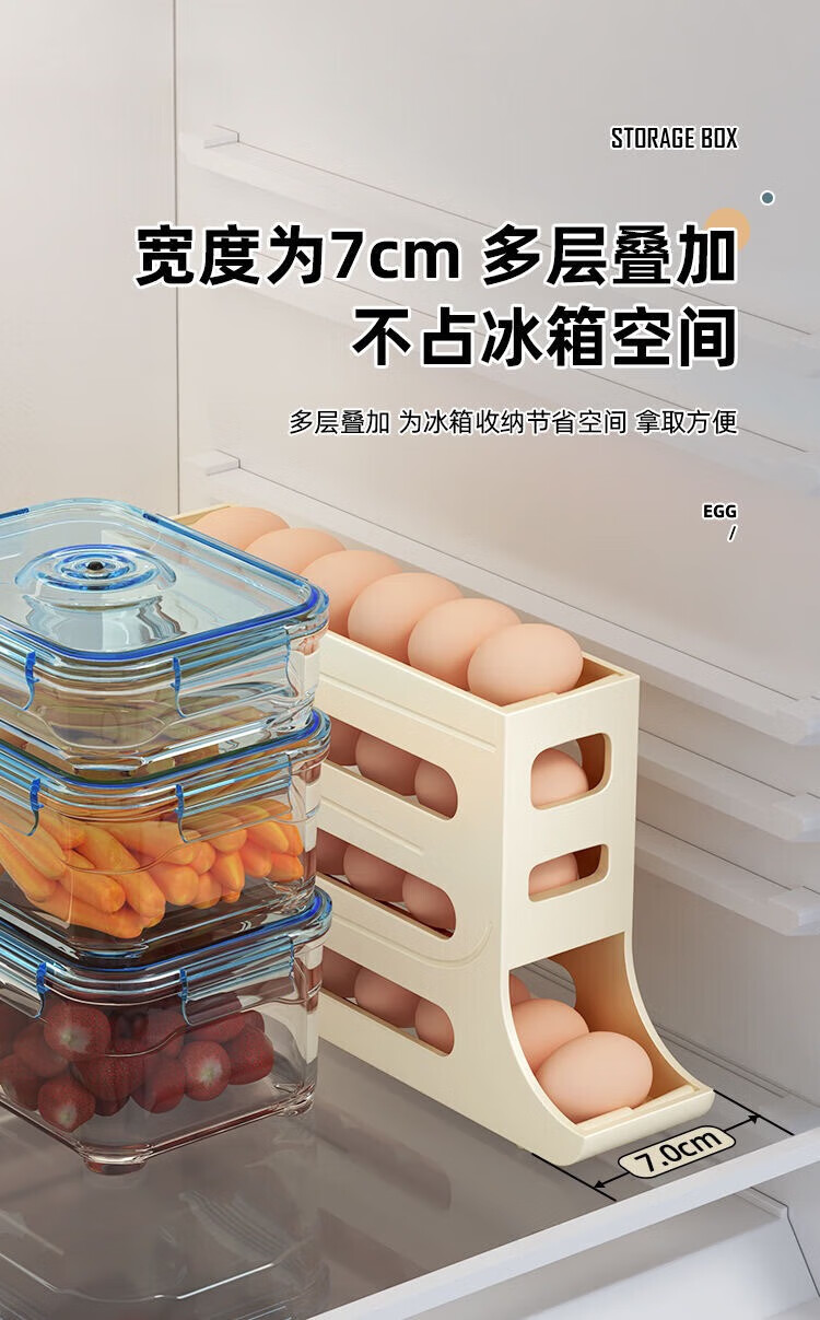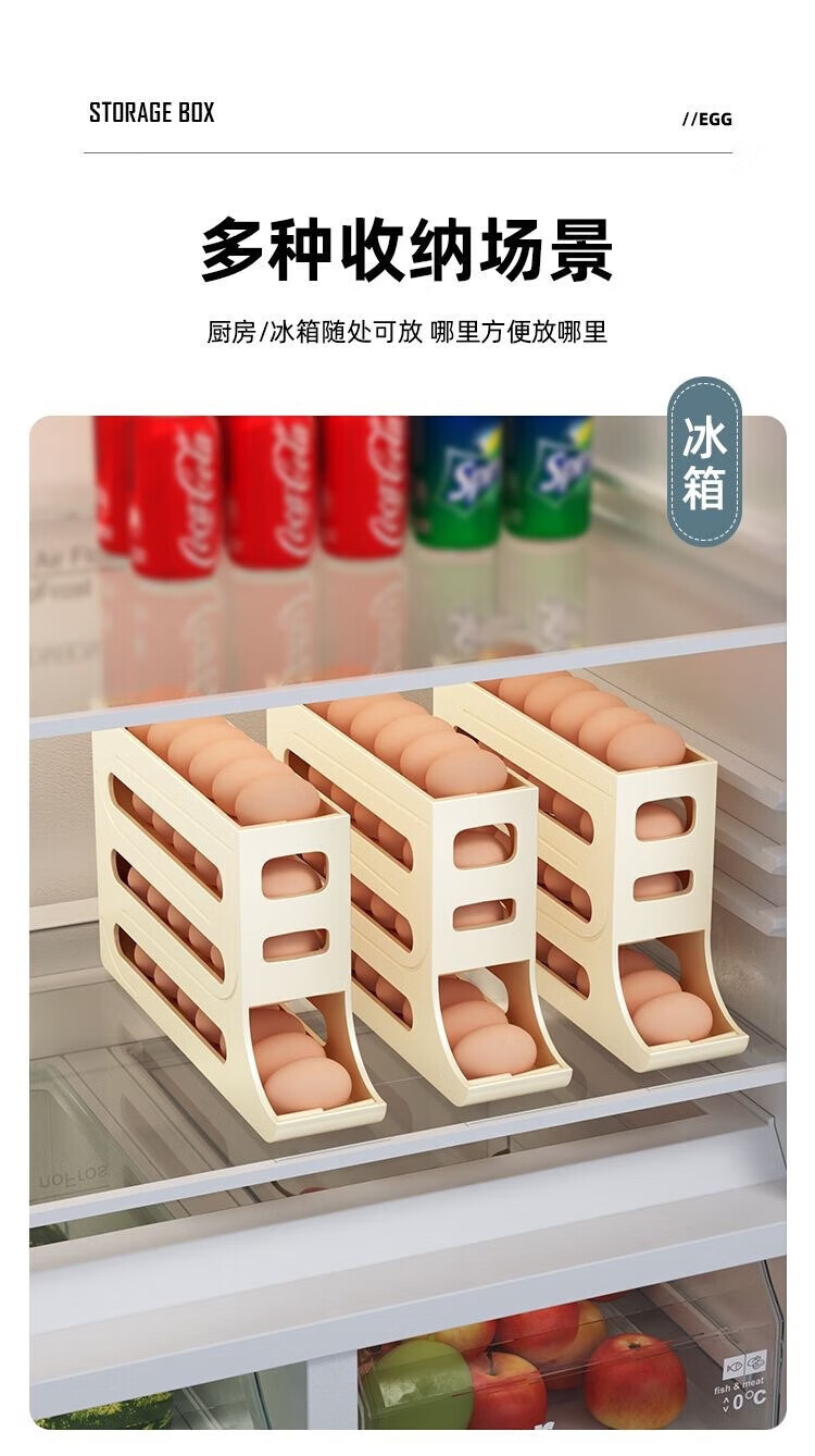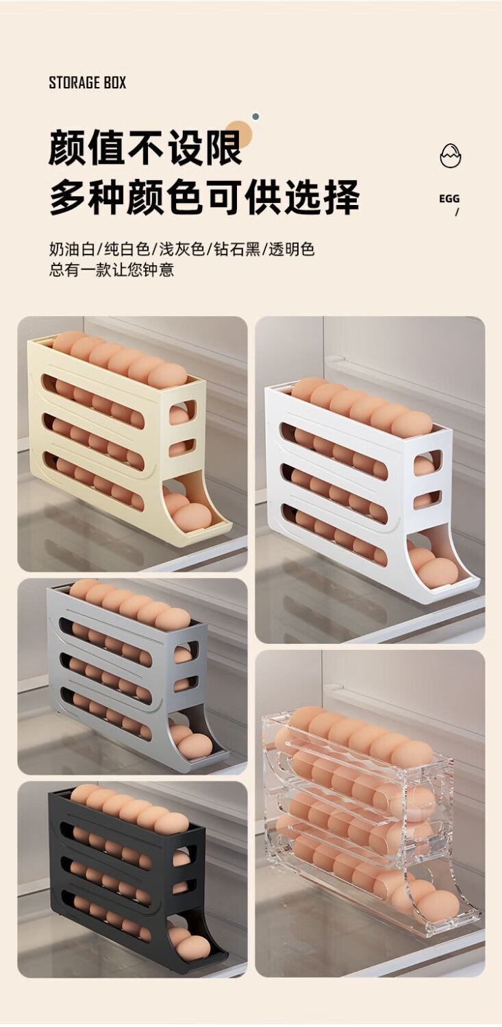 Zhenglizheng egg storage box for refrigerator with four-layer slide type automatic egg rolling device for side door of refrigerator, kitchen countertop anti-fall, milky white automatic rolling down/can hold 30 pieces