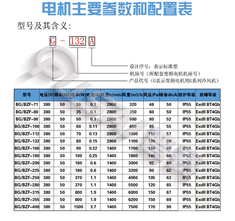 BZF/GBFBG7190100132160180225315 explosion-proof variable frequency speed motor ventilator BG-355/380V with shell