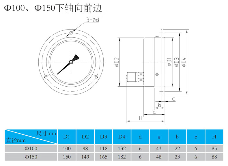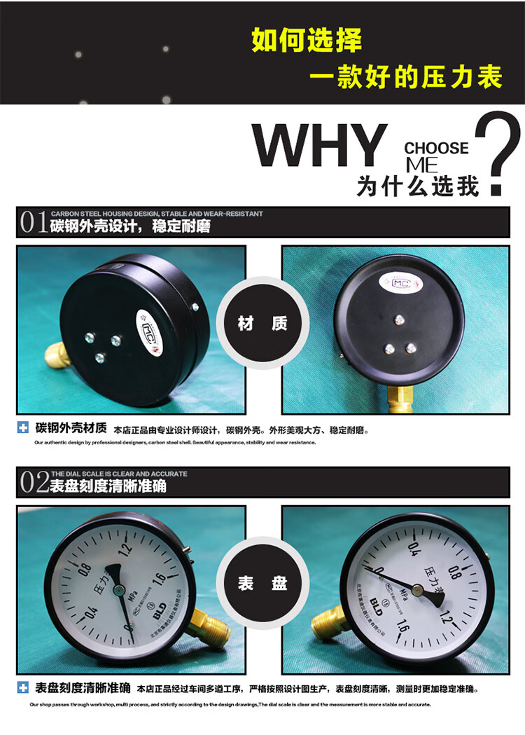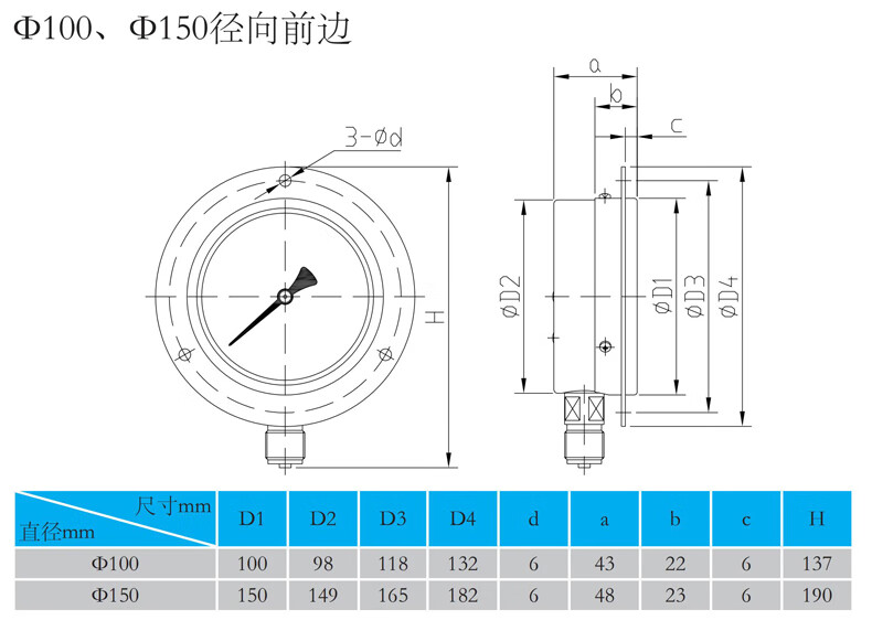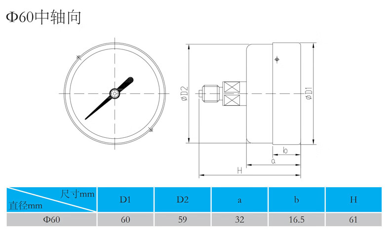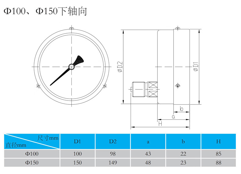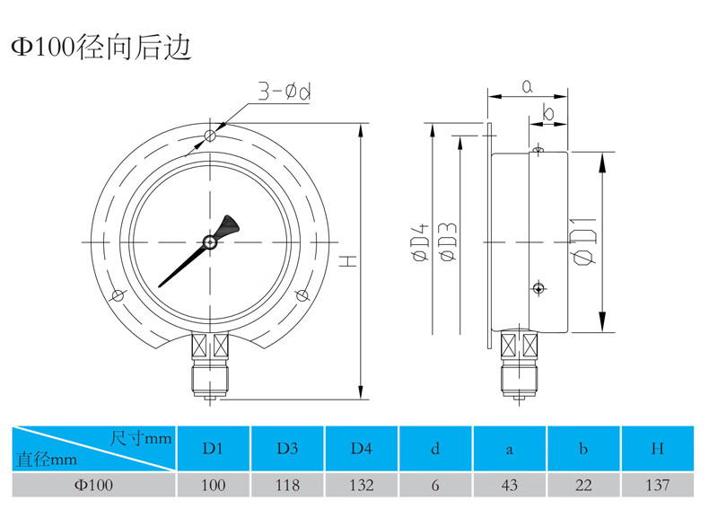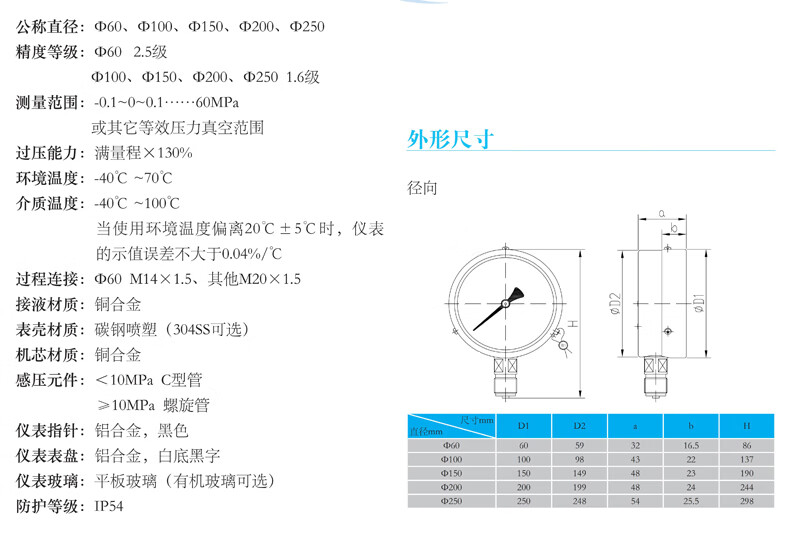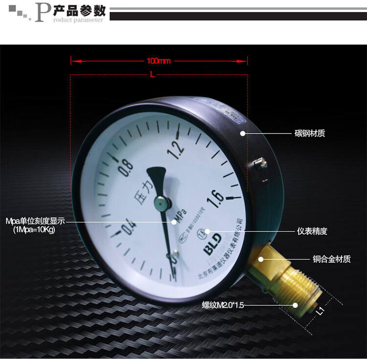 Pressure gauge Y100 ordinary Y60Y150 radial thread M20 hydraulic oil pressure air pressure gauge 0-6Mpa Y-100