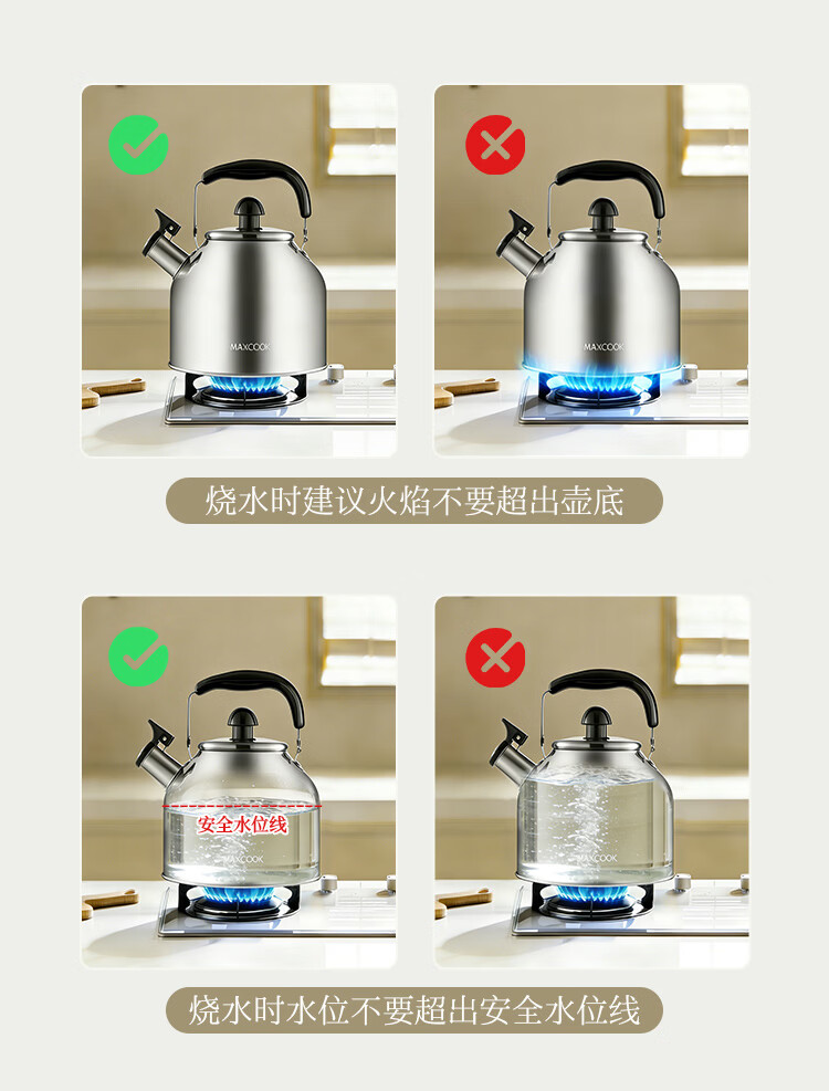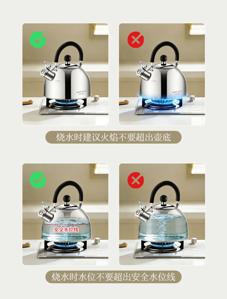 MAXCOOK 304 stainless steel kettle household kettle kung fu tea boiling automatic sound coal gas induction cooker universal MCH5480 1.5L