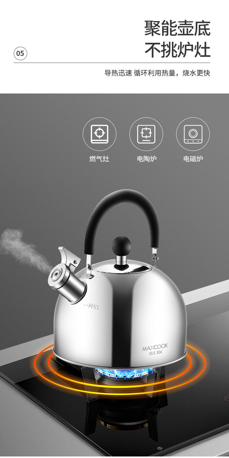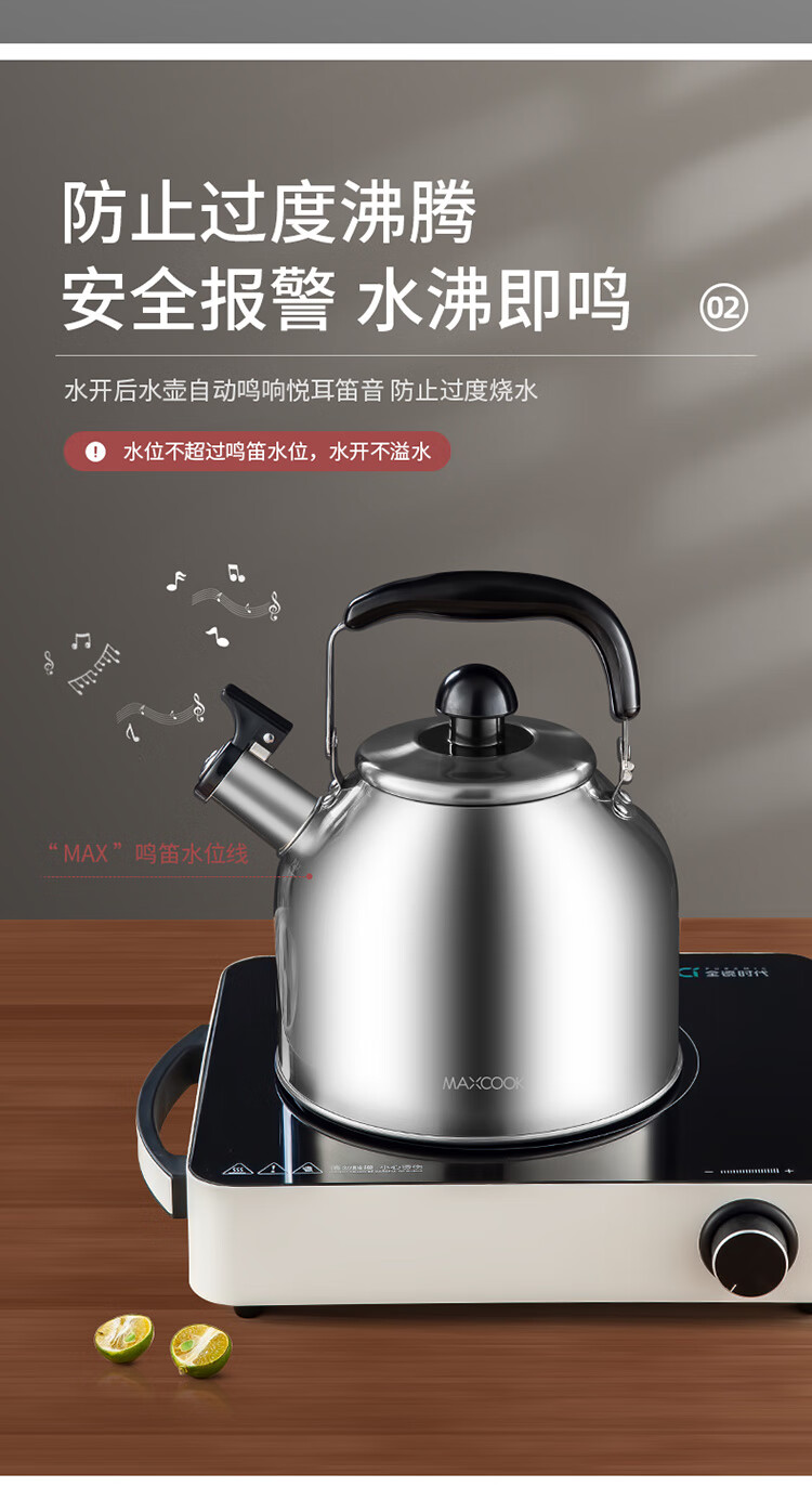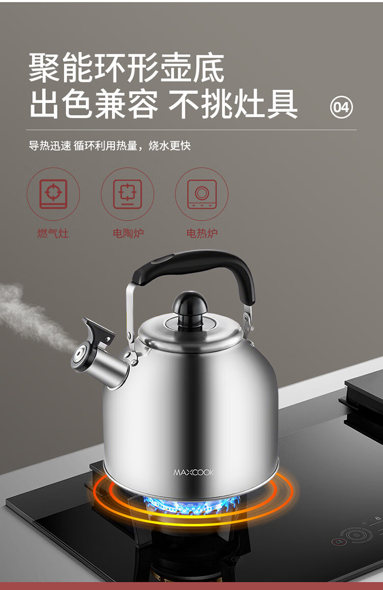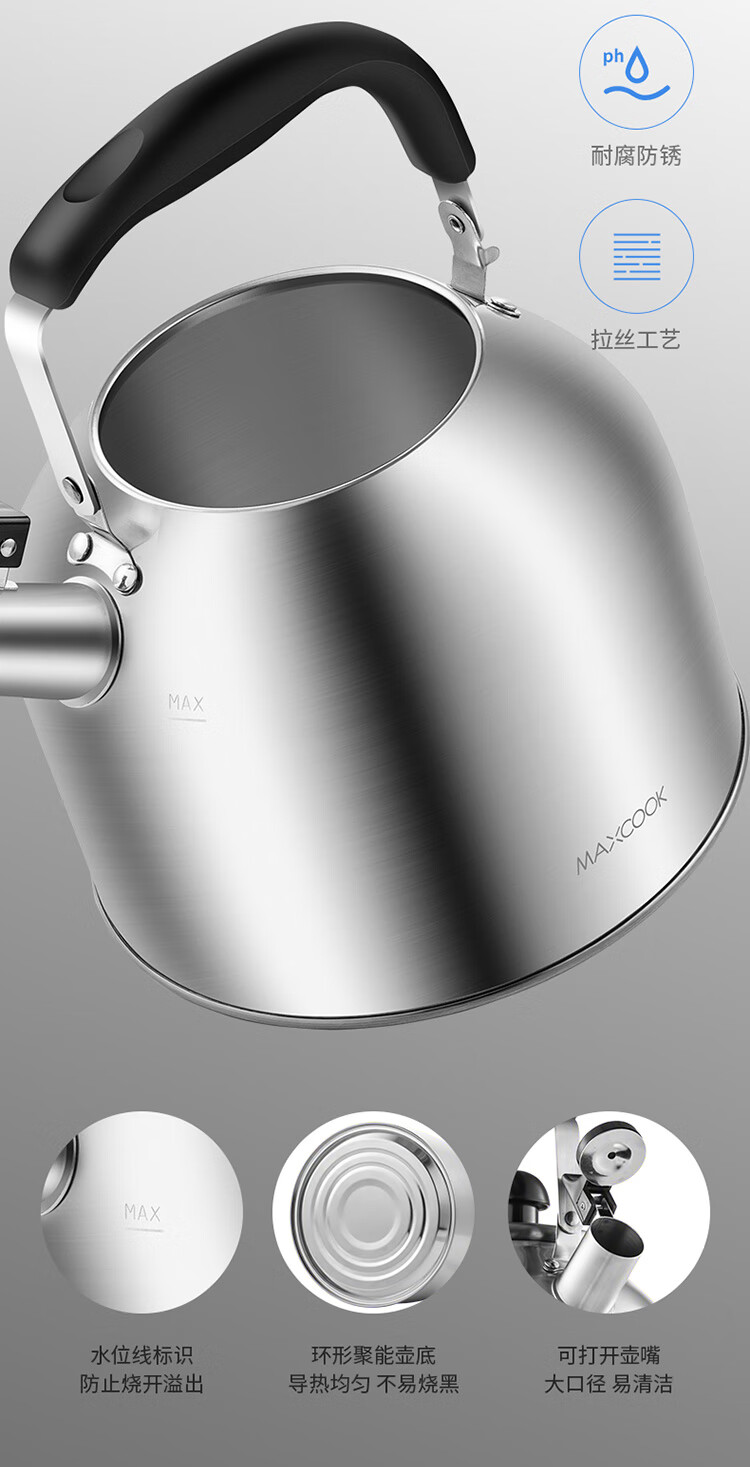 MAXCOOK 304 stainless steel kettle household kettle kung fu tea boiler automatic sound coal gas induction cooker universal MCH5497 2L