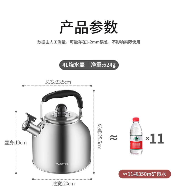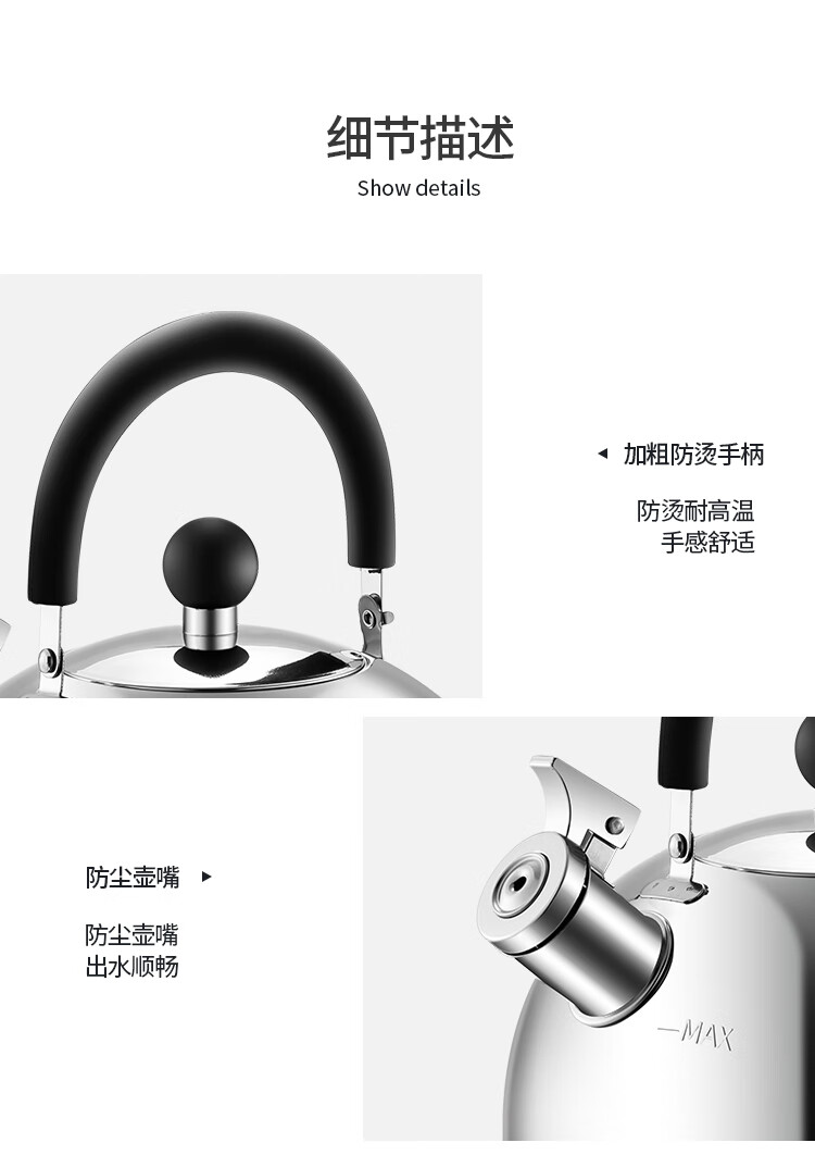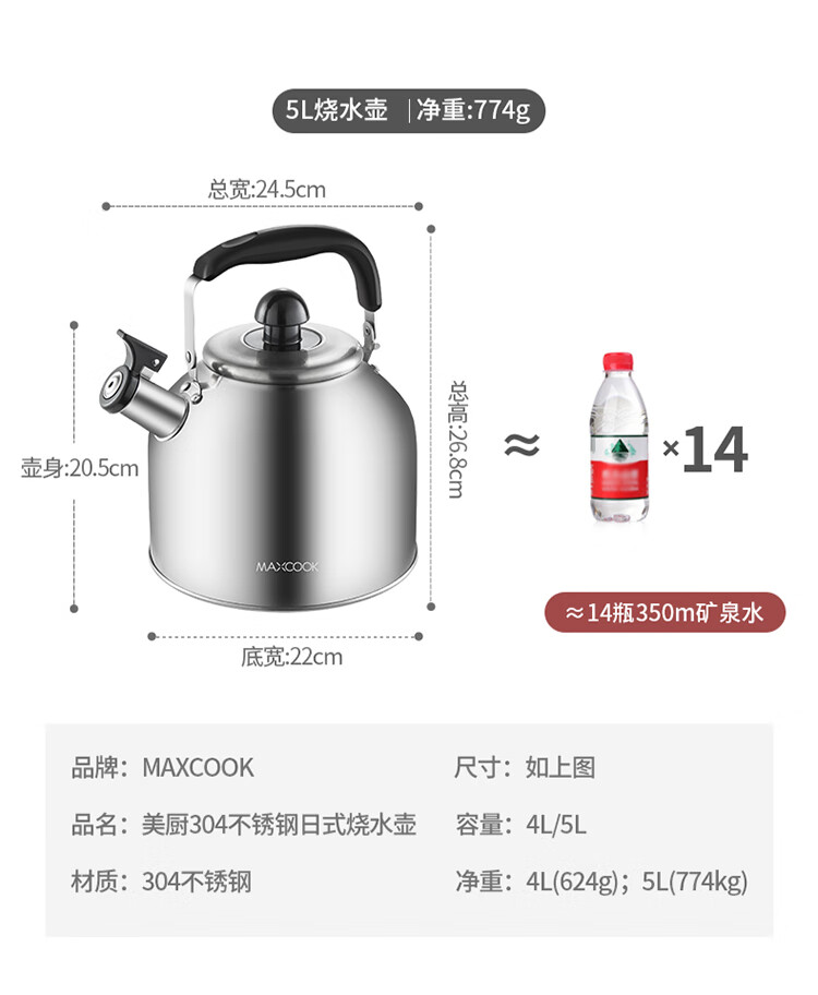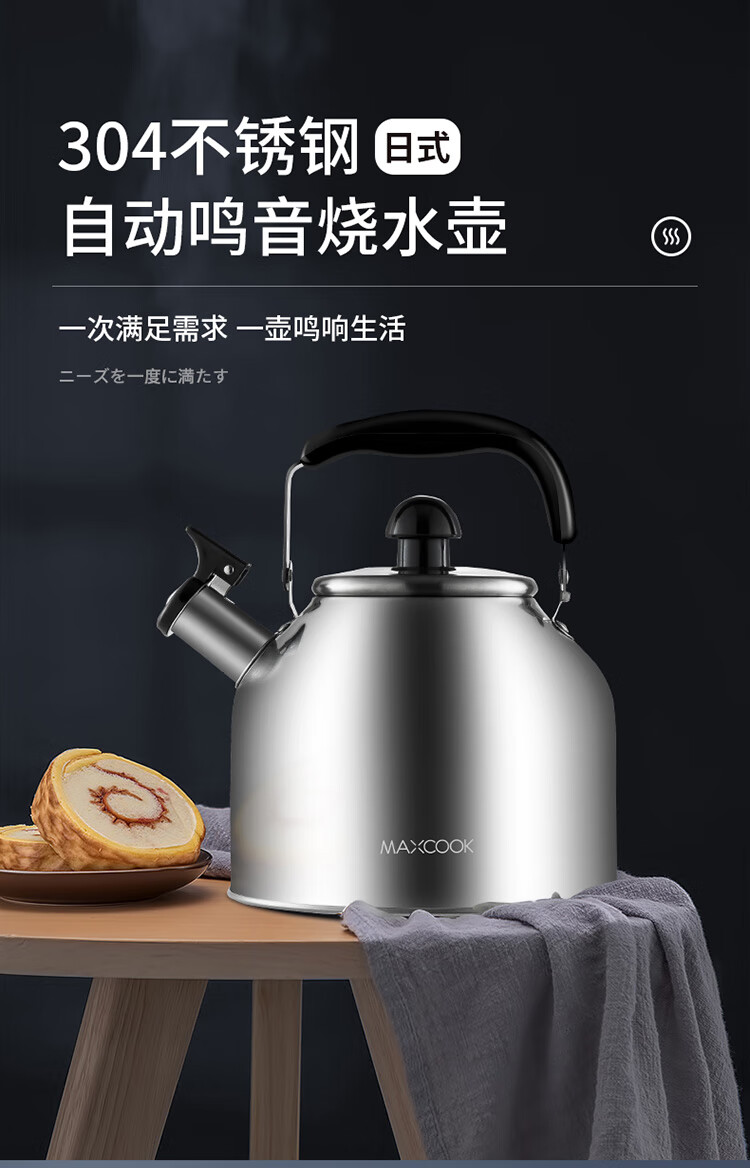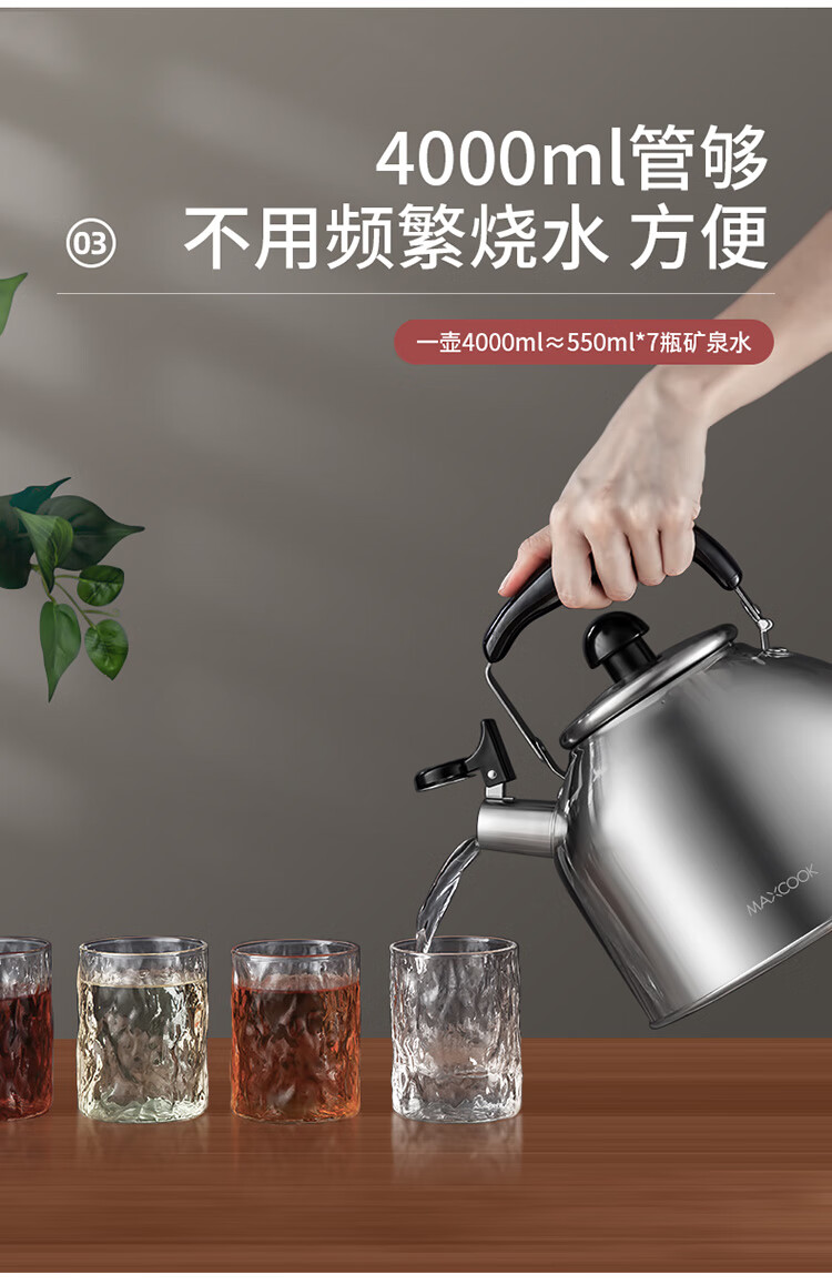 MAXCOOK 304 stainless steel kettle household kettle kung fu tea boiler automatic sound coal gas induction cooker universal MCH5497 2L