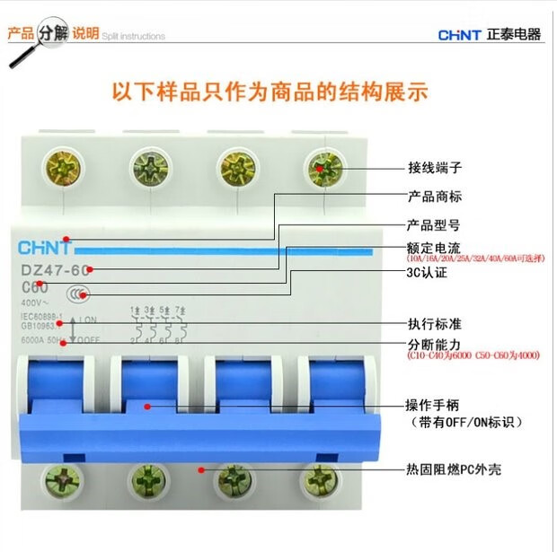 380V three-phase four-wire DZ47-60 air switch 4P circuit breaker 10/16/20/25/32/40/60A 60A 4p