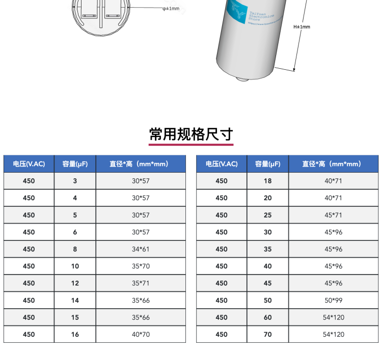 CBB60 running capacitor 450V with screw 10/14/15/18/20/25/30/45/50/70uf 5UF one