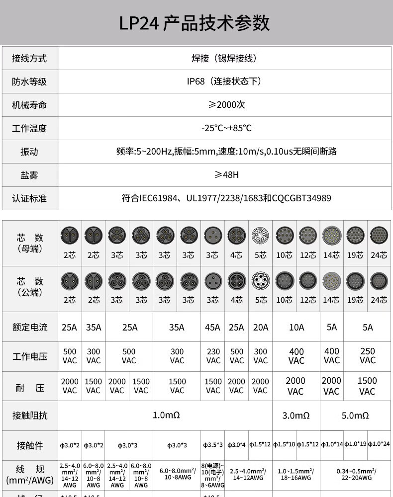 Lingke LP24 waterproof aviation plug socket 3 4 10 12 19 24 multi-core male and female docking quick plug connector LP24 type 3-core docking male connector