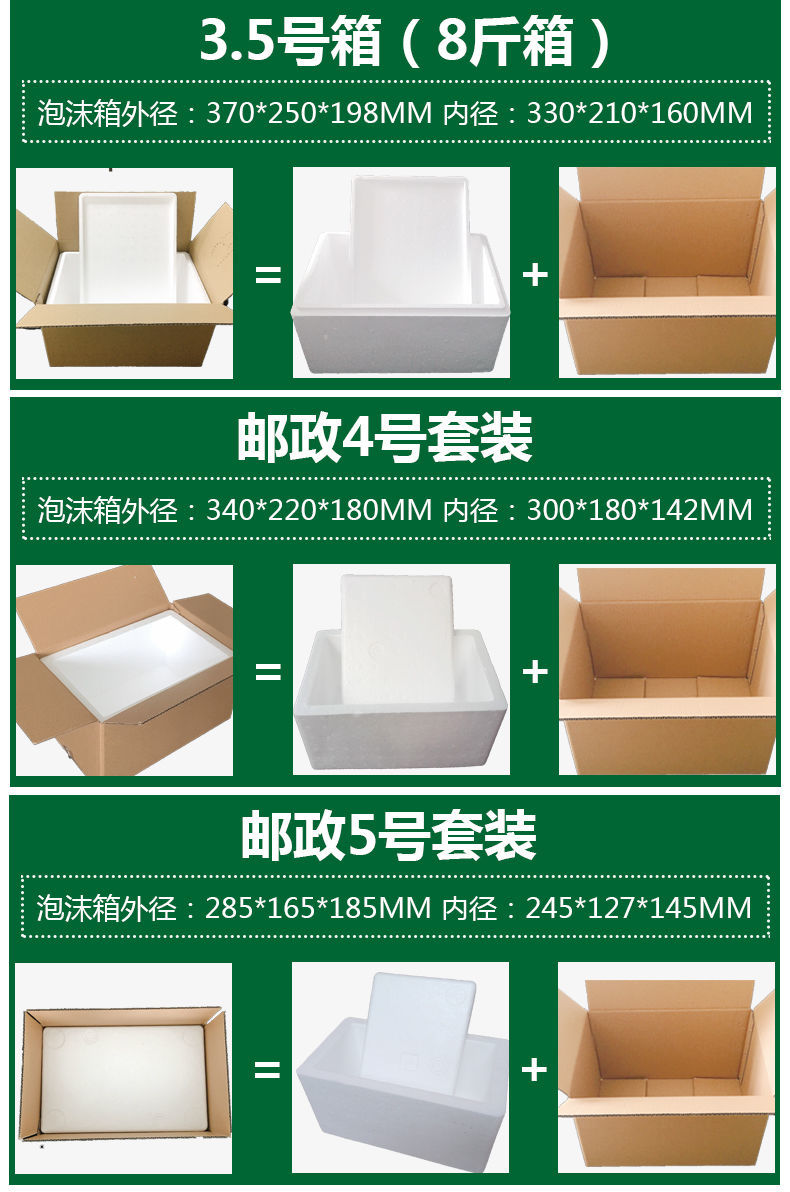 Postal box foam box matching carton set vegetables, fruits, fresh frozen products, seafood express insulated fresh-keeping box No. 1.5 high box + carton (3 sets)