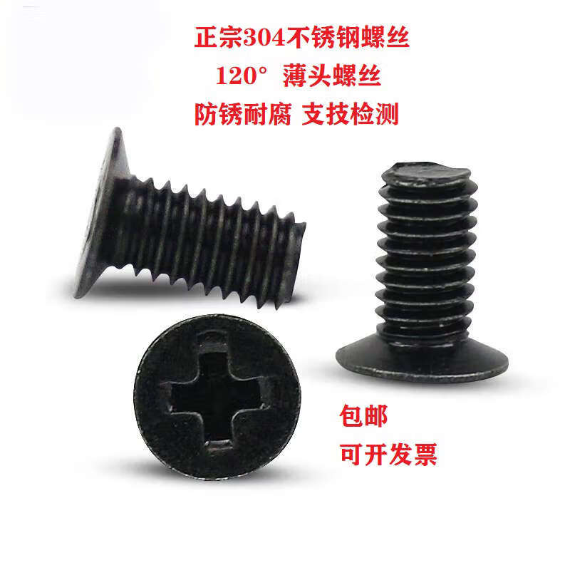 Huili 304 black stainless steel 120 degree thin head cross small countersunk head flat head angle screw M3*3x4x5x6x8 120 M4*6 black (1000 pieces)