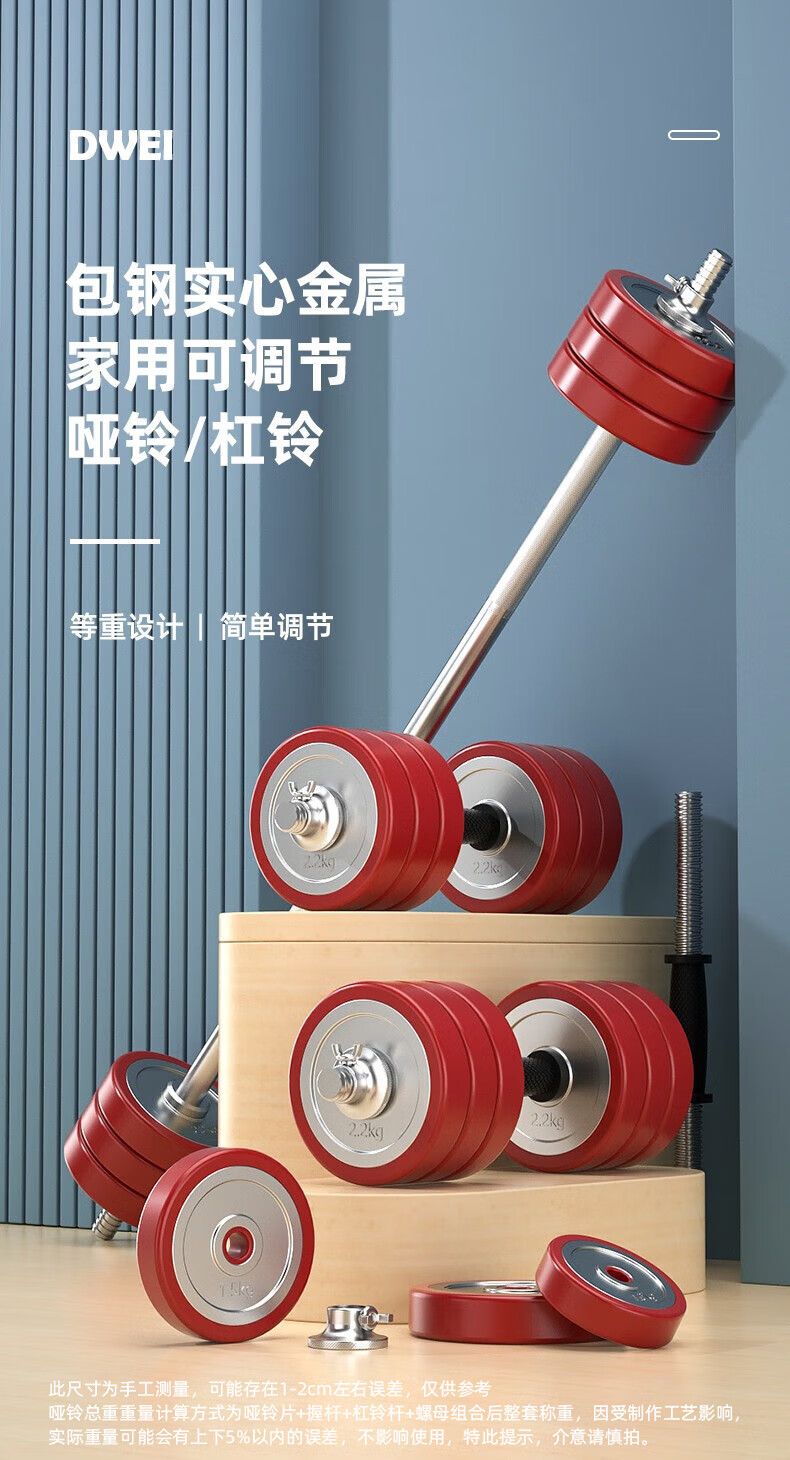 Langwei Dumbbell Men's Pure Steel-Coated Adjustable Barbell Set Household Disassembly Rubber-Coated Subbell Combination Exercise Fitness Equipment 40kg=20kg*2 Steel-Coated Imperial Blue