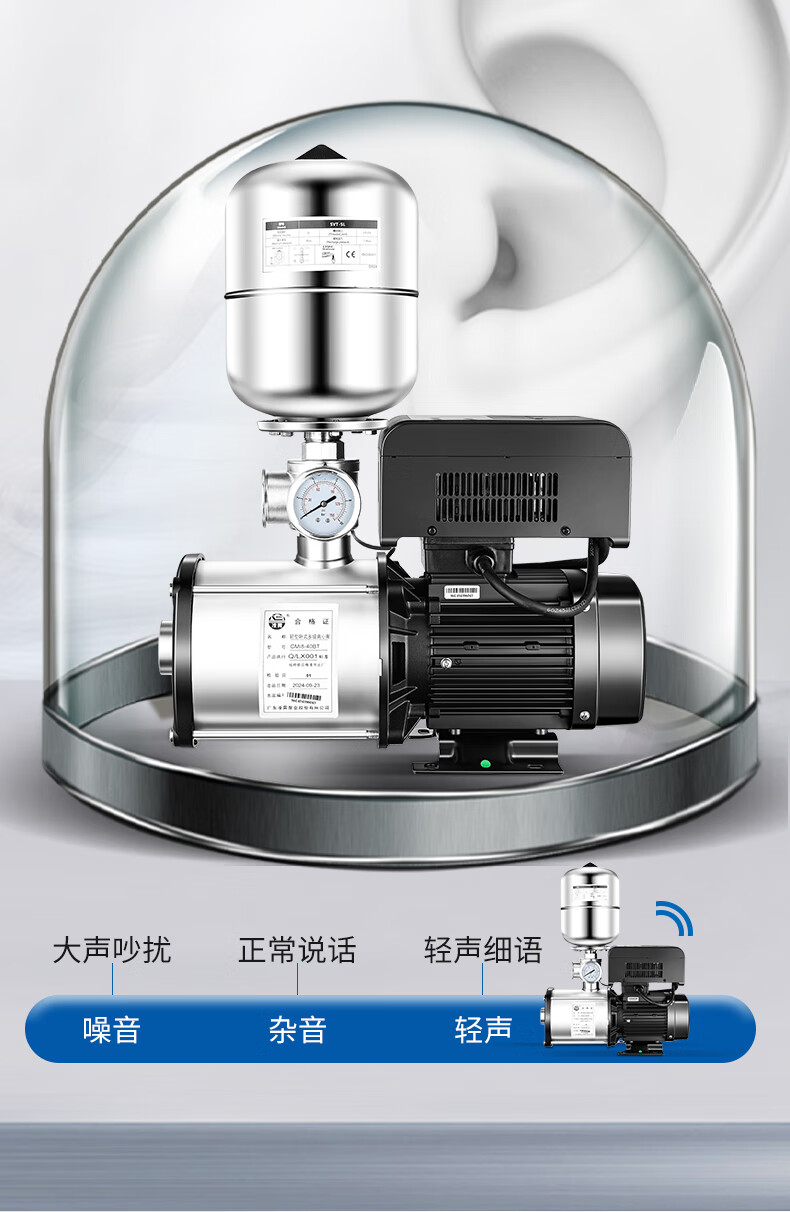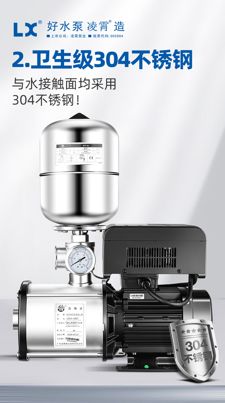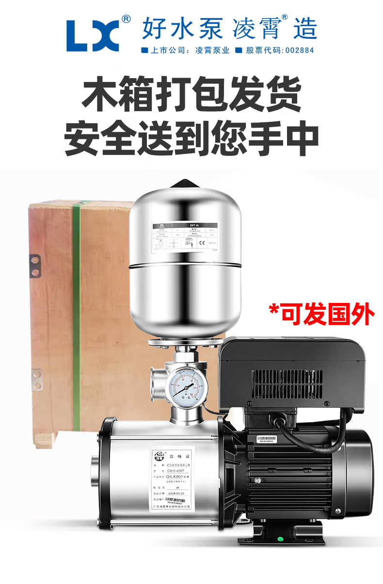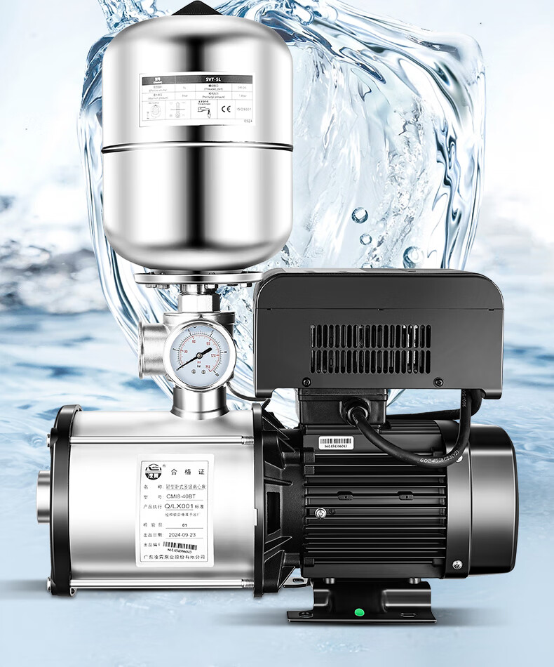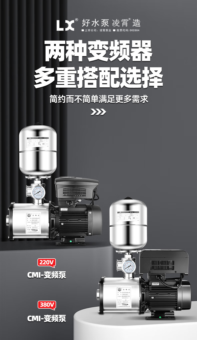 Lingxiao CMI variable frequency constant voltage booster pump intelligent fully automatic silent 304 stainless steel 220V household and commercial 380V 220V-550W-3 cubic meters/hour-34 meters