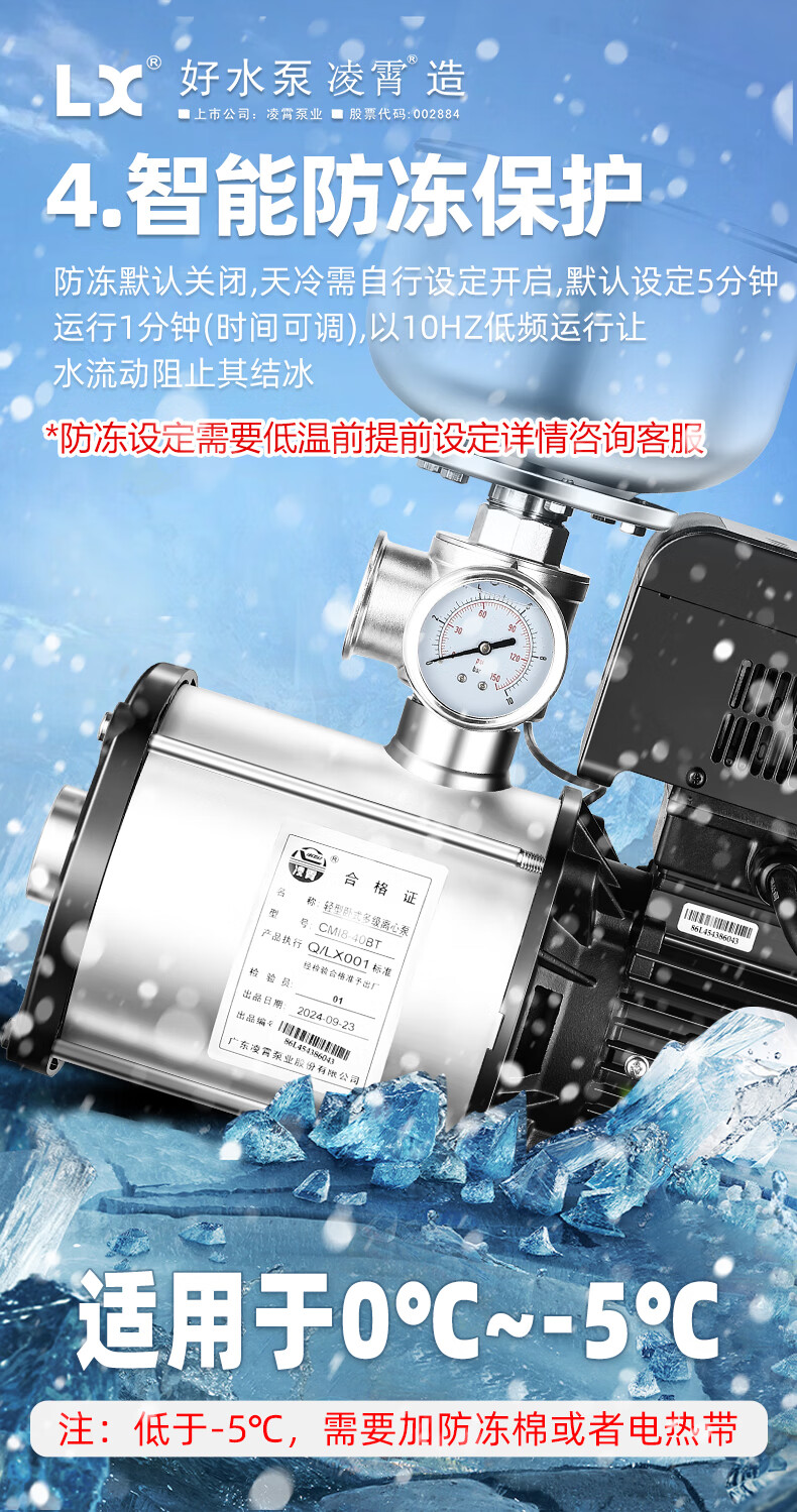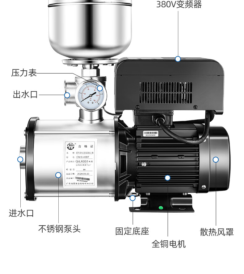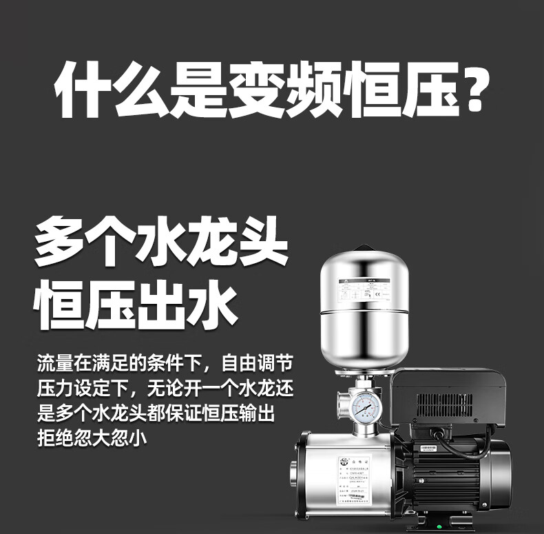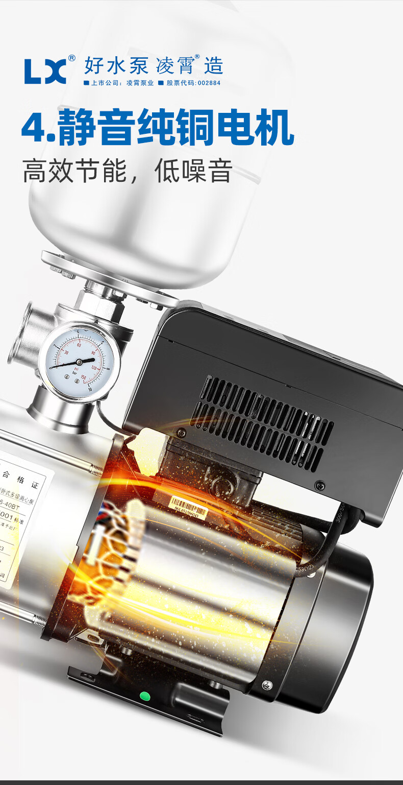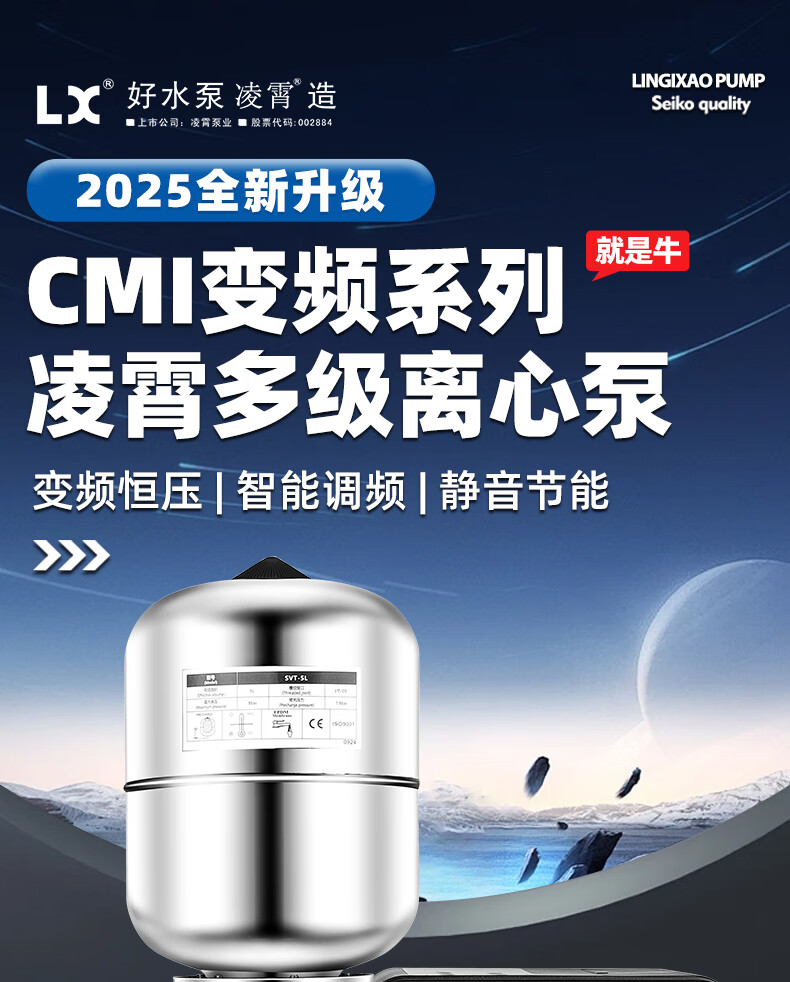 Lingxiao CMI variable frequency constant voltage booster pump intelligent fully automatic silent 304 stainless steel 220V household and commercial 380V 220V-550W-3 cubic meters/hour-34 meters