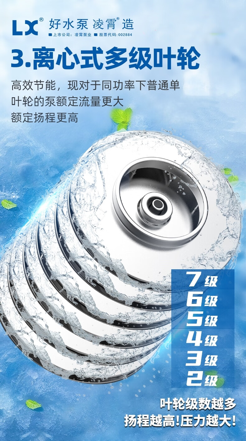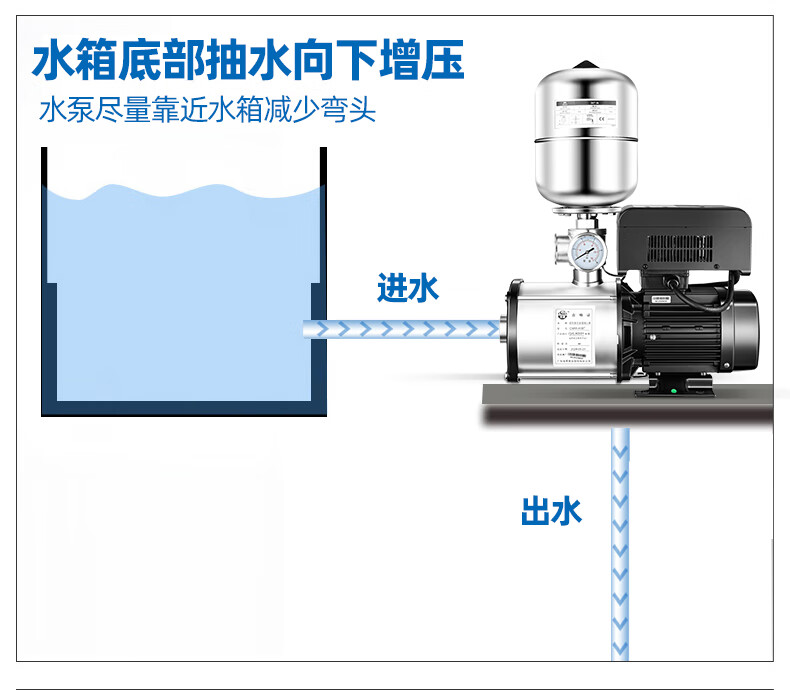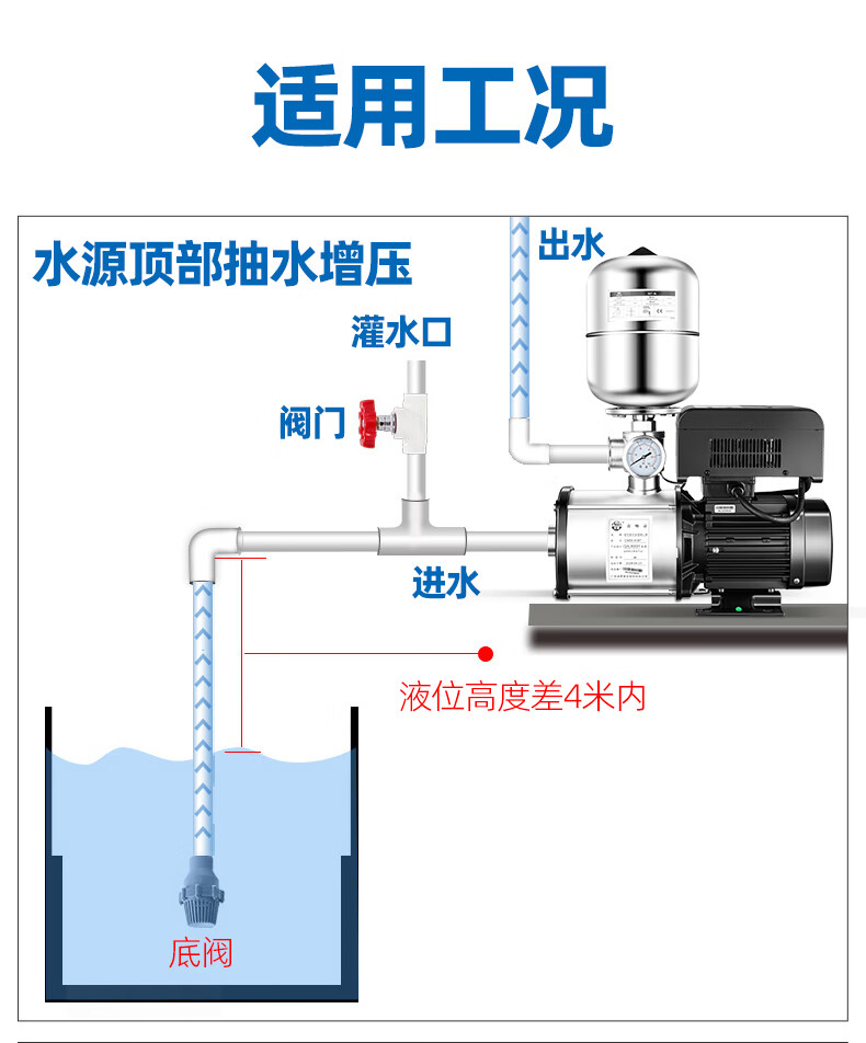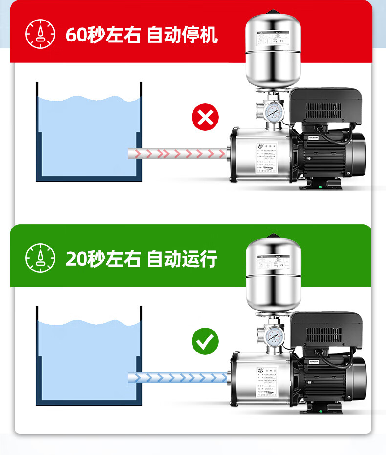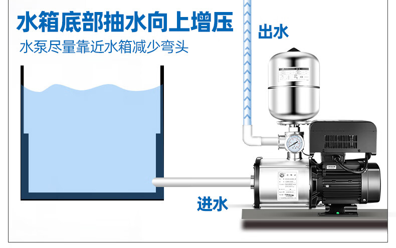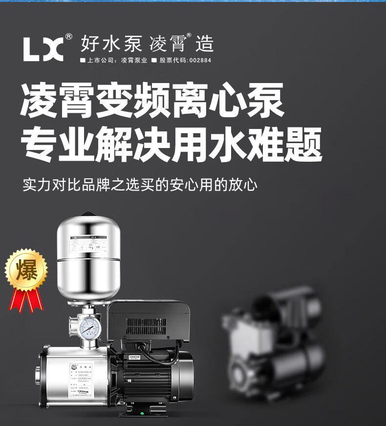 Lingxiao CMI variable frequency constant voltage booster pump intelligent fully automatic silent 304 stainless steel 220V household and commercial 380V 220V-550W-3 cubic meters/hour-34 meters