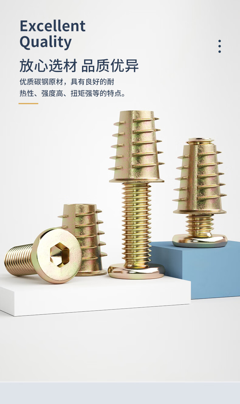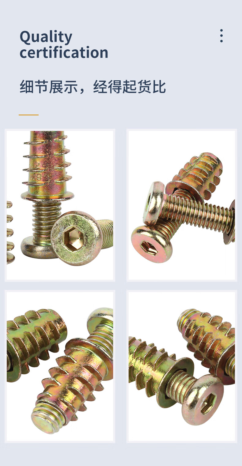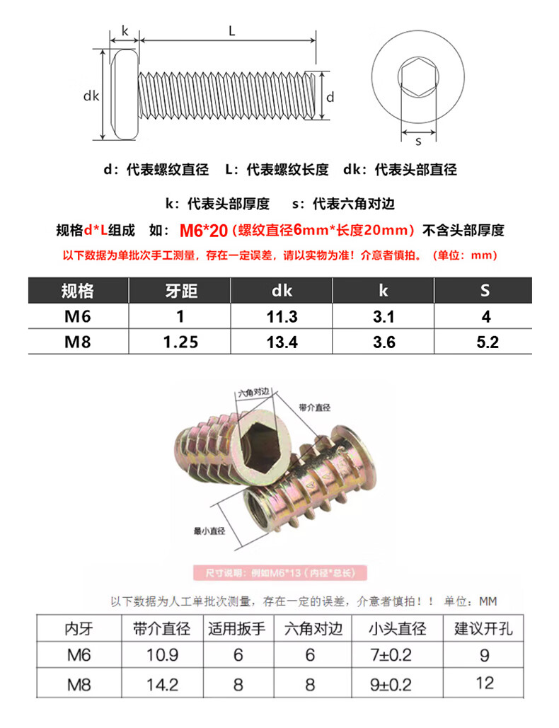 Guwanji hexagonal furniture screws, internal and external teeth, embedded nuts set, flat head screws, inlaid nuts, wooden bed connectors, M6x16 (20 sets)