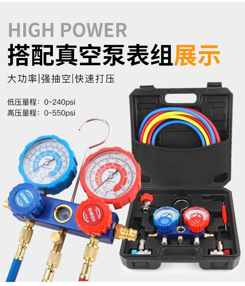 Car air conditioner vacuum pump, refrigerant filling and pumping, automatic pressure, dual-purpose vacuum pump, refrigerator tool, car non-adjustable double gauge