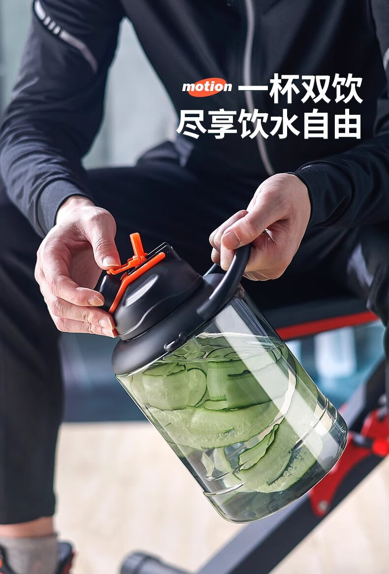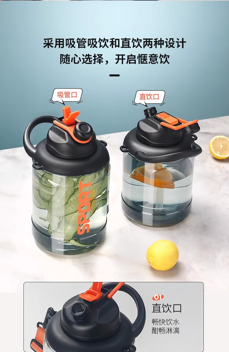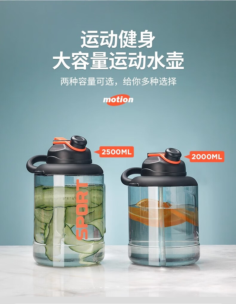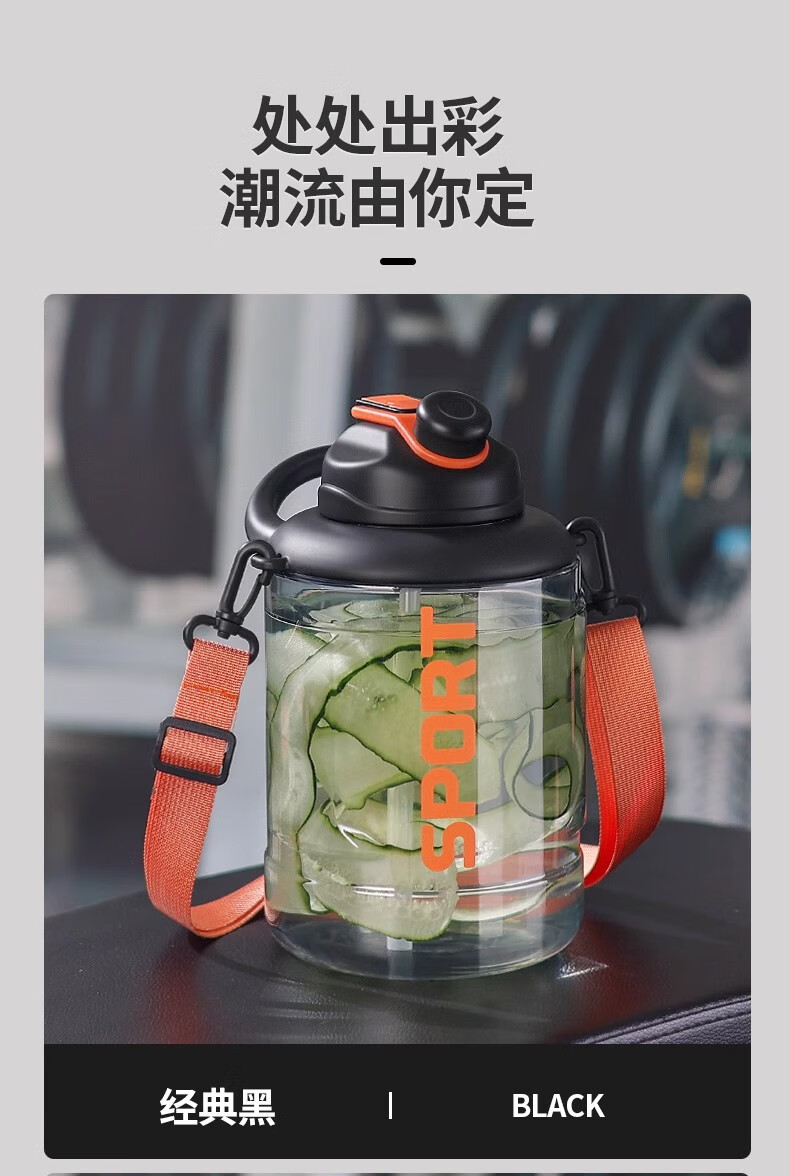 Poppy Bear Water Cup Large Capacity Plastic Cup Men's Ton Bucket Summer Sports and Fitness Large Water Bottle High Temperature Resistant Big Belly Cup Powerful Ton Bucket Black + Cup Brush Straw Brush 2500ml