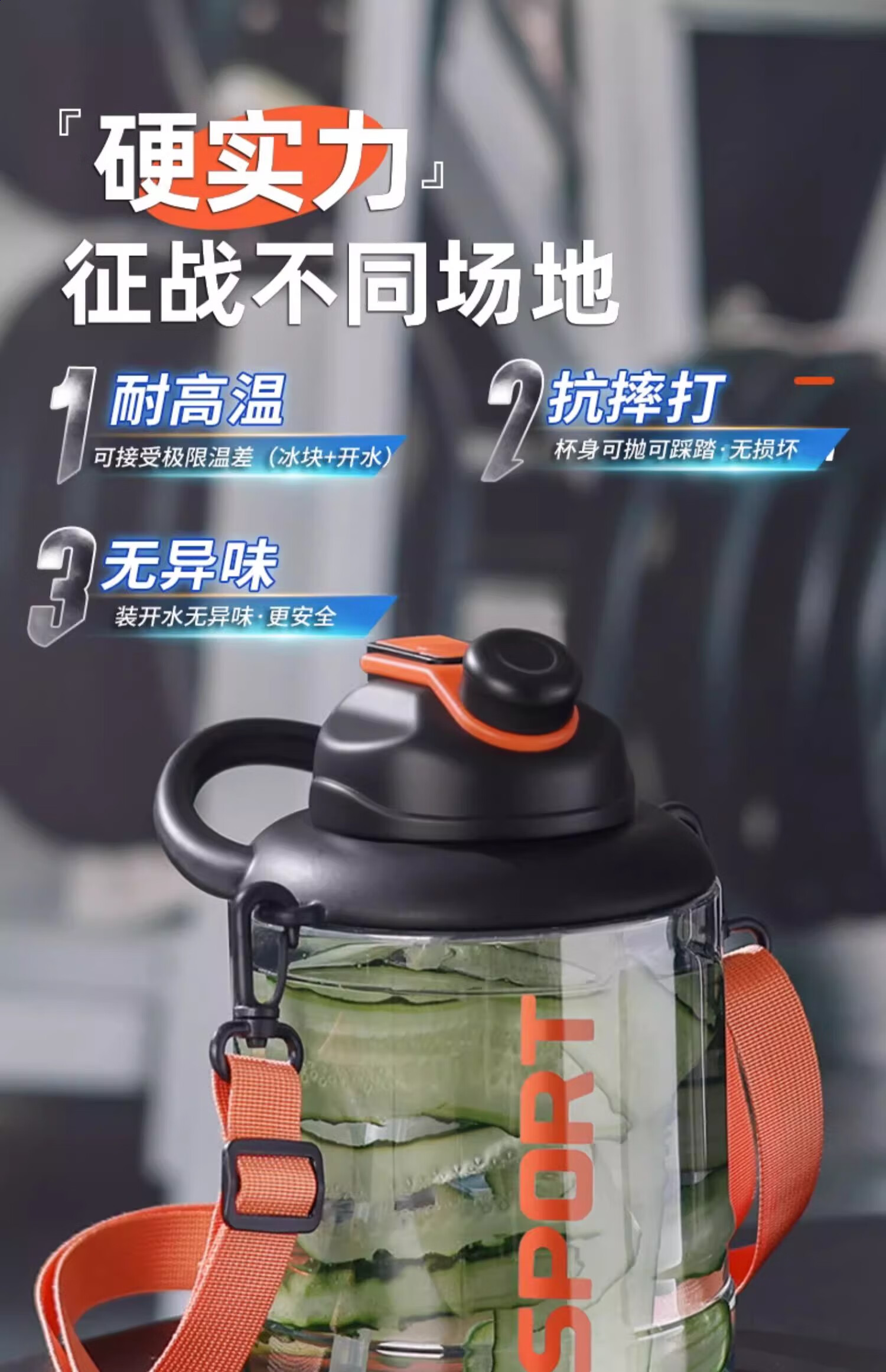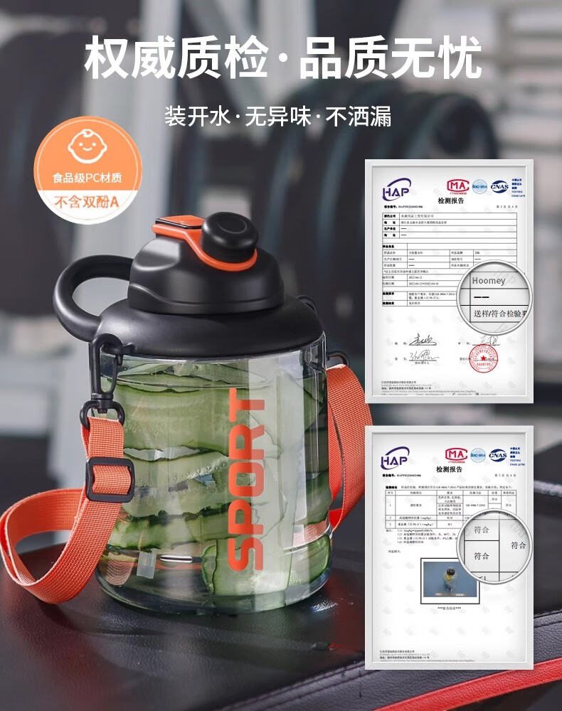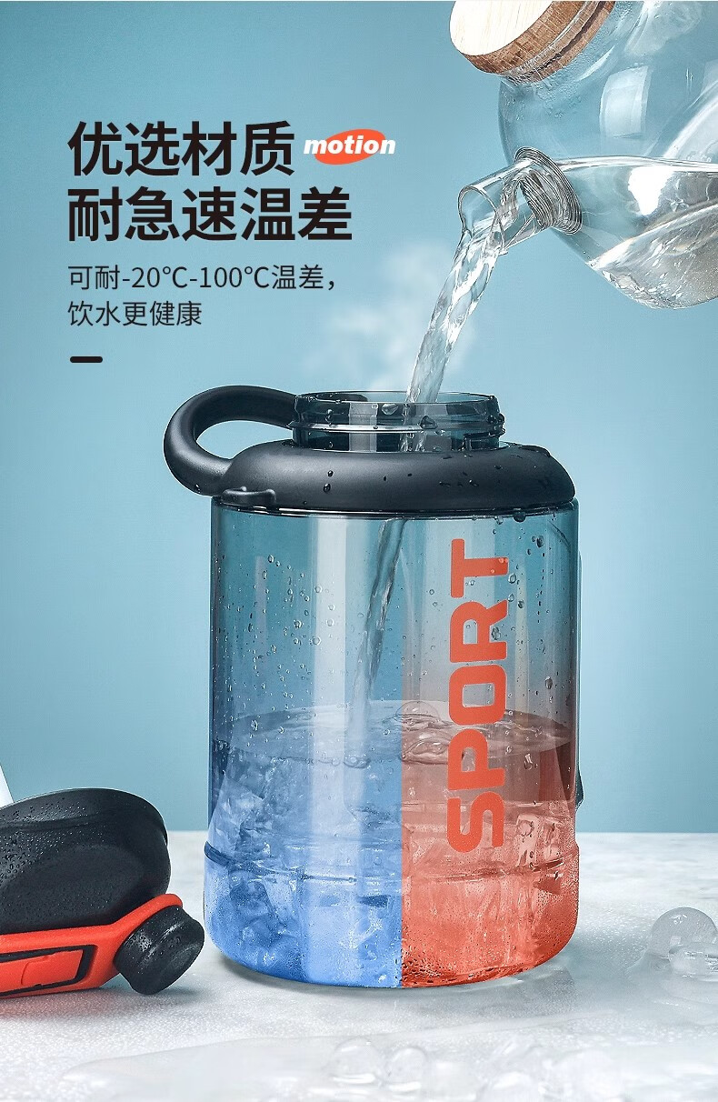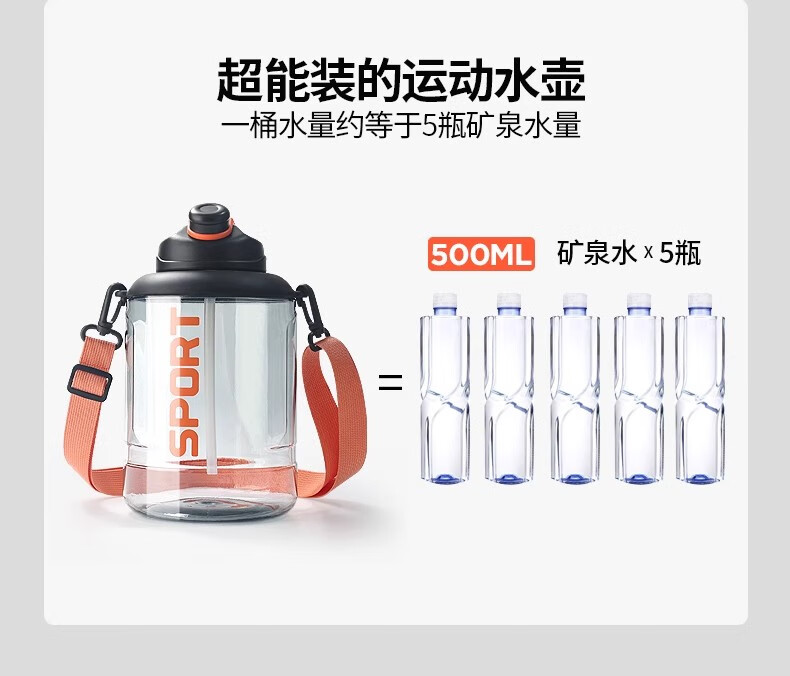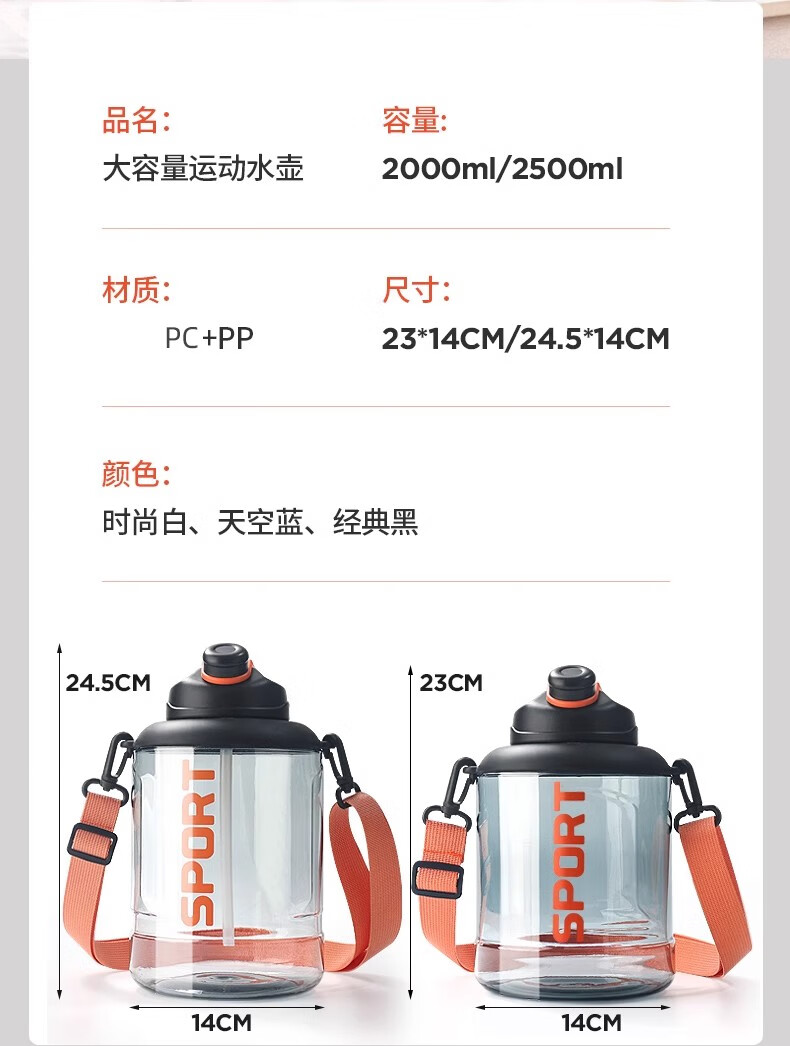 Poppy Bear Water Cup Large Capacity Plastic Cup Men's Ton Bucket Summer Sports and Fitness Large Water Bottle High Temperature Resistant Big Belly Cup Powerful Ton Bucket Black + Cup Brush Straw Brush 2500ml
