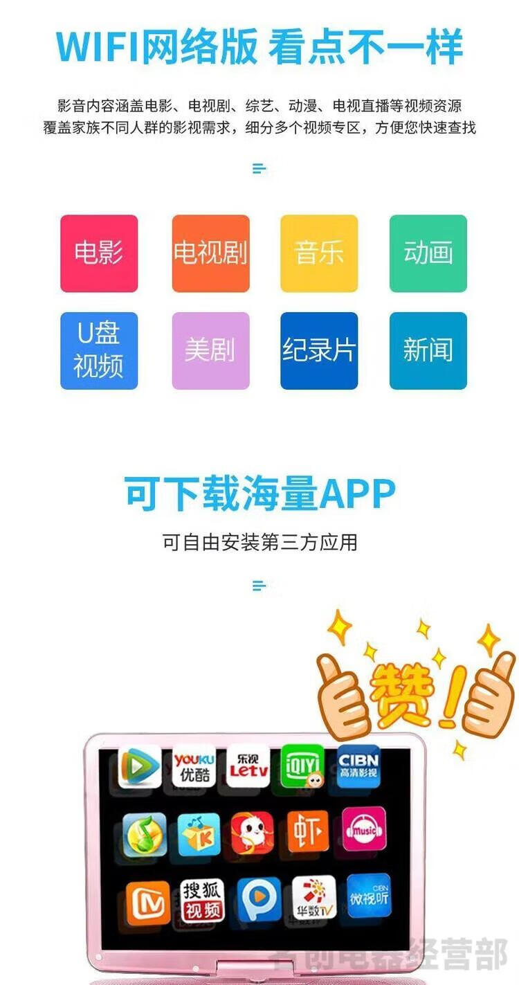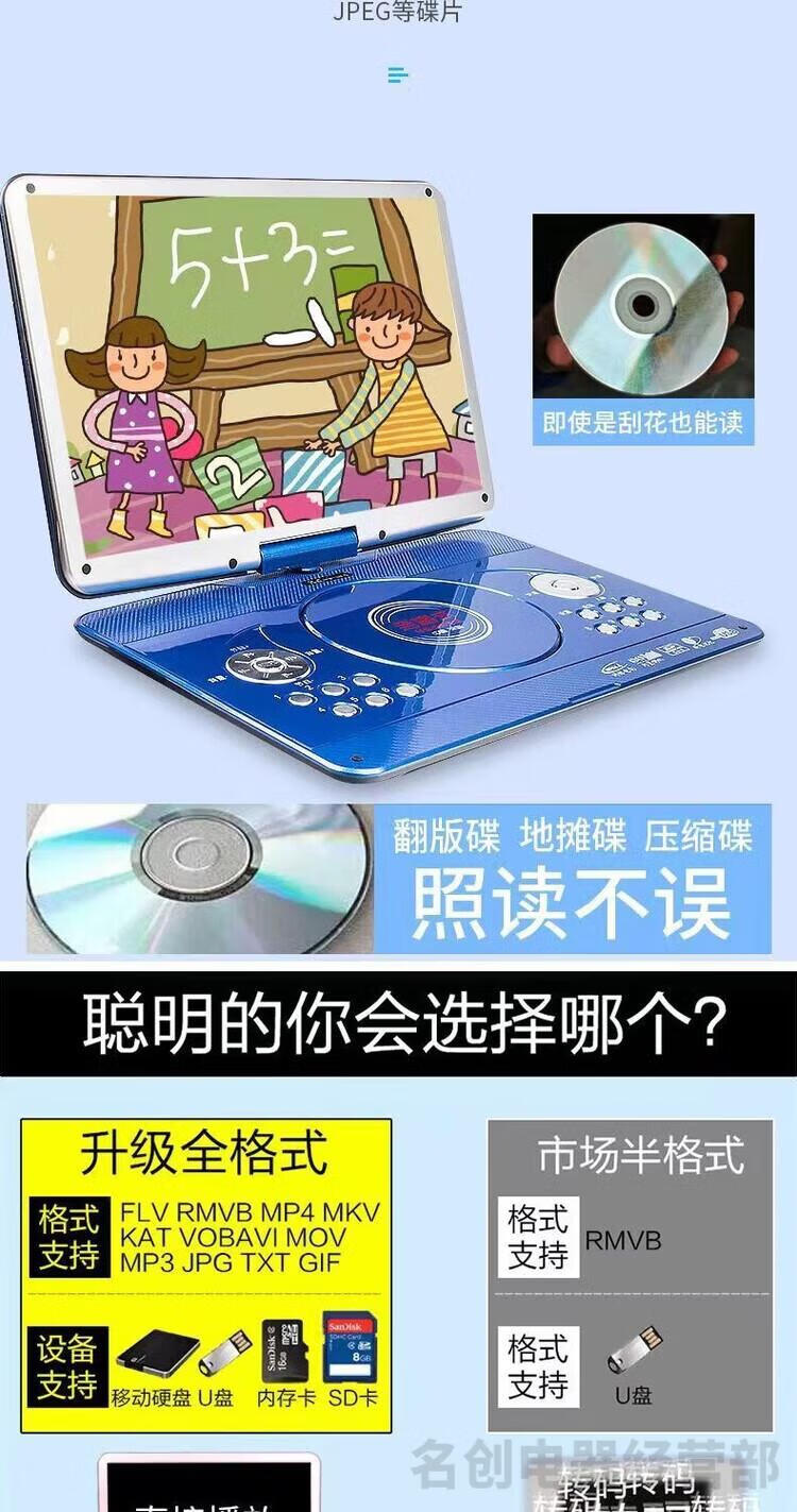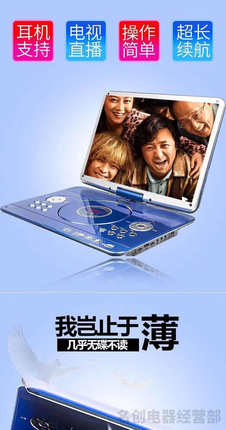 Jinzheng mobile DVD player, portable EVD/CD/VCD all-in-one WiFi small TV player for the elderly and children, blue 22-inch new high-definition eye protection screen