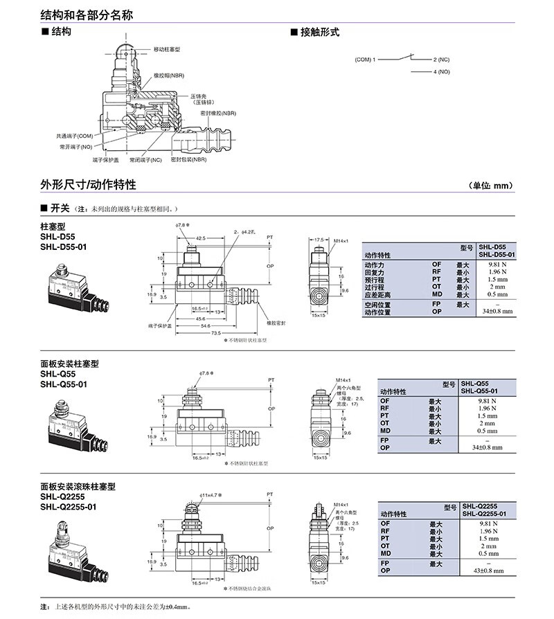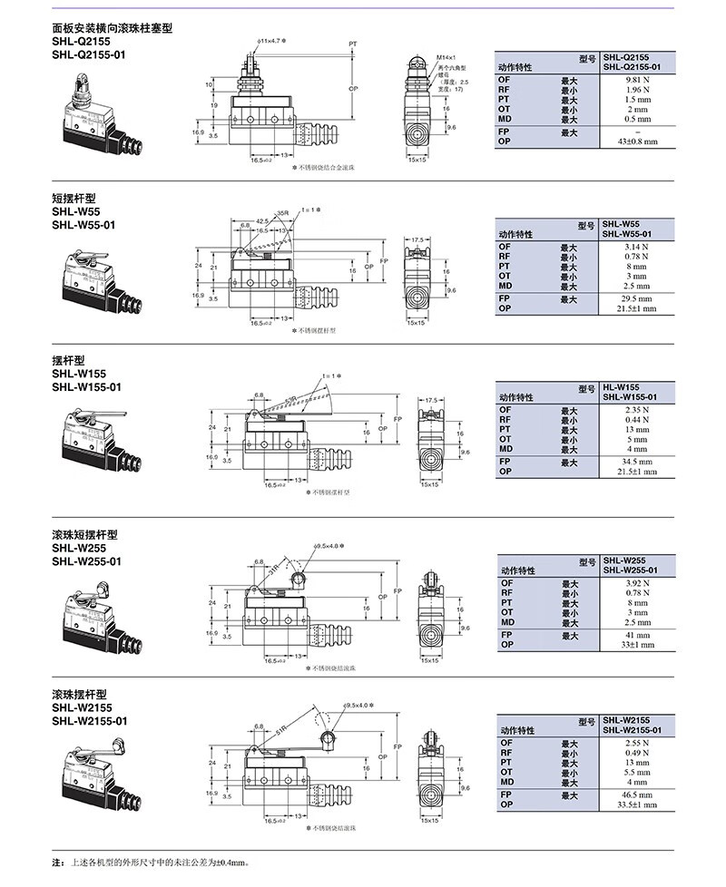Micro switch SHL-02255 D55 W255 ZC-Q2255-01 Q55 D55 travel limit SHL-Q2255