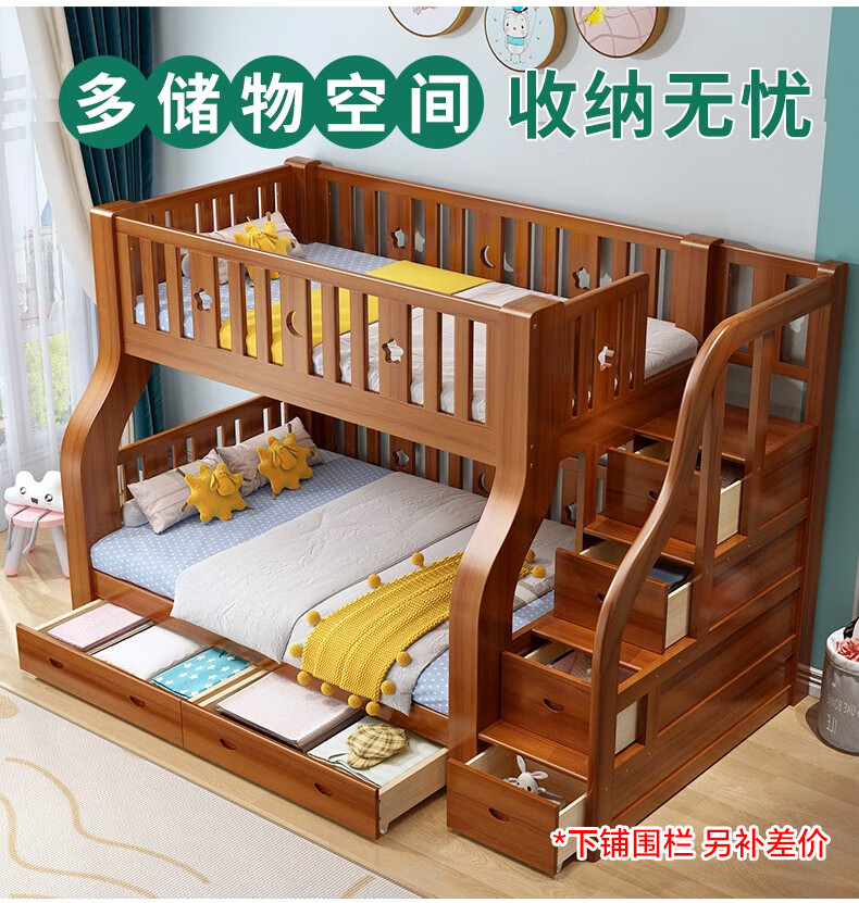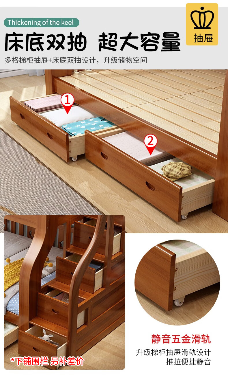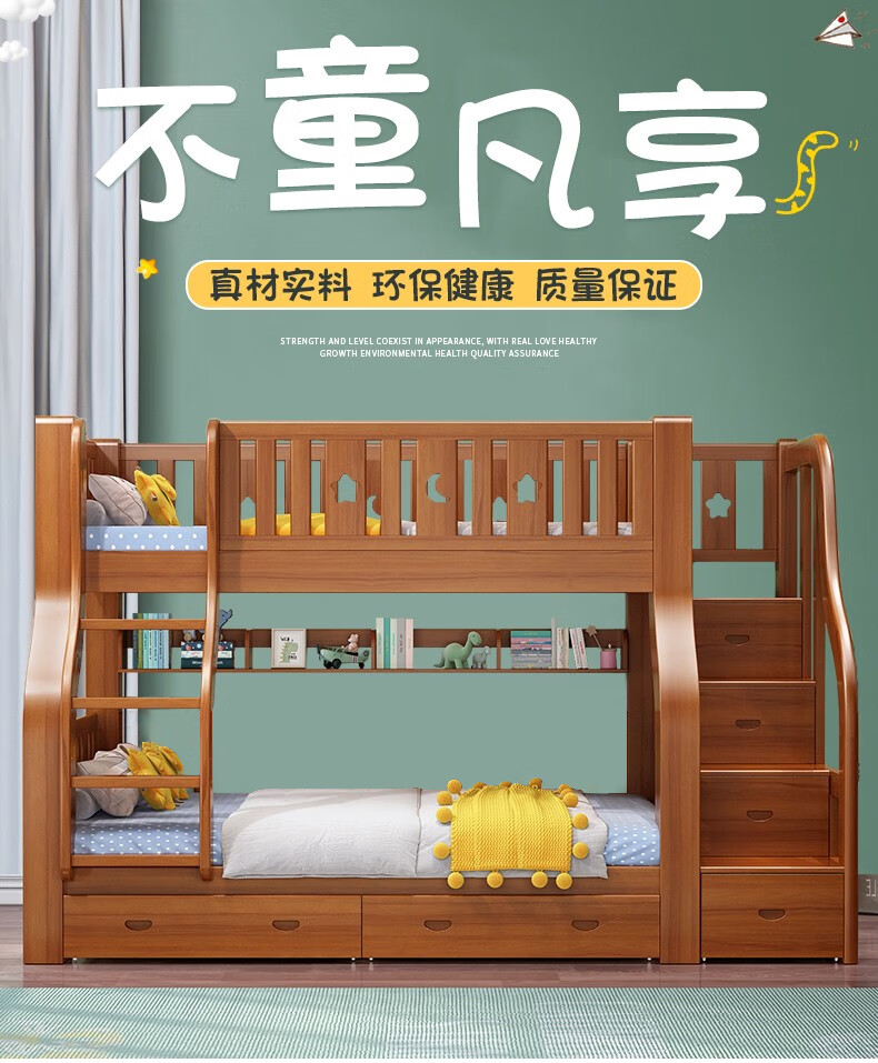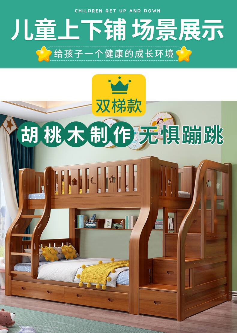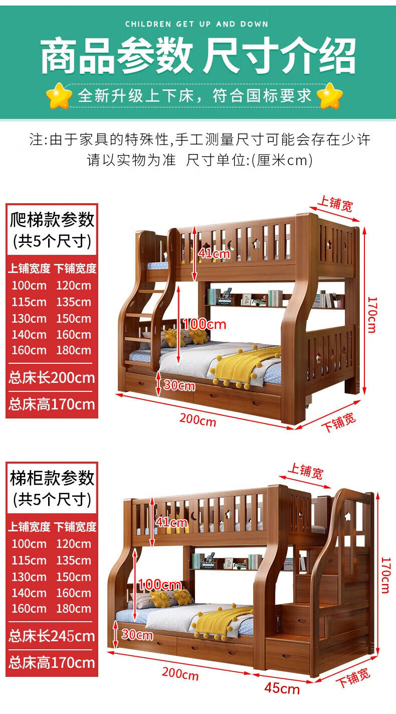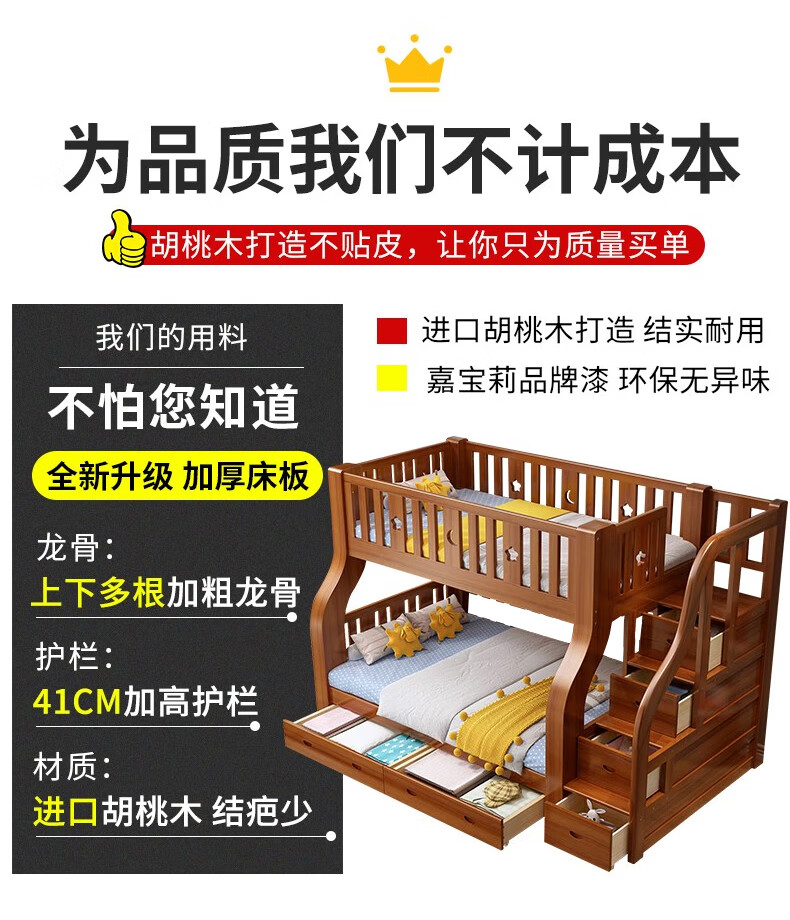 Rongjiang package installation walnut bunk bed pure solid wood high and low bunk bed adult bed double-decker children's bunk bed ladder type upper bunk width 160* bottom bunk width 180
