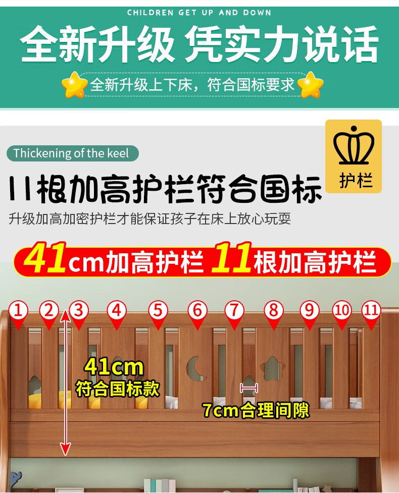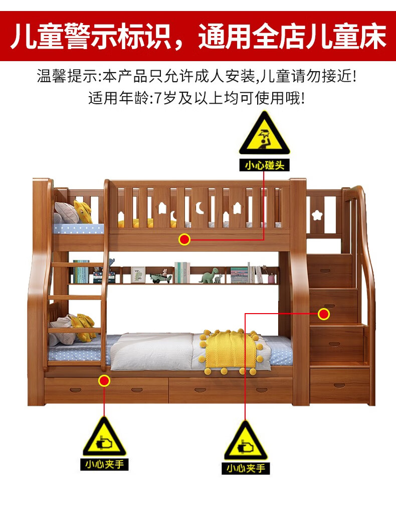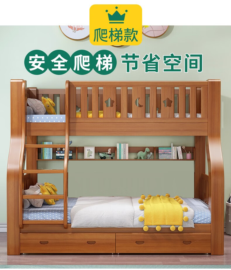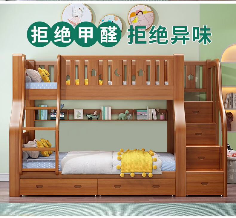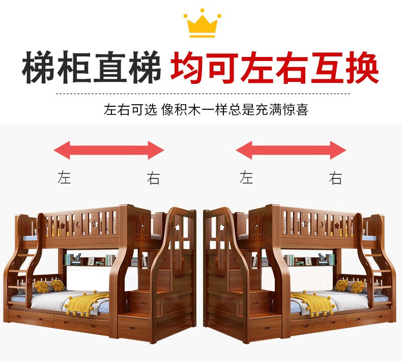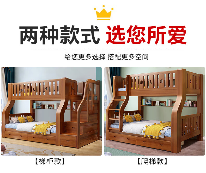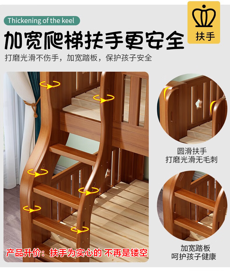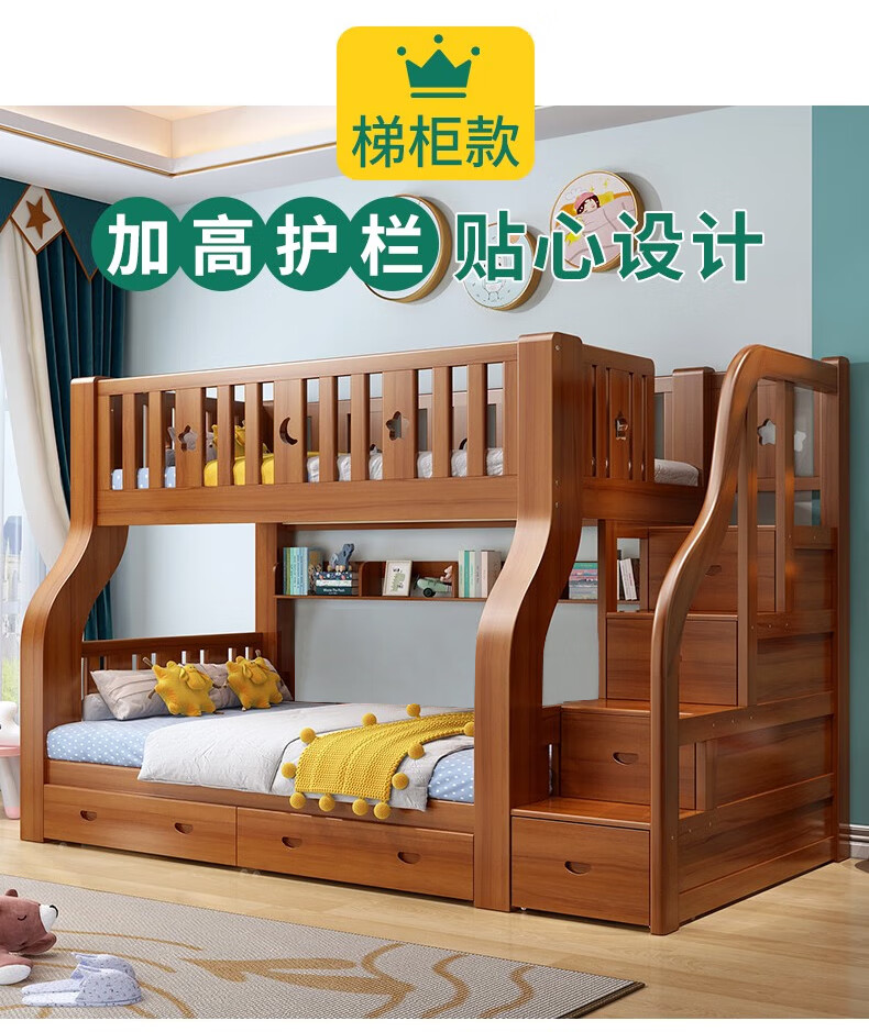 Rongjiang package installation walnut bunk bed pure solid wood high and low bunk bed adult bed double-decker children's bunk bed ladder type upper bunk width 160* bottom bunk width 180