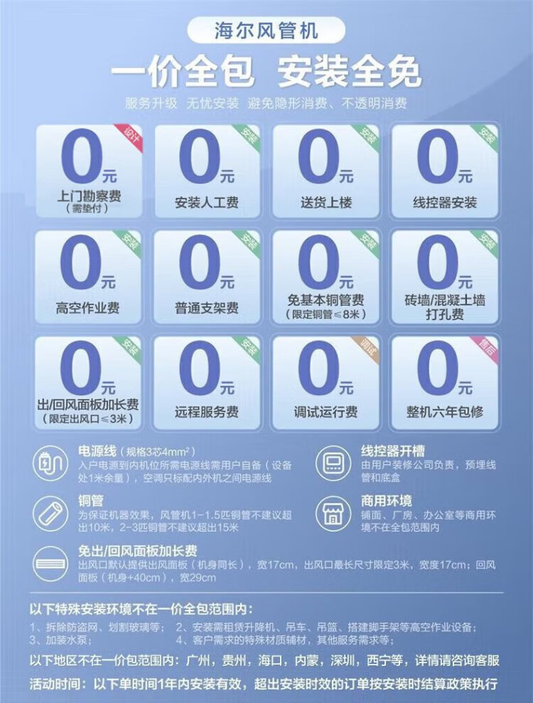 Produced by Haier Smart Home, the national subsidy is 15% off. Yuanqi air duct machine 3 HP, ultra-power-saving living room air duct machine, one-to-one full DC frequency conversion, new level energy efficiency household central air conditioner. Yuanqi 3 HP, first level energy efficiency, rapid cooling and heating, energy saving and electricity saving