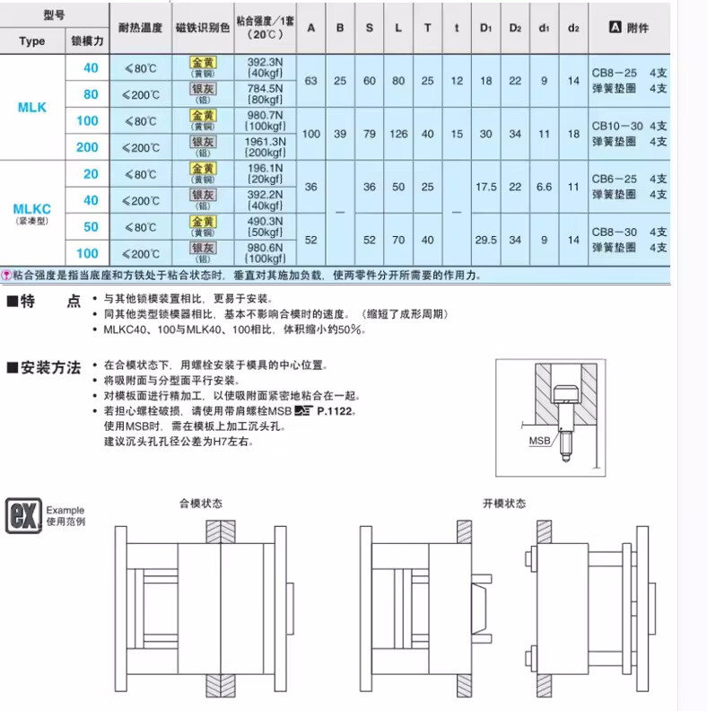 Plastic mold magnetic lock module magnetic opener MLK40 80 magnetic mold locking buckle compact MLKC100 MLK 80
